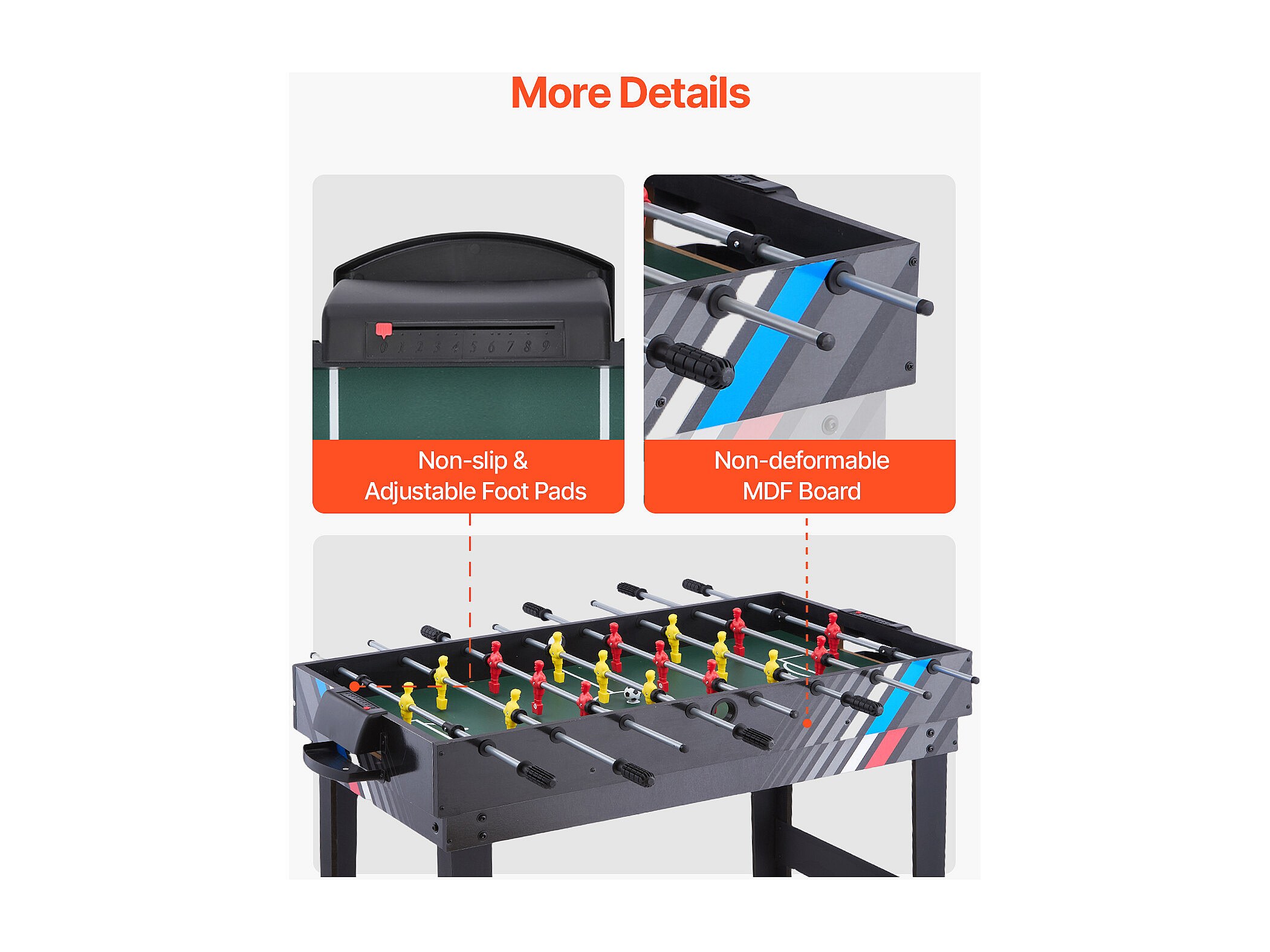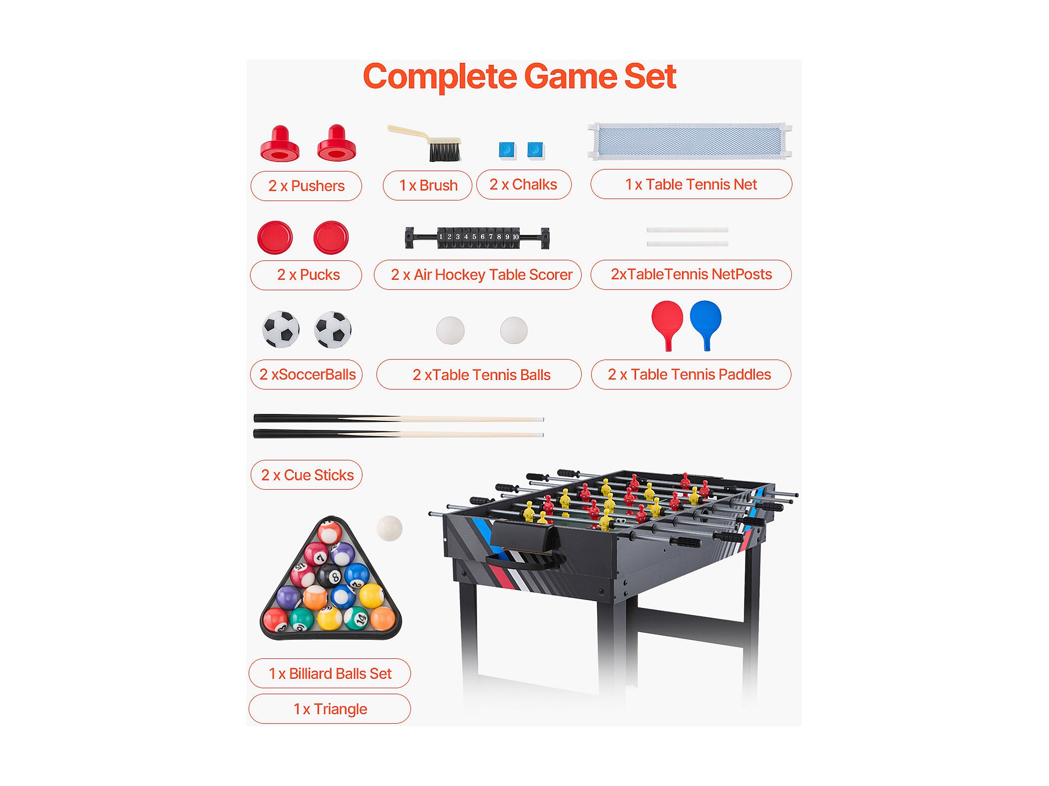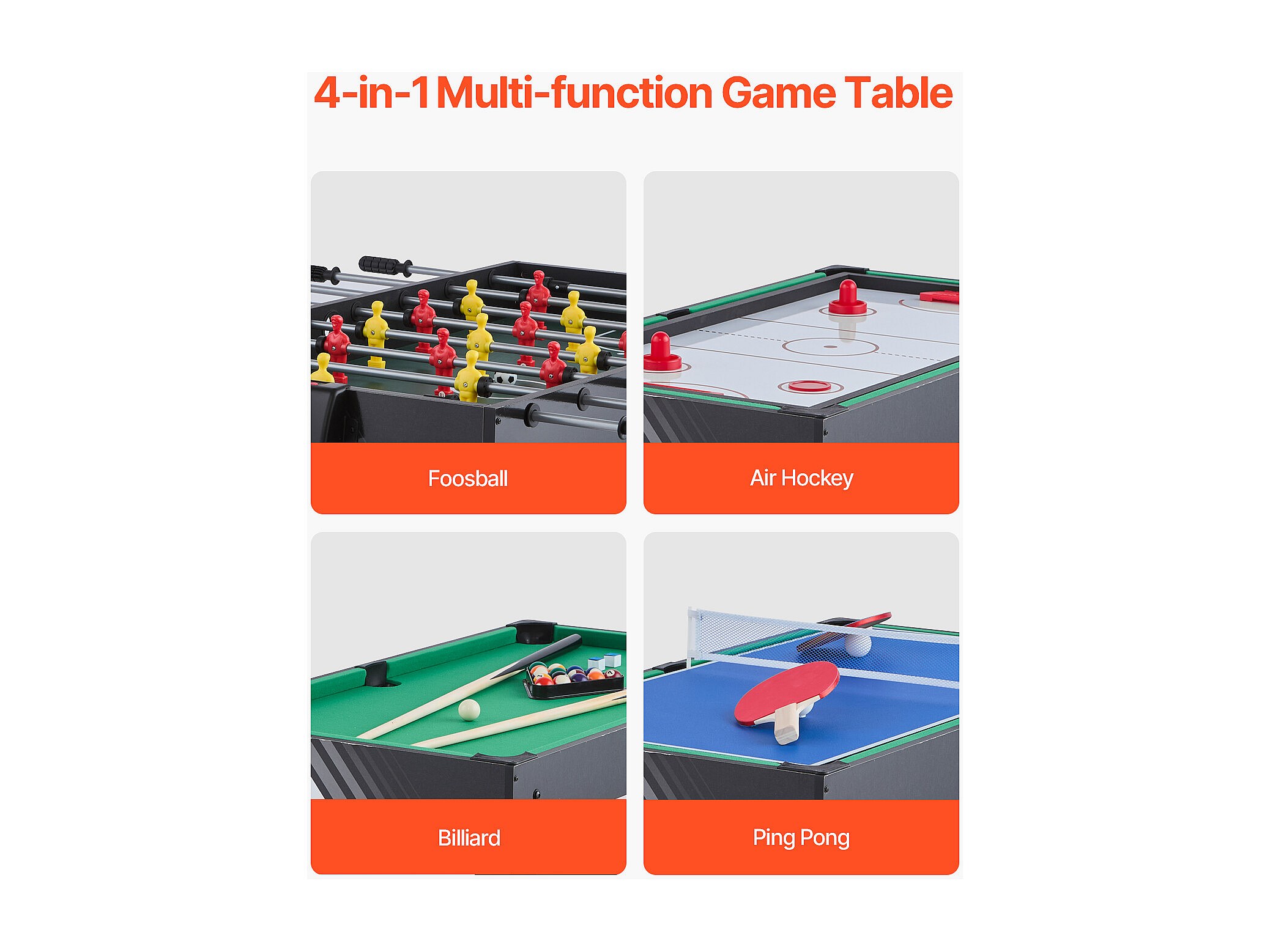 Stół do Hokeja Powietrznego, SucceBuy 4 w 1 Stół do Gier Kombinowanych 122 cm, Hokej Powietrzny, Piłkarzyki, Tenis Stołowy, Bilard