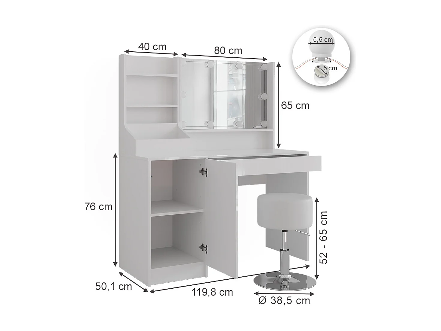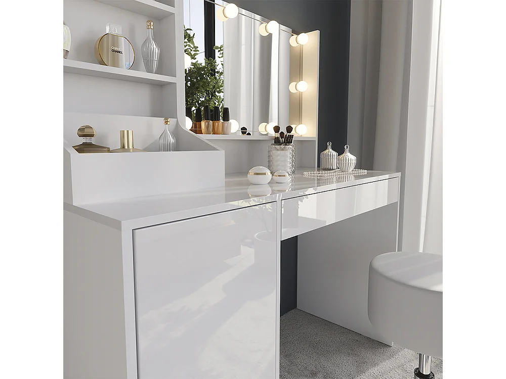 Stół do toalety biały/biały wysoki połysk 119.8x50.1x76 sherry