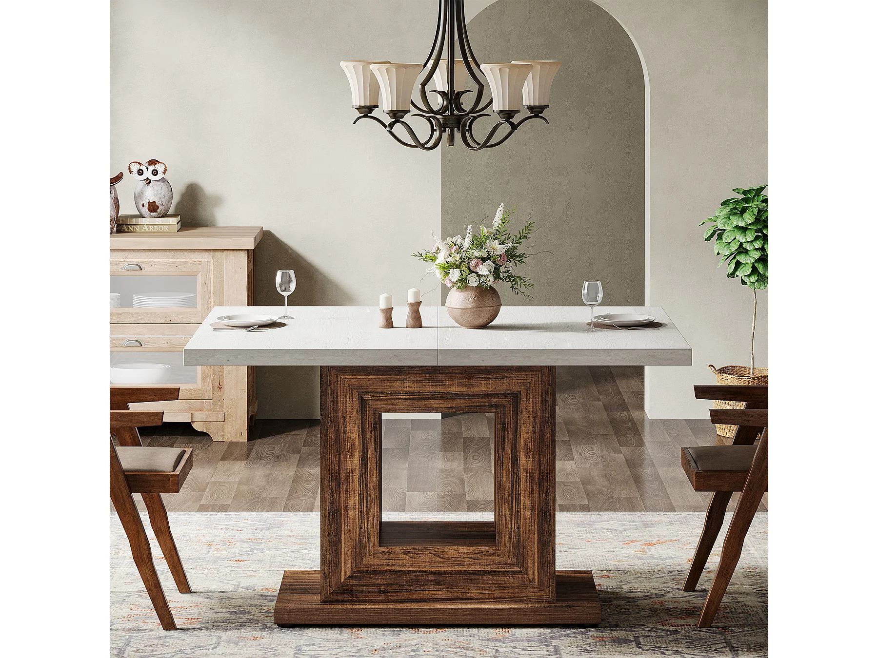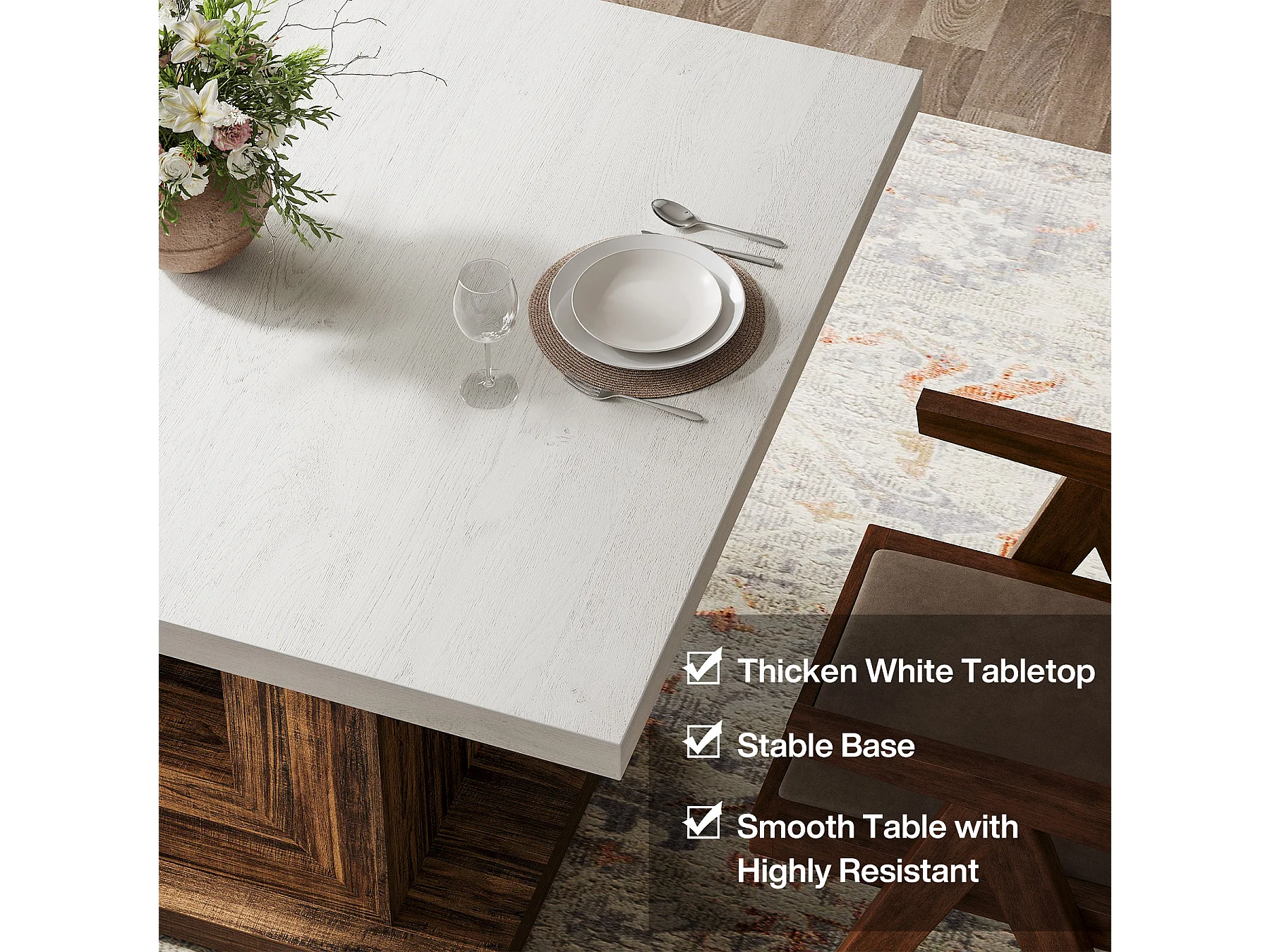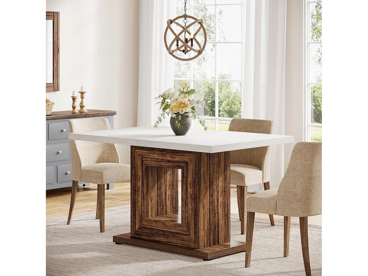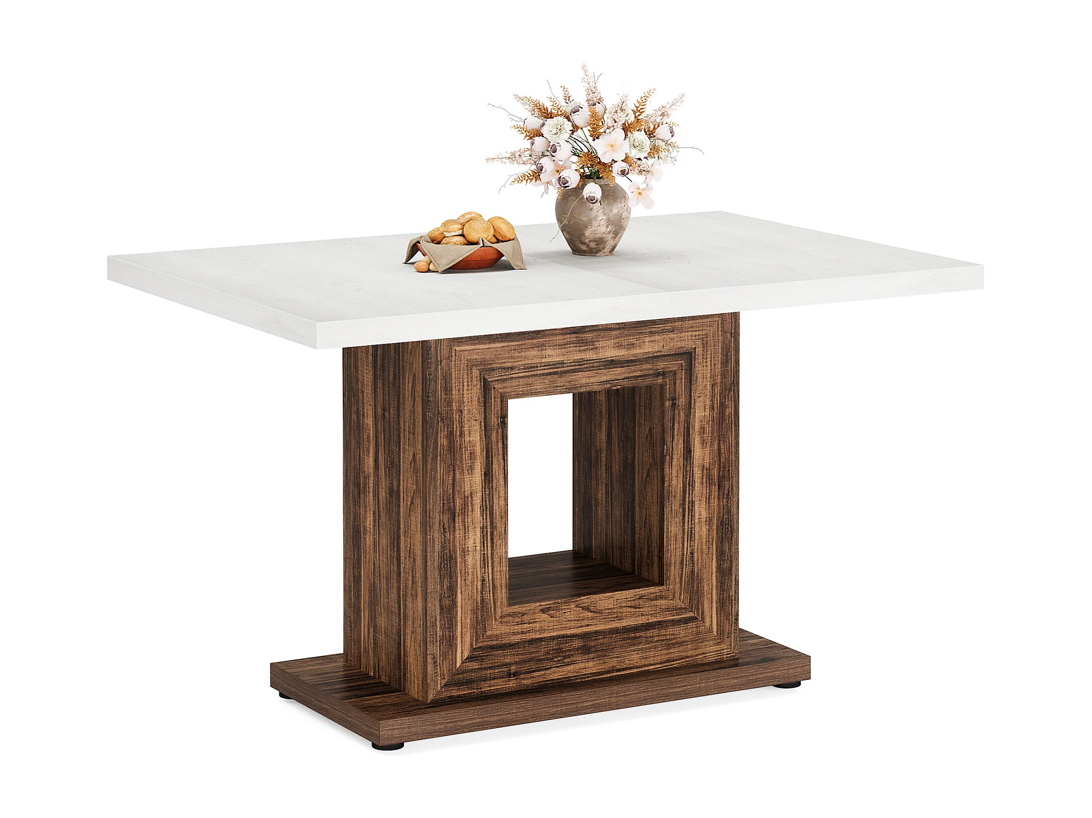 Stół jadalny w stylu rustykalnym dla 4 osób, biały stół kuchenny z solidną podstawą