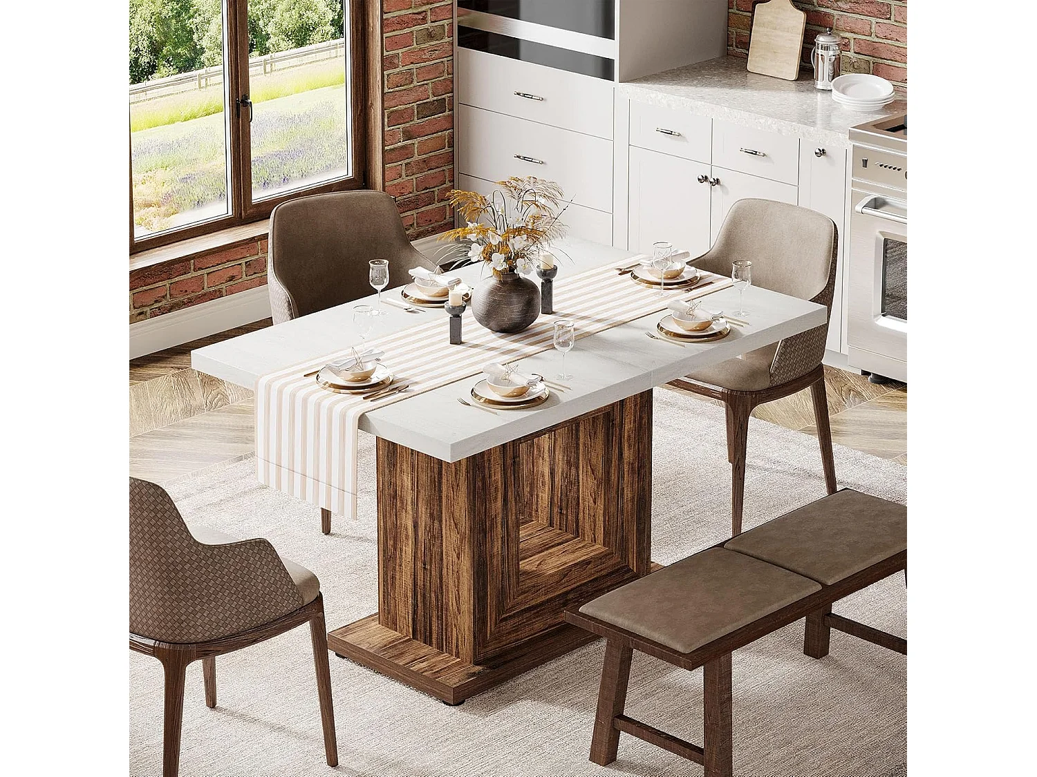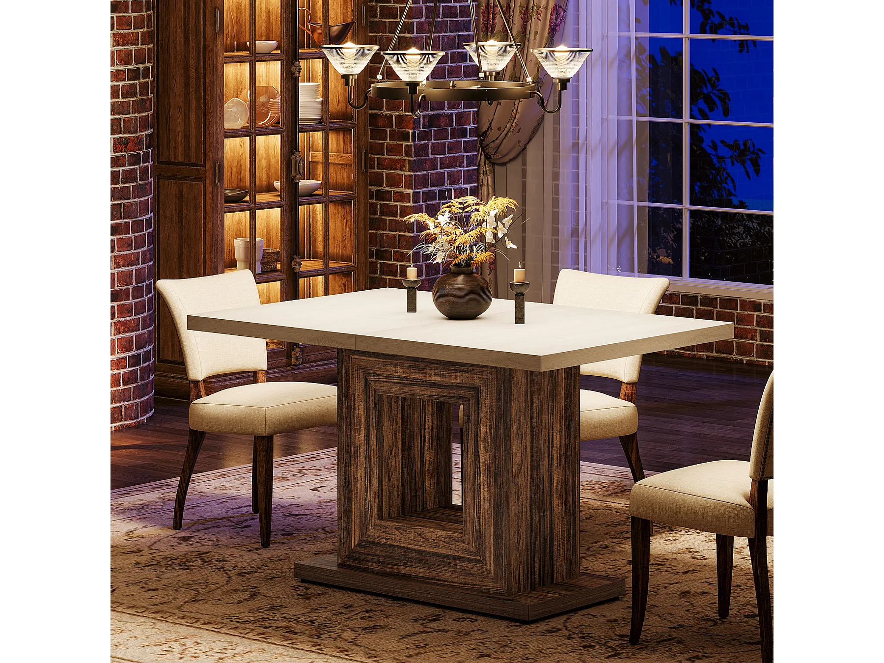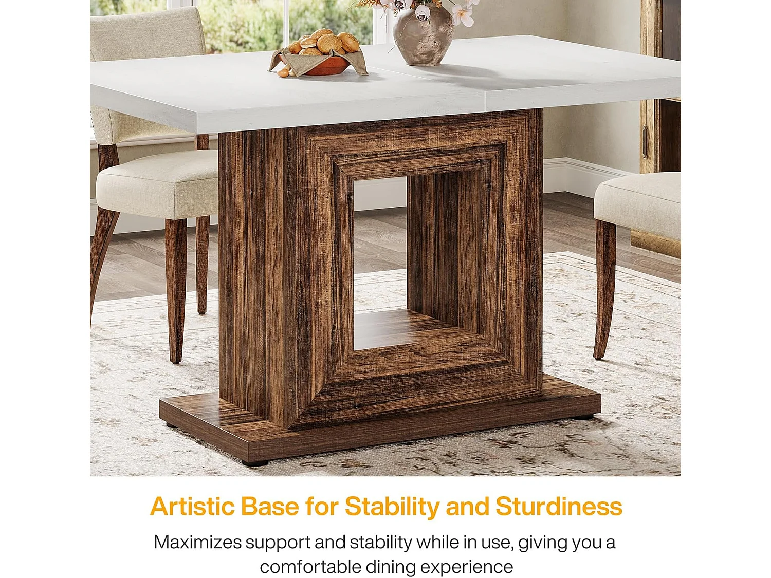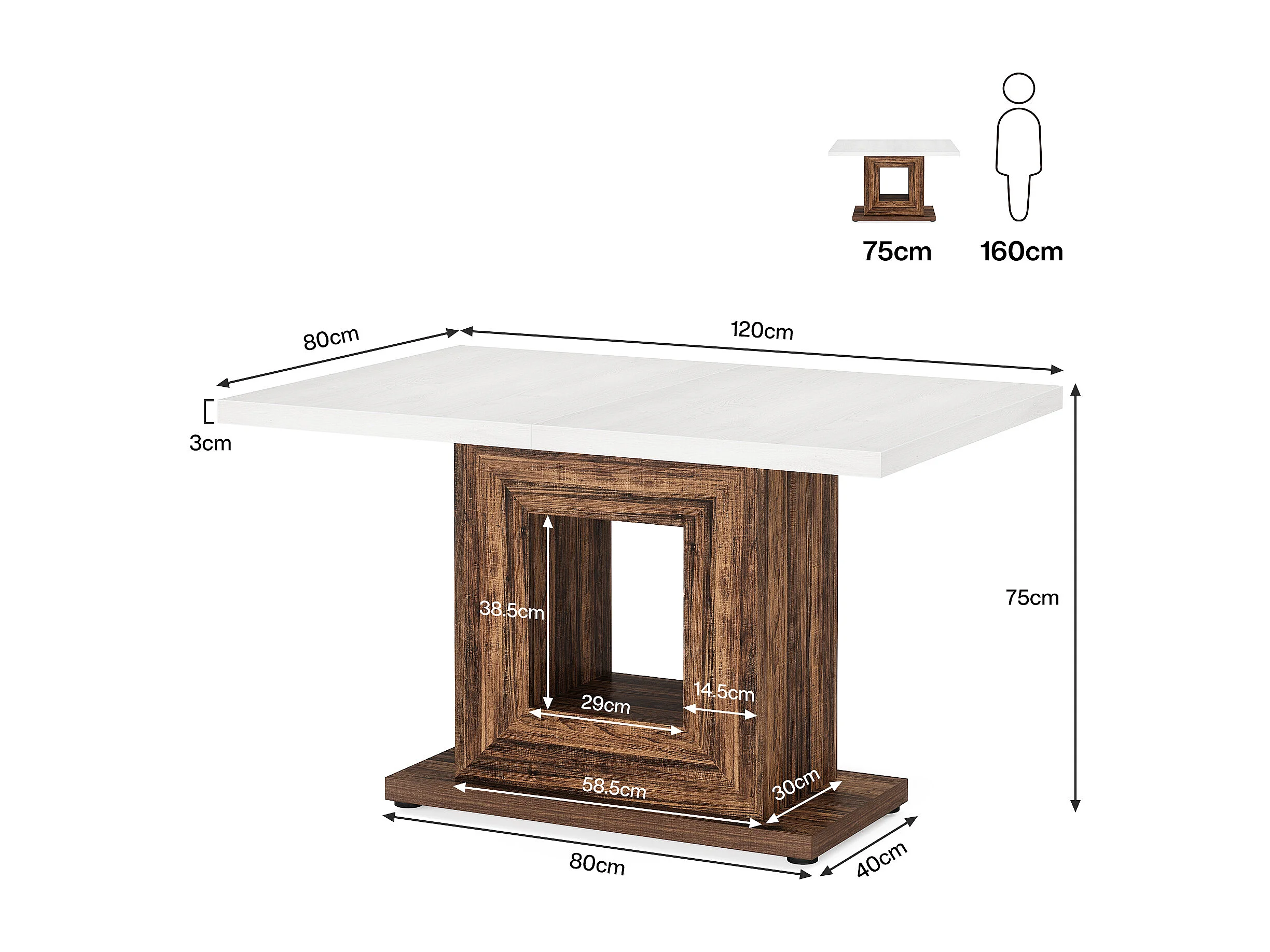 Stół jadalny w stylu rustykalnym dla 4 osób, biały stół kuchenny z solidną podstawą