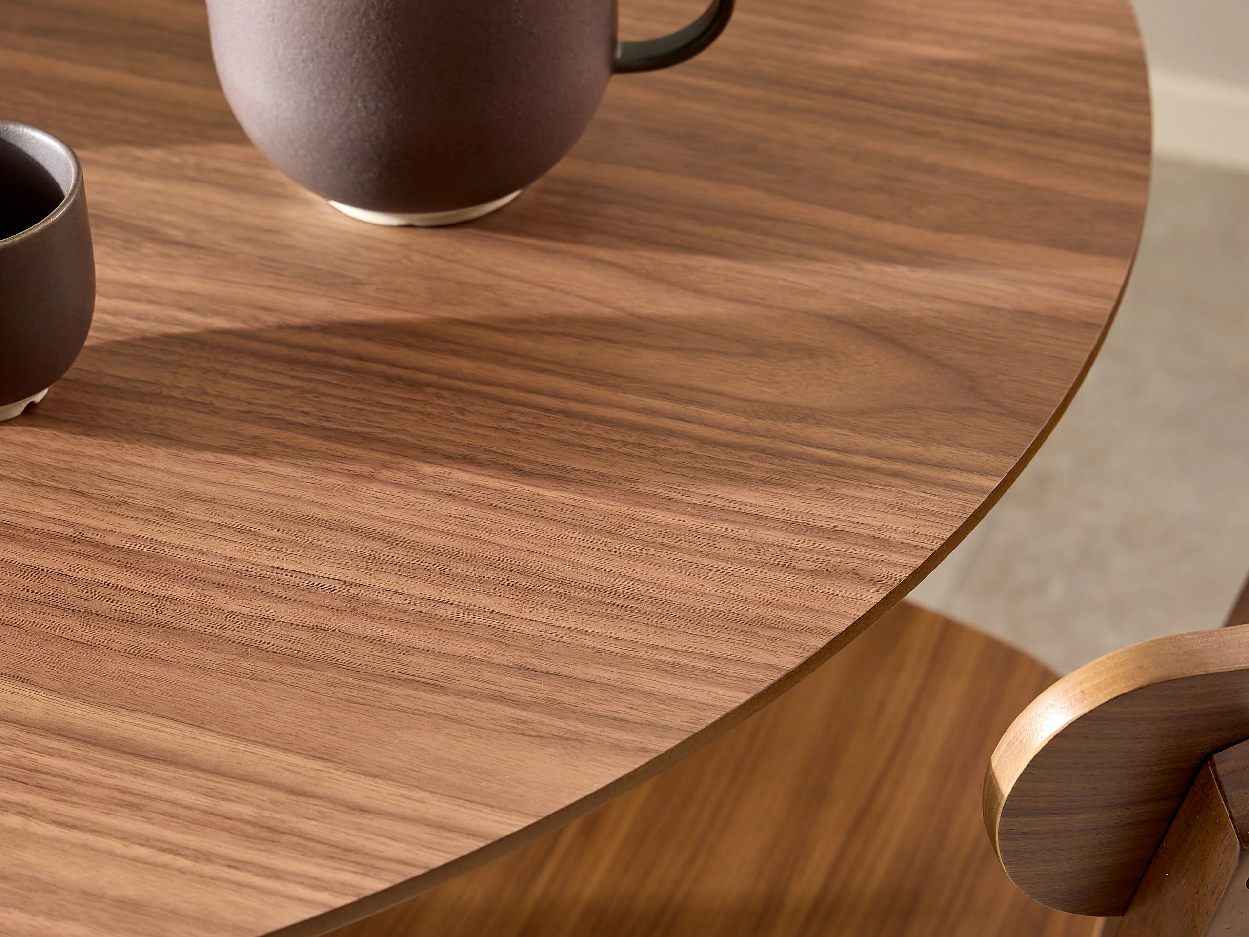 Stół okrągły 105 cm Lumo, kolor orzech włoski lakierowany
