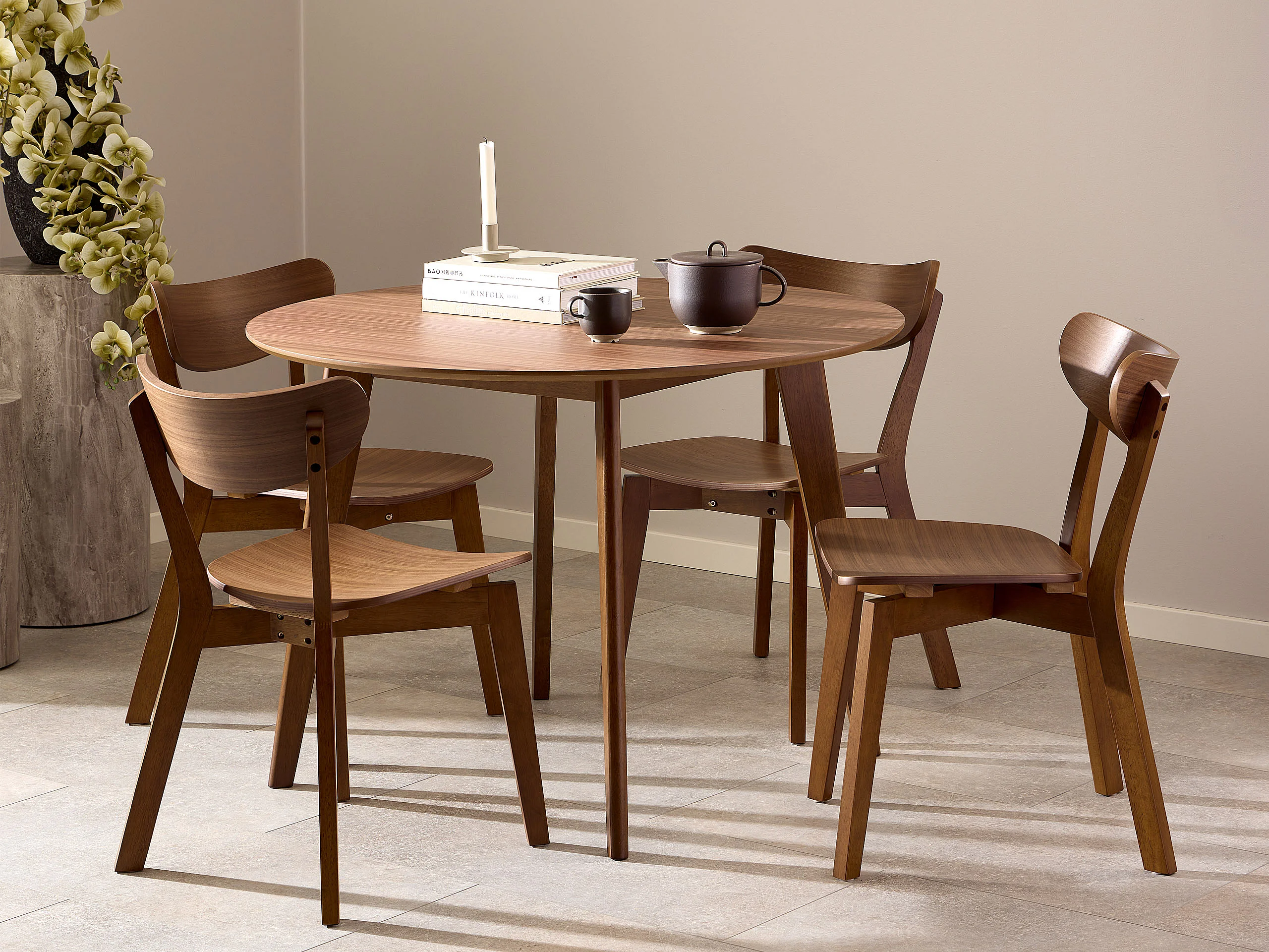 Stół okrągły Lumo 120 cm – styl skandynawski, kolor orzech włoski lakierowany