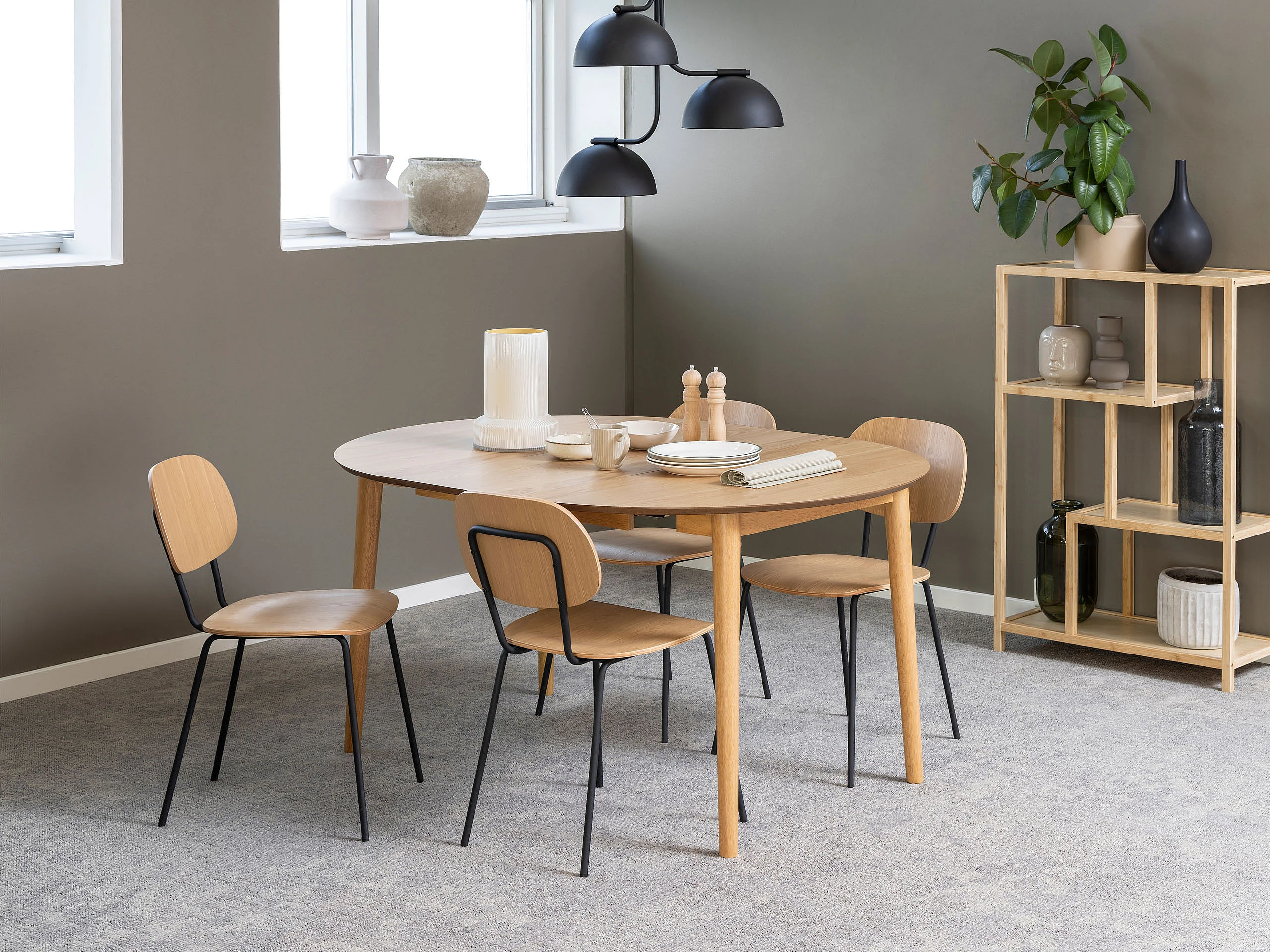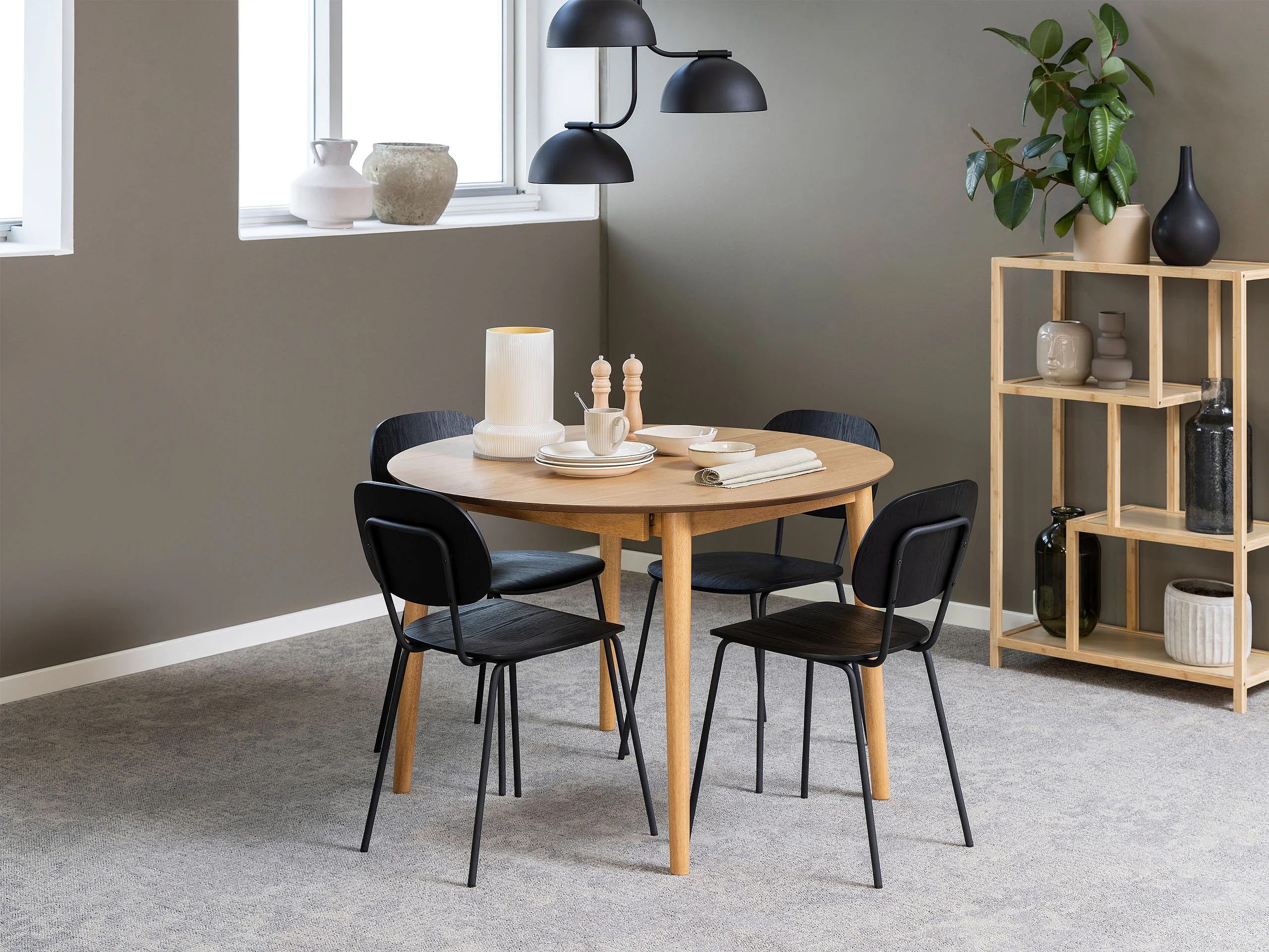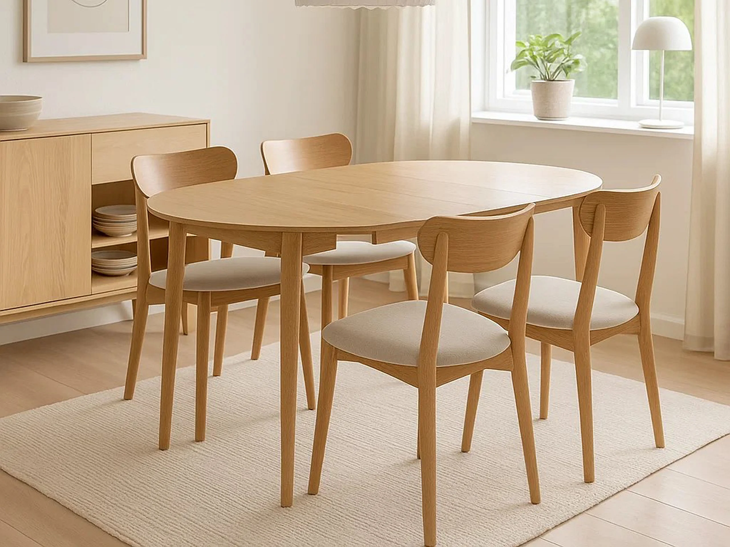 Stół rozsuwany - MDF - Okrągły stół - 118-158 cm - 6 osób - 1 drzwi - 2 półki - naturalny