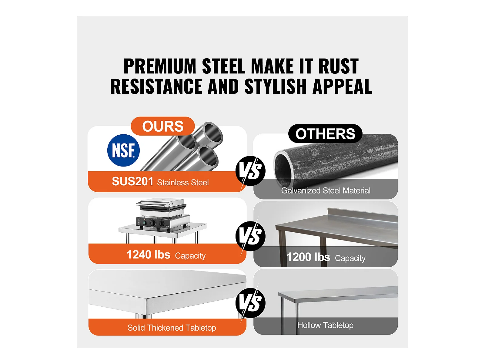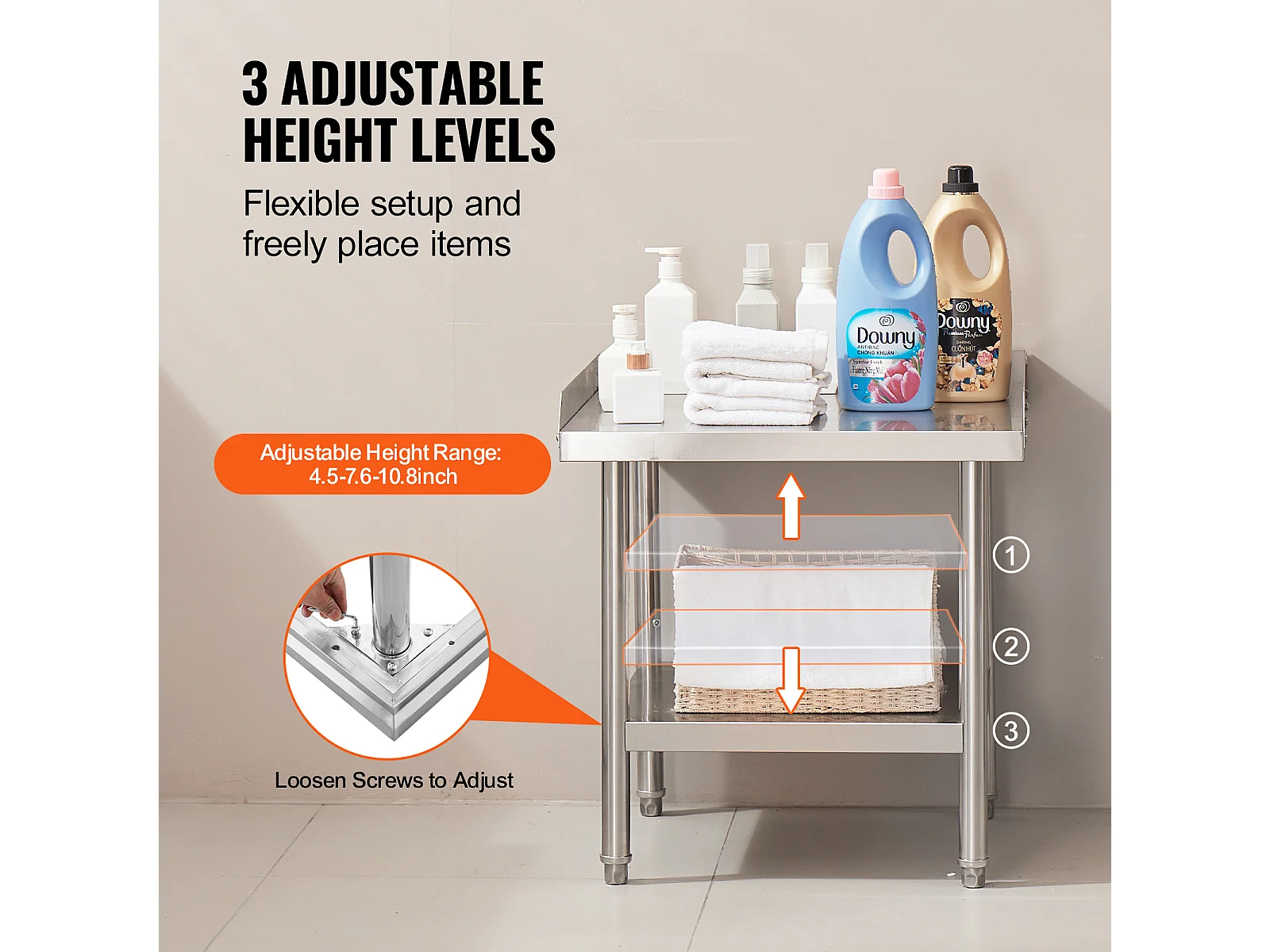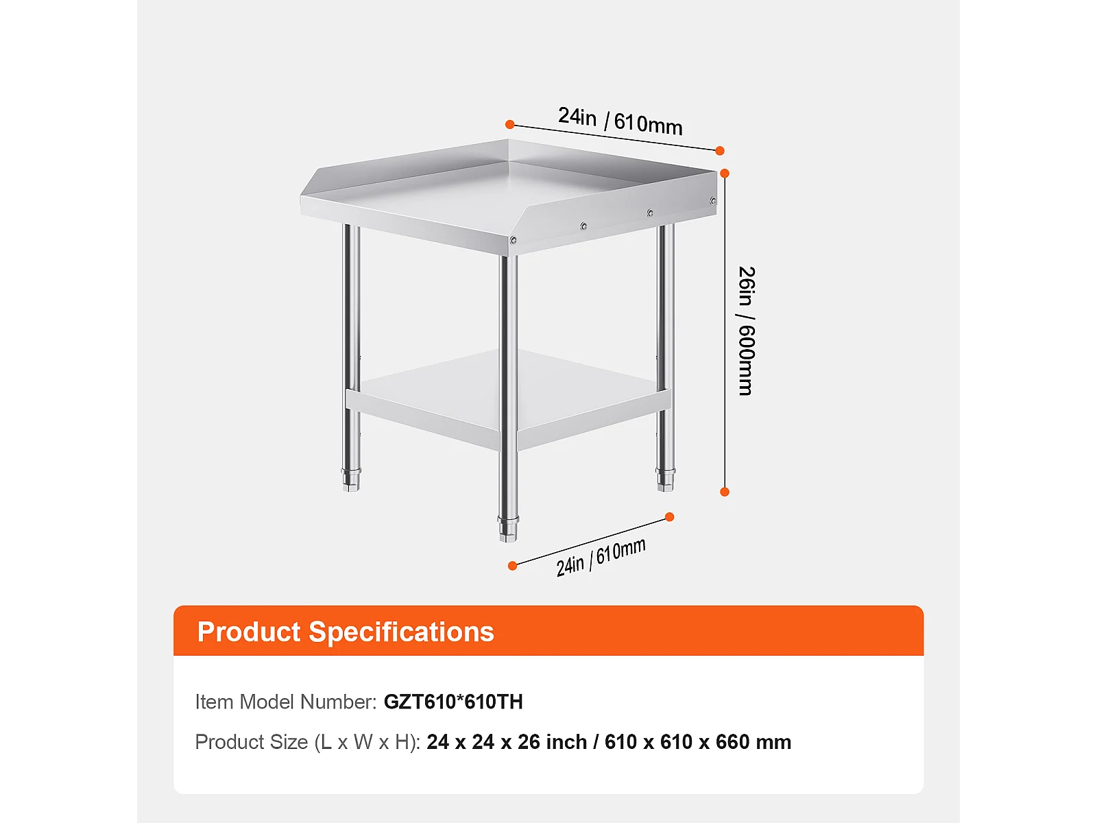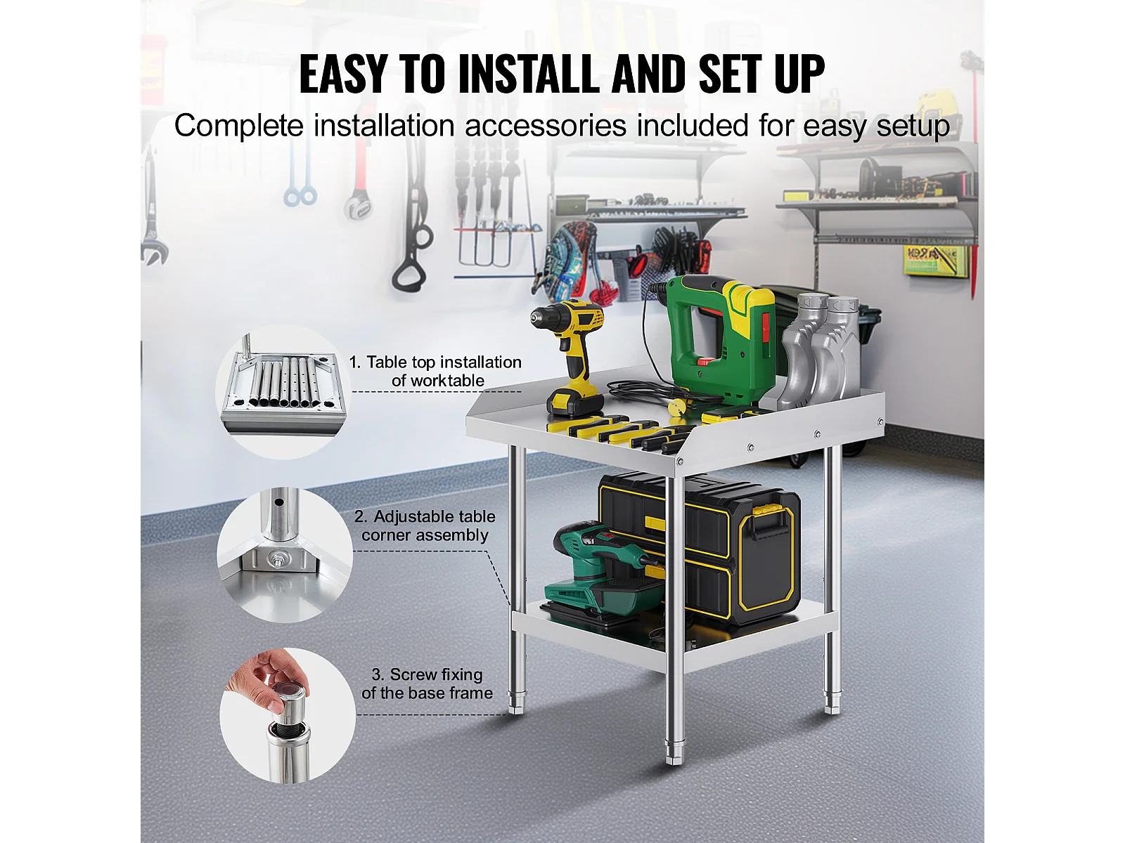 Stół Roboczy SucceBuy Stół Roboczy ze Stali Nierdzewnej 60.96 x 60.96 cm, Stół do Przygotowywania Żywności w Restauracji