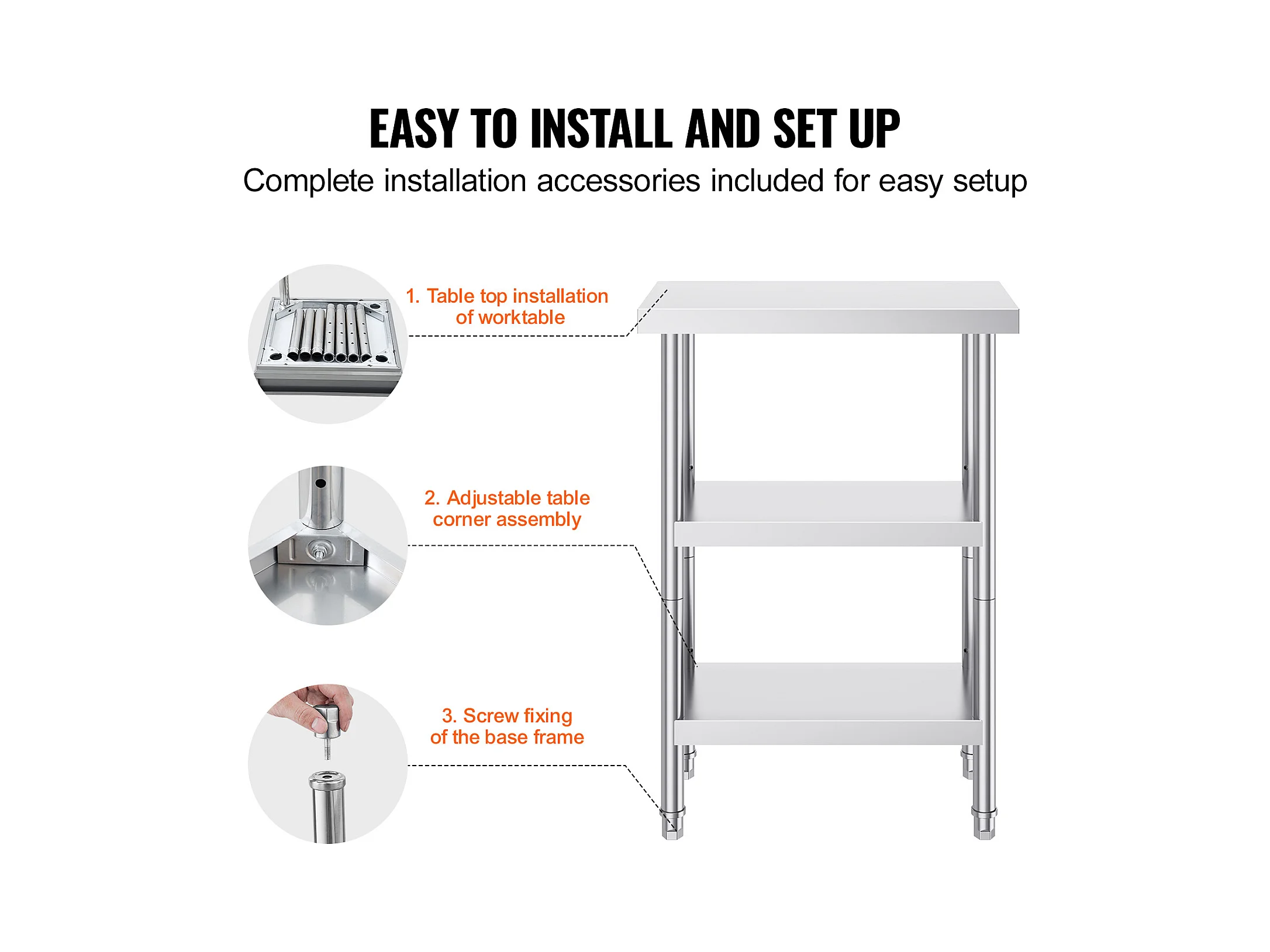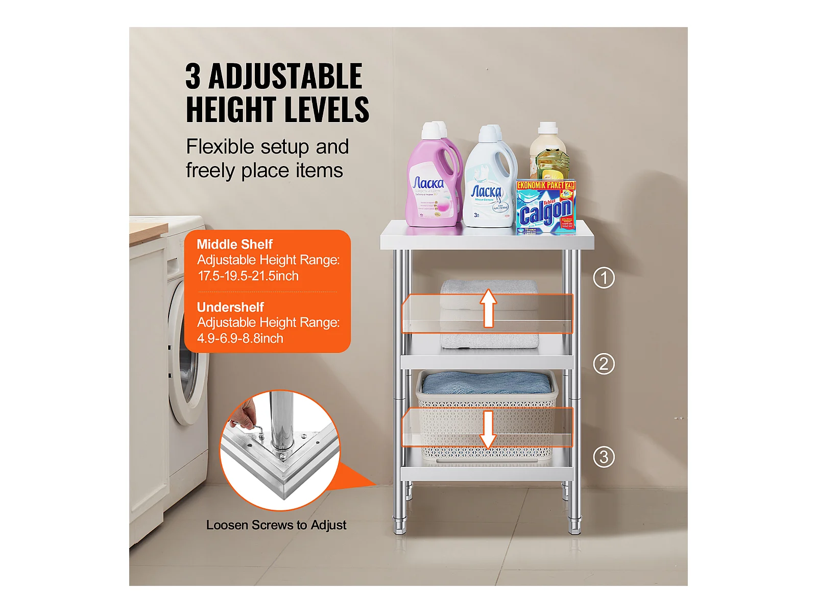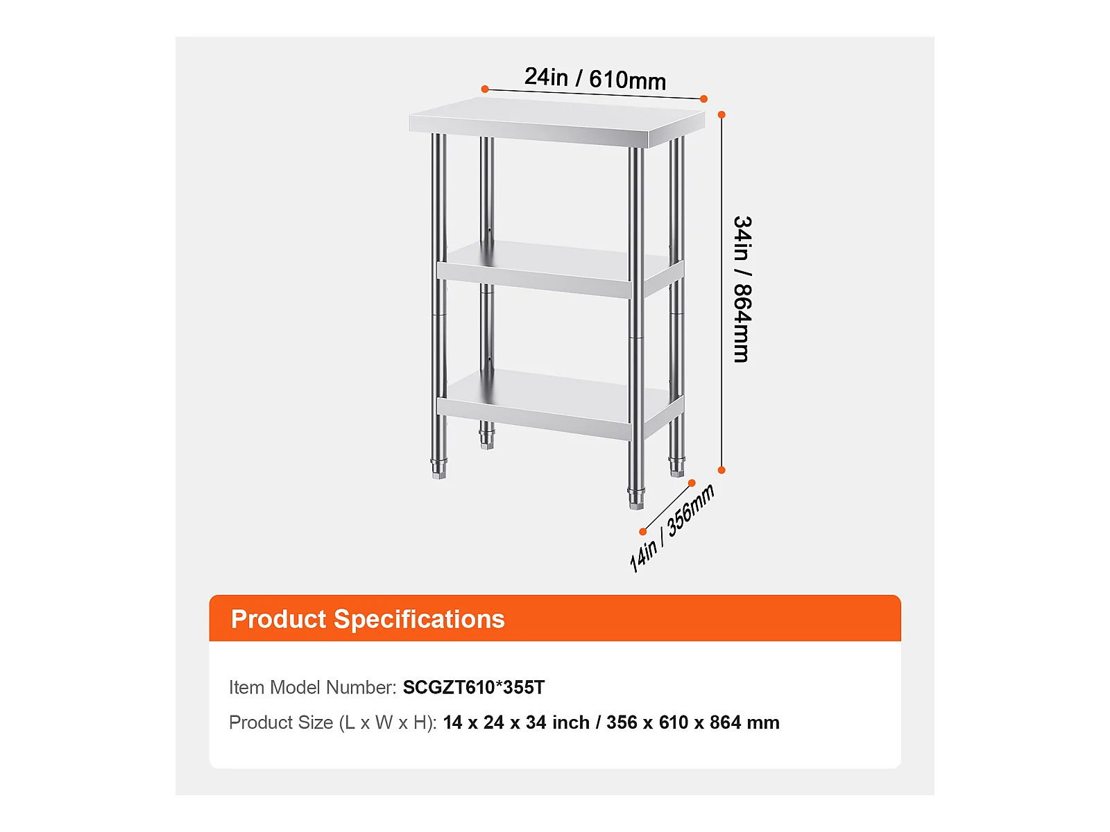Stół Roboczy ze Stali Nierdzewnej SucceBuy, 356 x 610 x 864 mm, Stół Przygotowawczy do Kuchni Komercyjnych