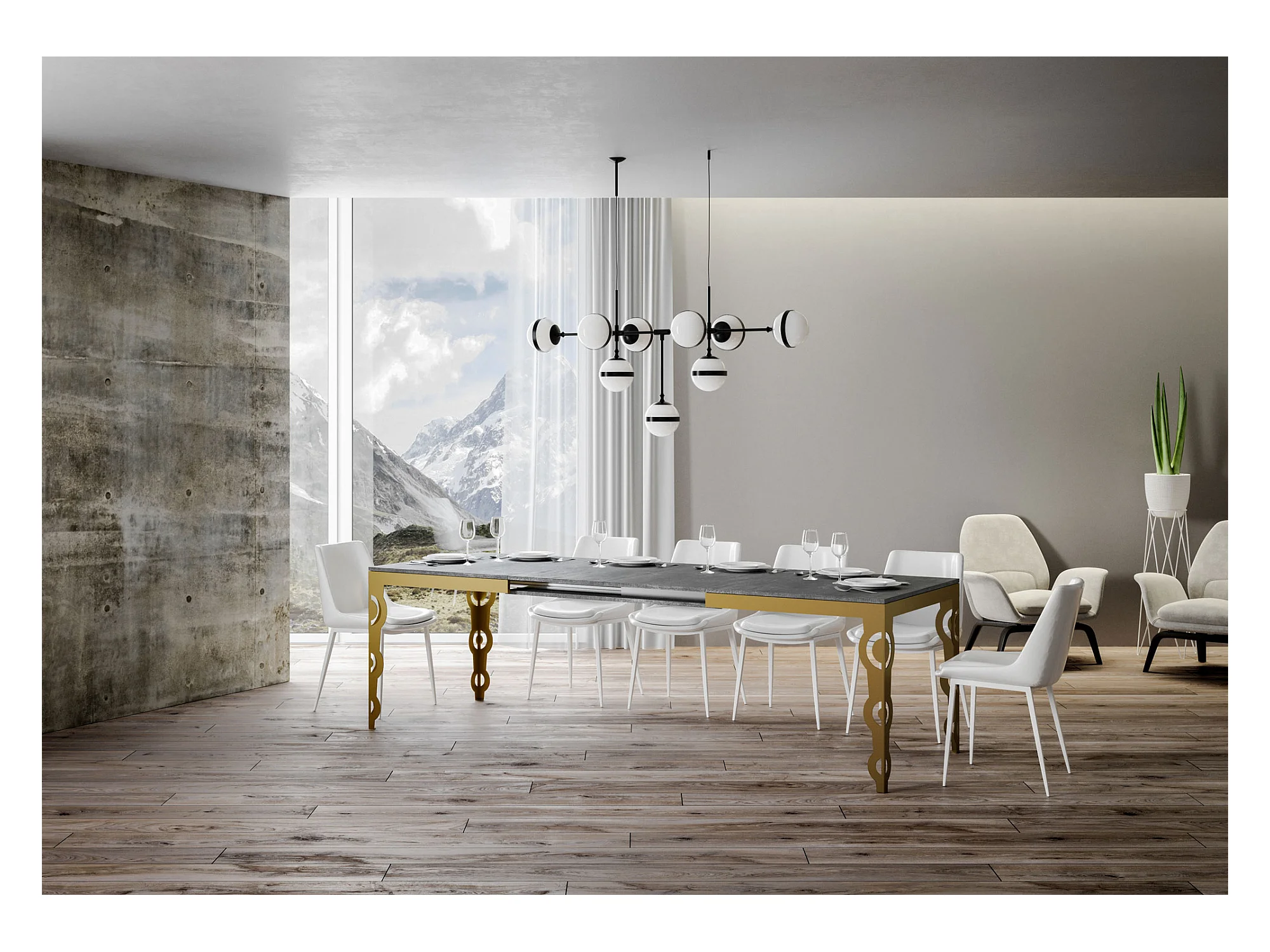 Stół rozkładany 90x120/224 cm Karamay Evolution Grey Betonowa złota rama
