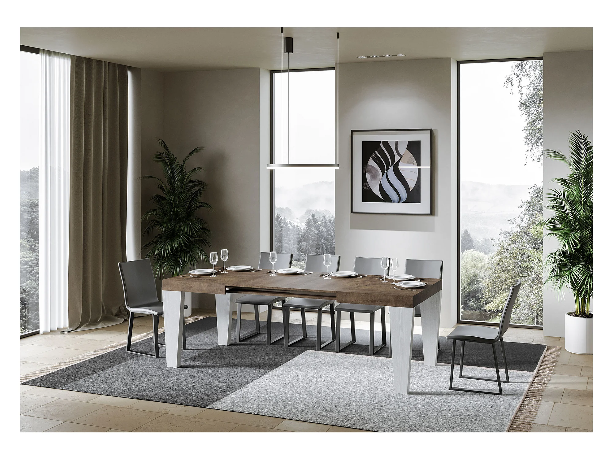 Stół rozkładany 90x130/234 cm Roxell Mix Biały jesionowy blat - Nogi z orzecha włoskiego