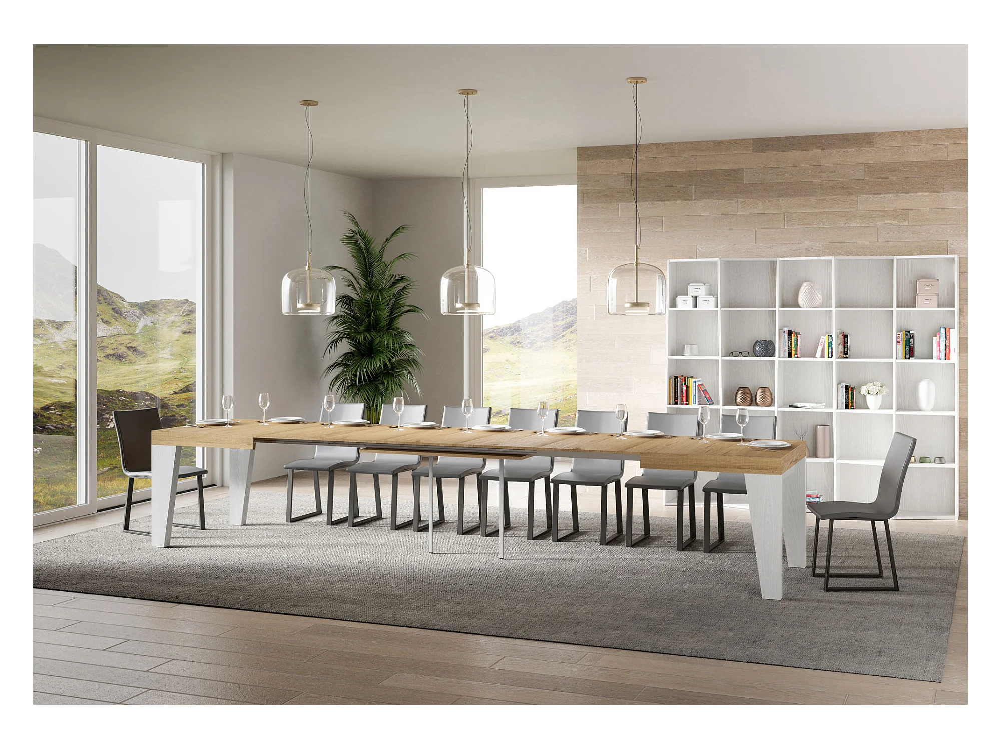 Stół rozkładany 90x130/390 cm Blat Naxy Mix Natural Dąb - Nogi Jesion Biały