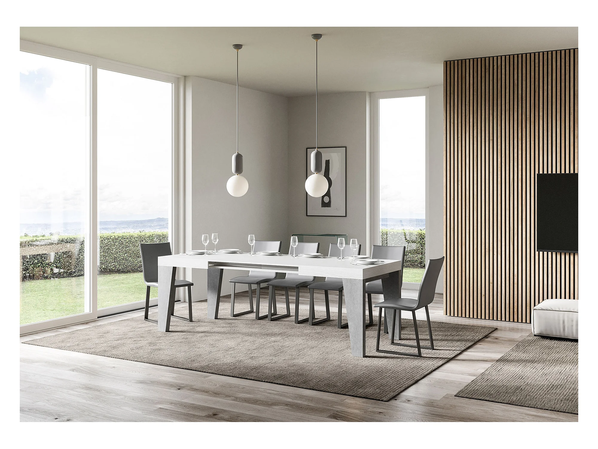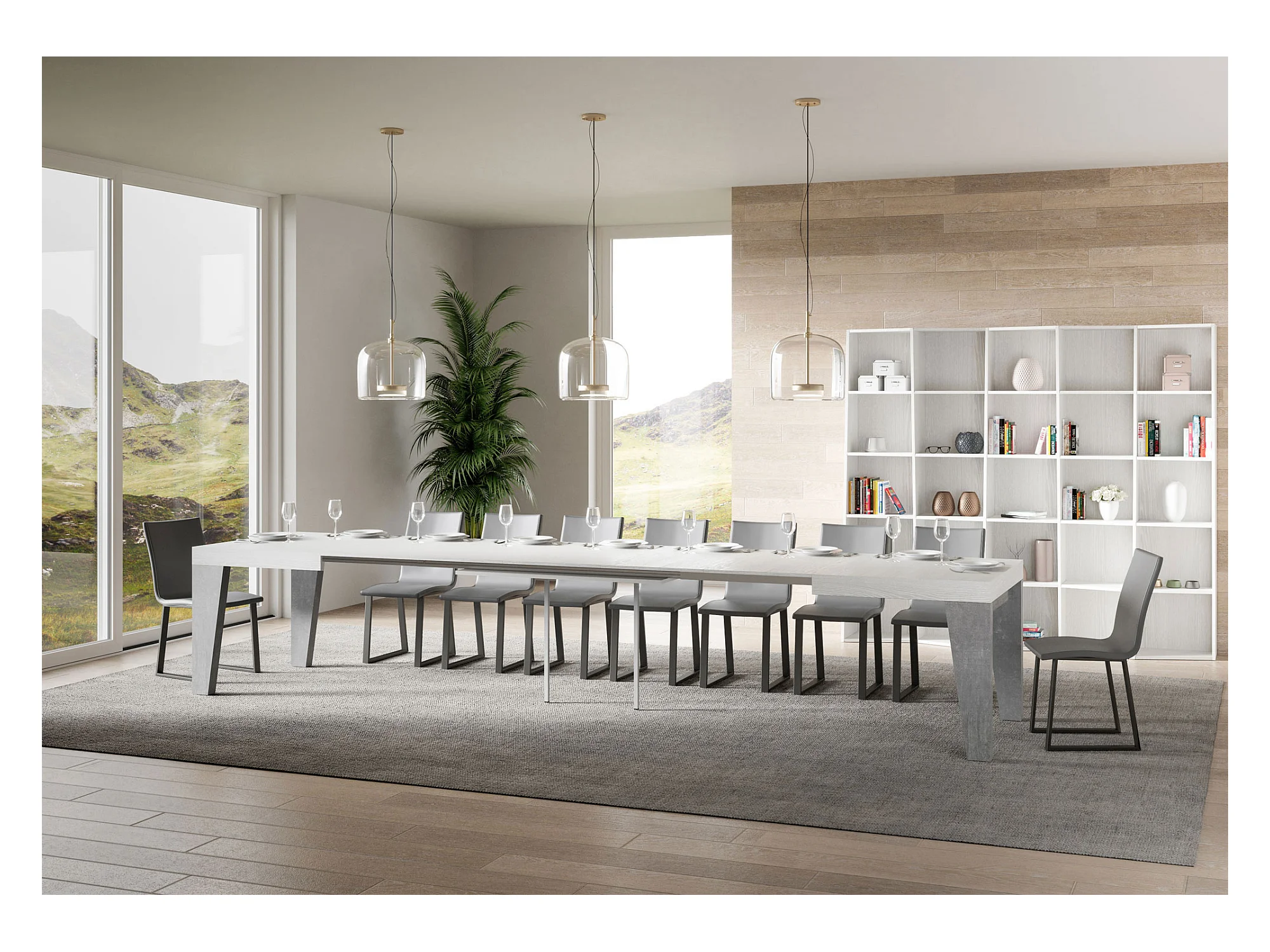 Stół rozkładany 90x160/420 cm Spimbo Mix Blat cementowy - Nogi jesion biały