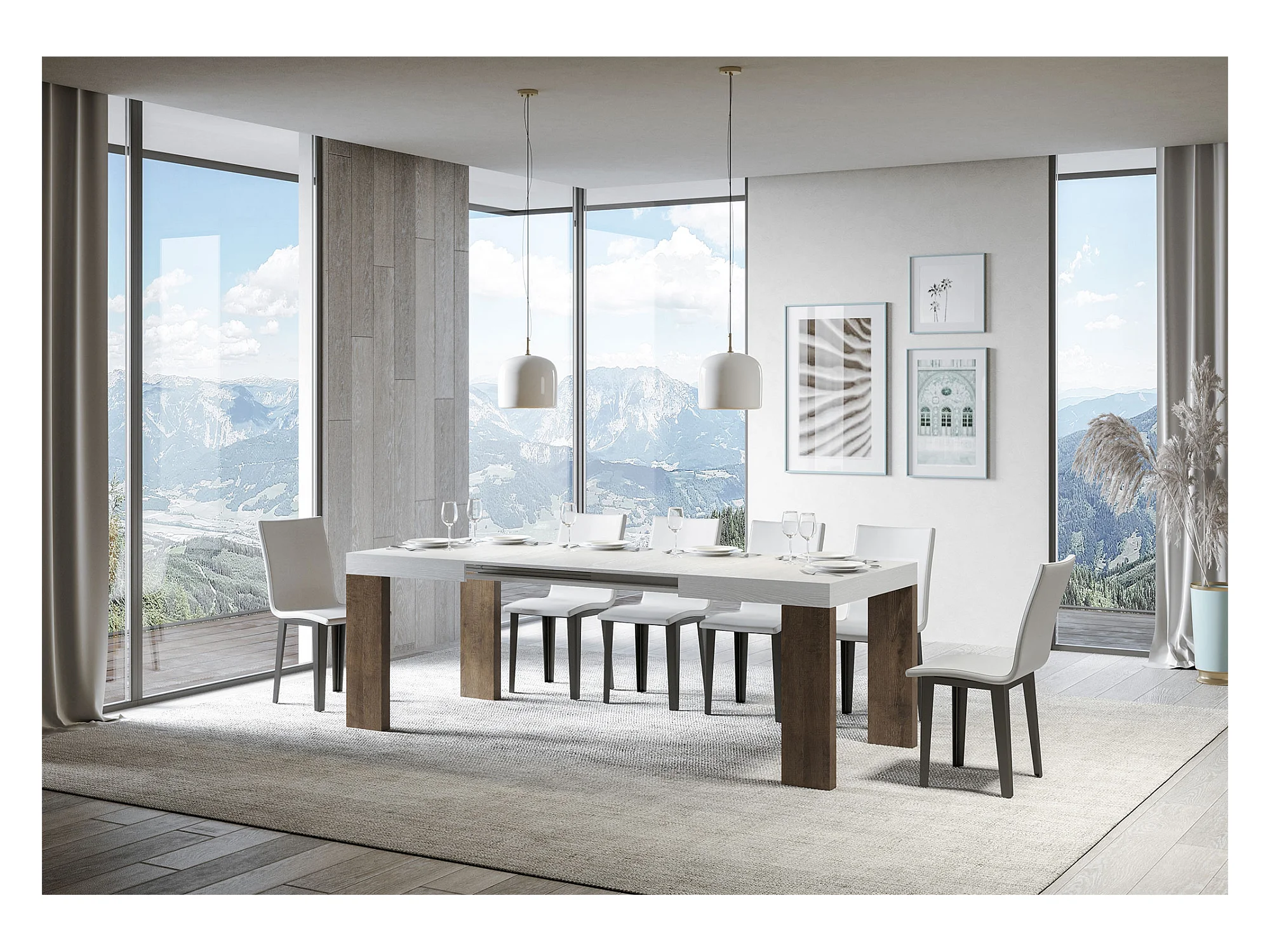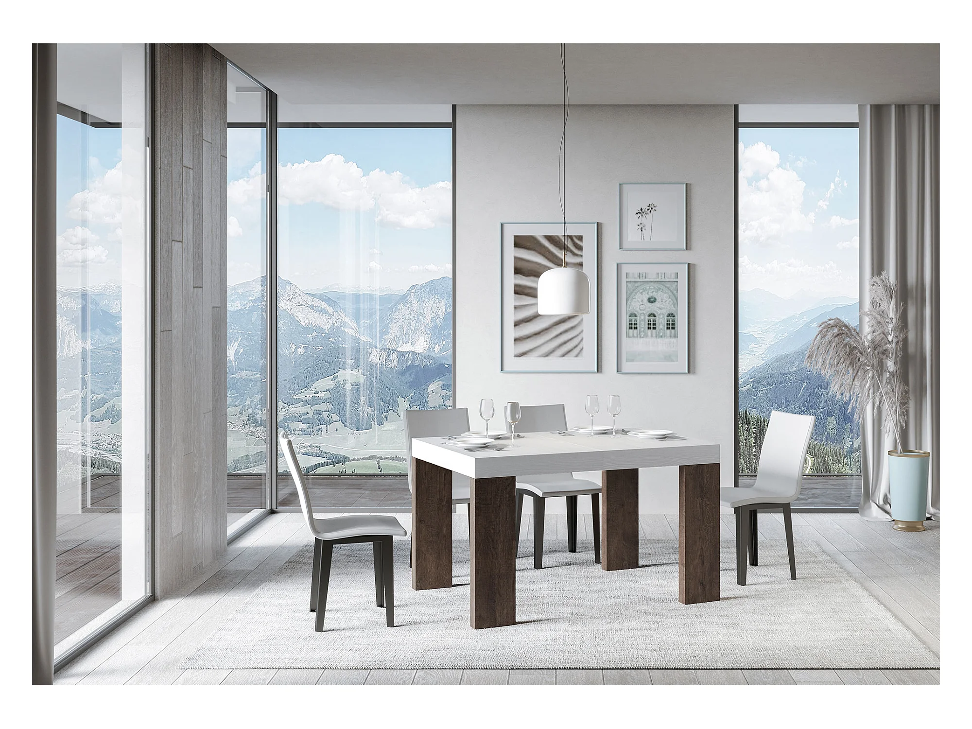 Stół rozkładany 90x160/420 cm Roxell Mix Biały jesionowy blat - Nogi z orzecha włoskiego