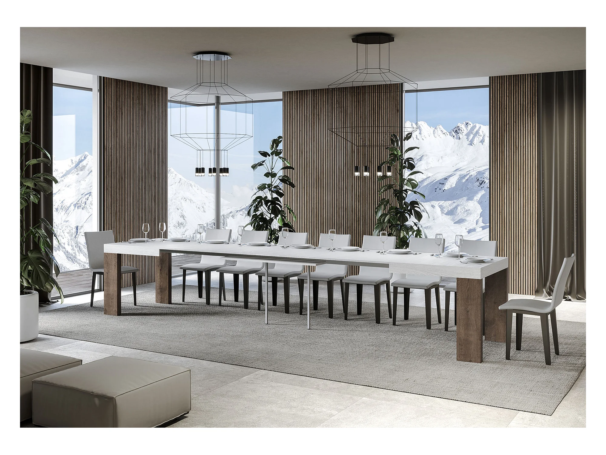 Stół rozkładany 90x130/390 cm Roxell Mix Biały jesionowy blat - Nogi z orzecha włoskiego