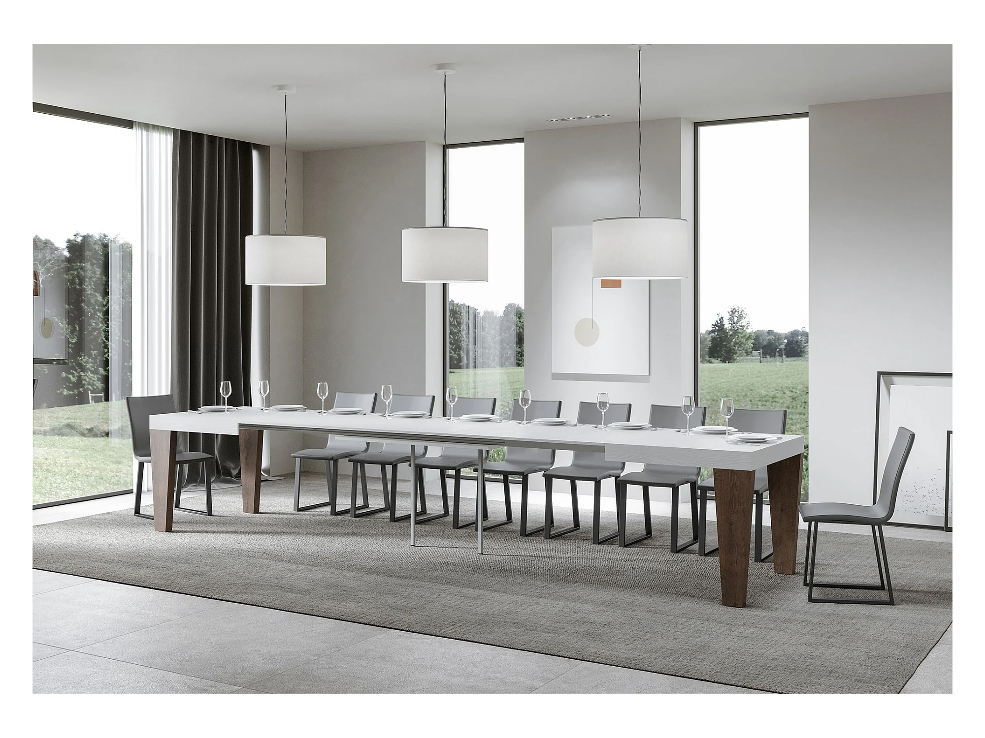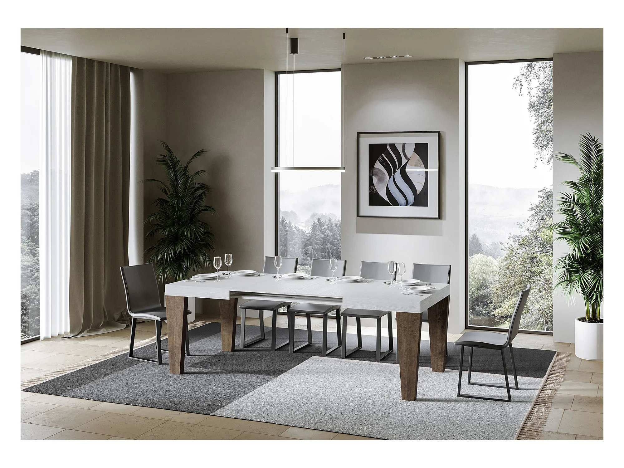 Stół rozkładany 90x160/420 cm Roxell Mix Biały jesionowy blat - Nogi z orzecha włoskiego