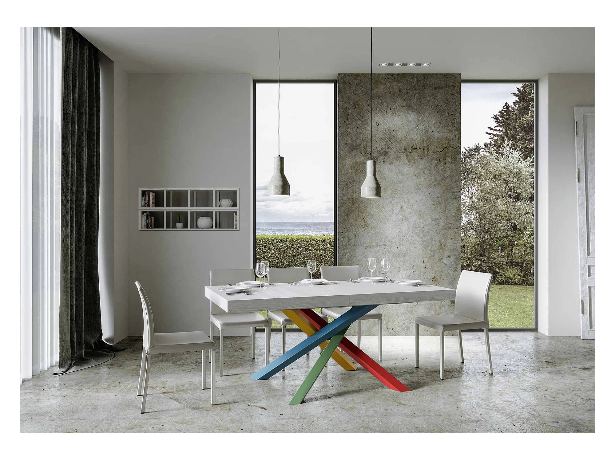 Stół rozkładany 200/304x90 cm Volantis biały jesion nogi wielokolorowe 4/A