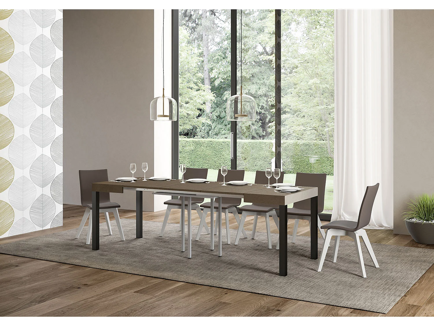Szklany stół do jadalni z przedłużeniem