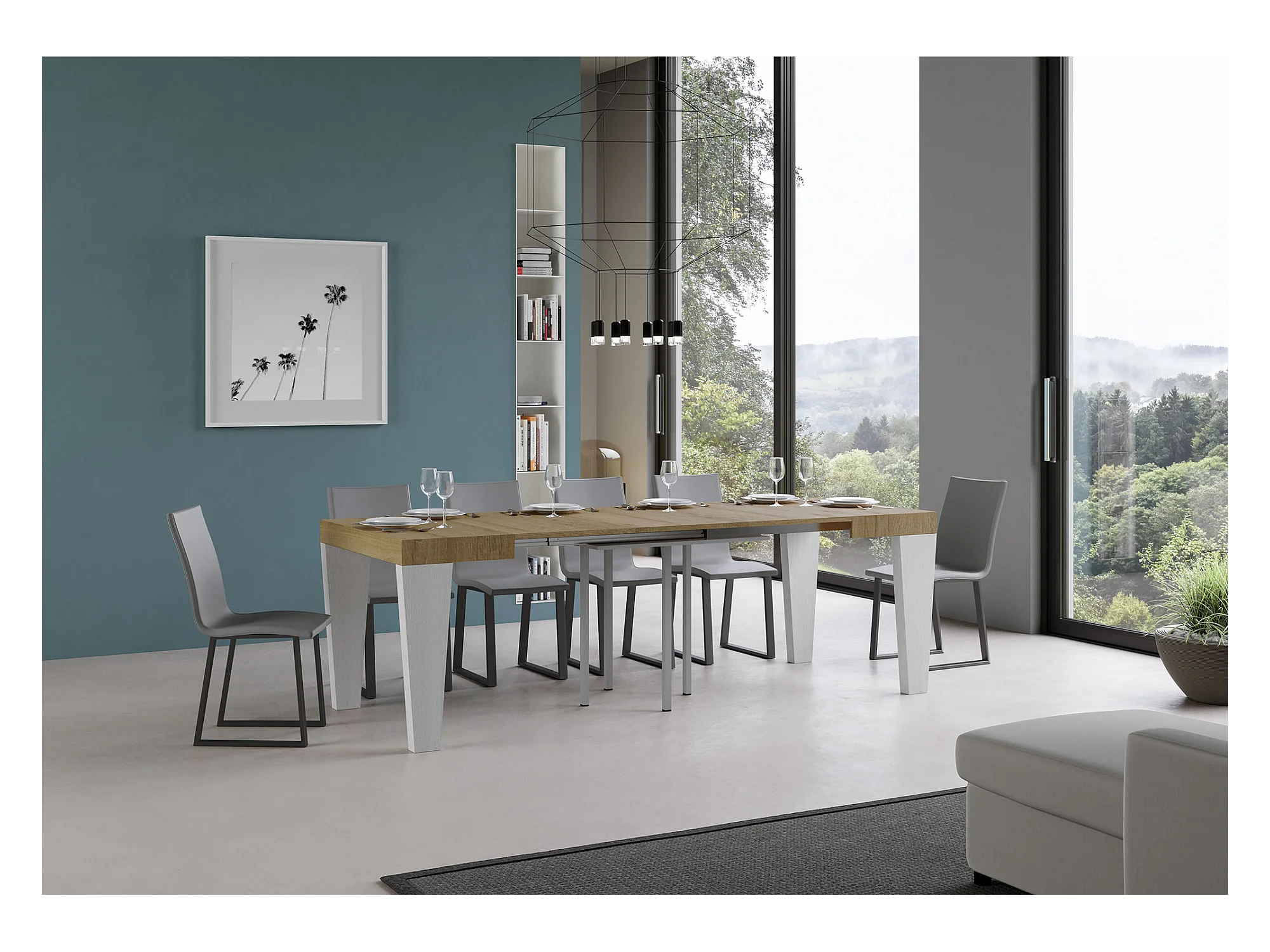 Stół rozkładany 90x90/246 cm Spimbo Mix Nature Dąb Blat - Nogi jesion biały