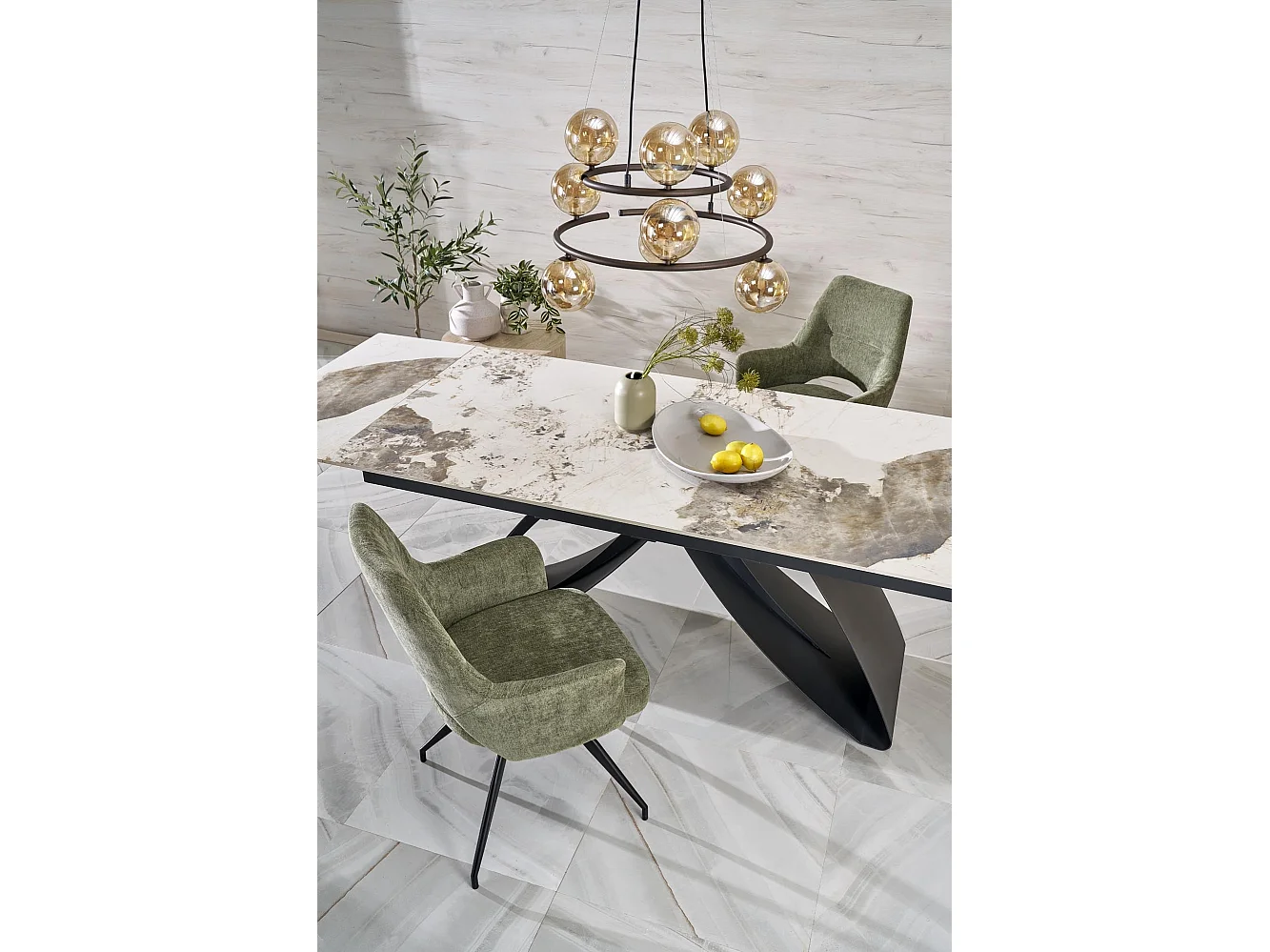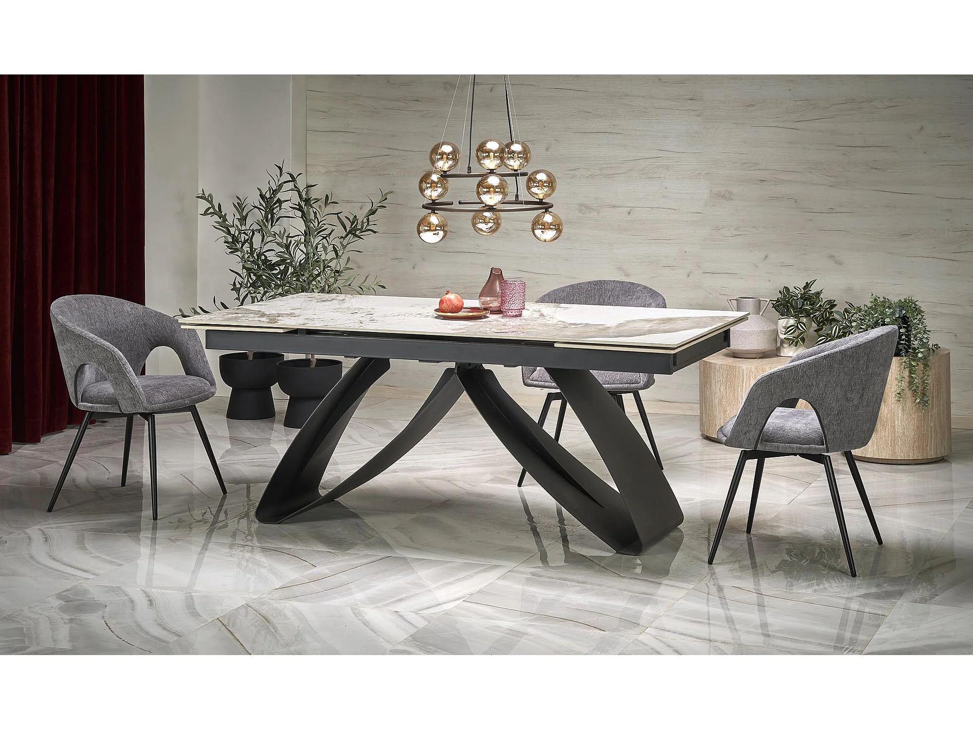 Stół rozkładany FERNANDO 160(240)x92 beżowy marmur/czarny