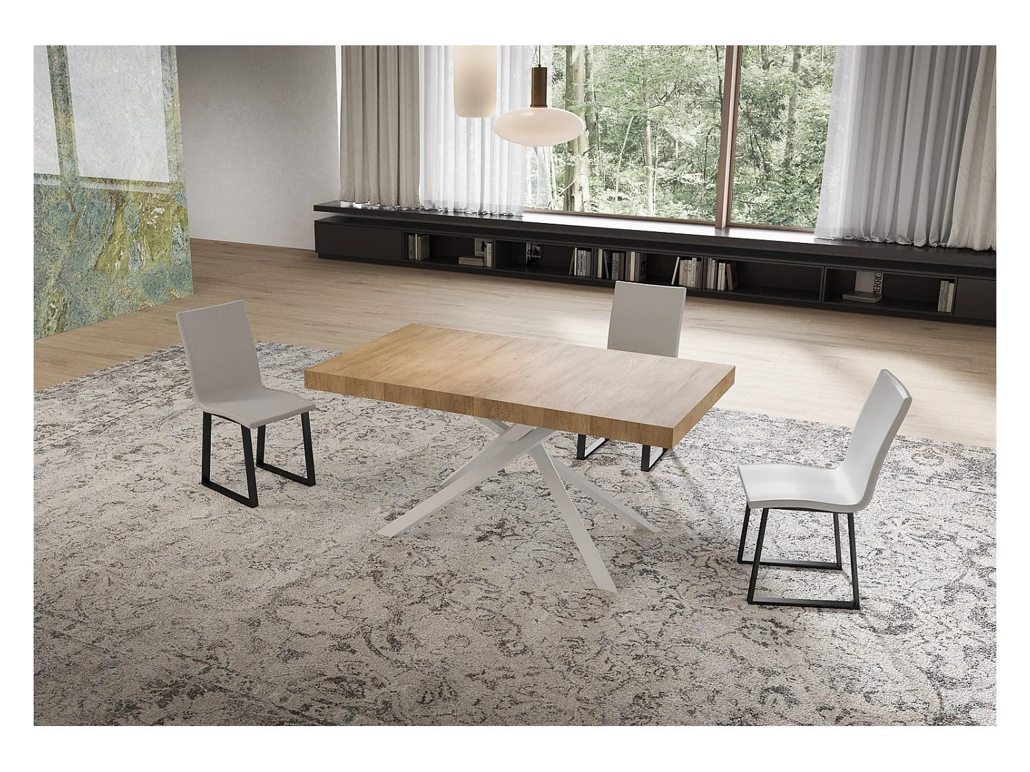 Stół rozkładany Niket 160/420x90 cm dąb naturalny nogi białe