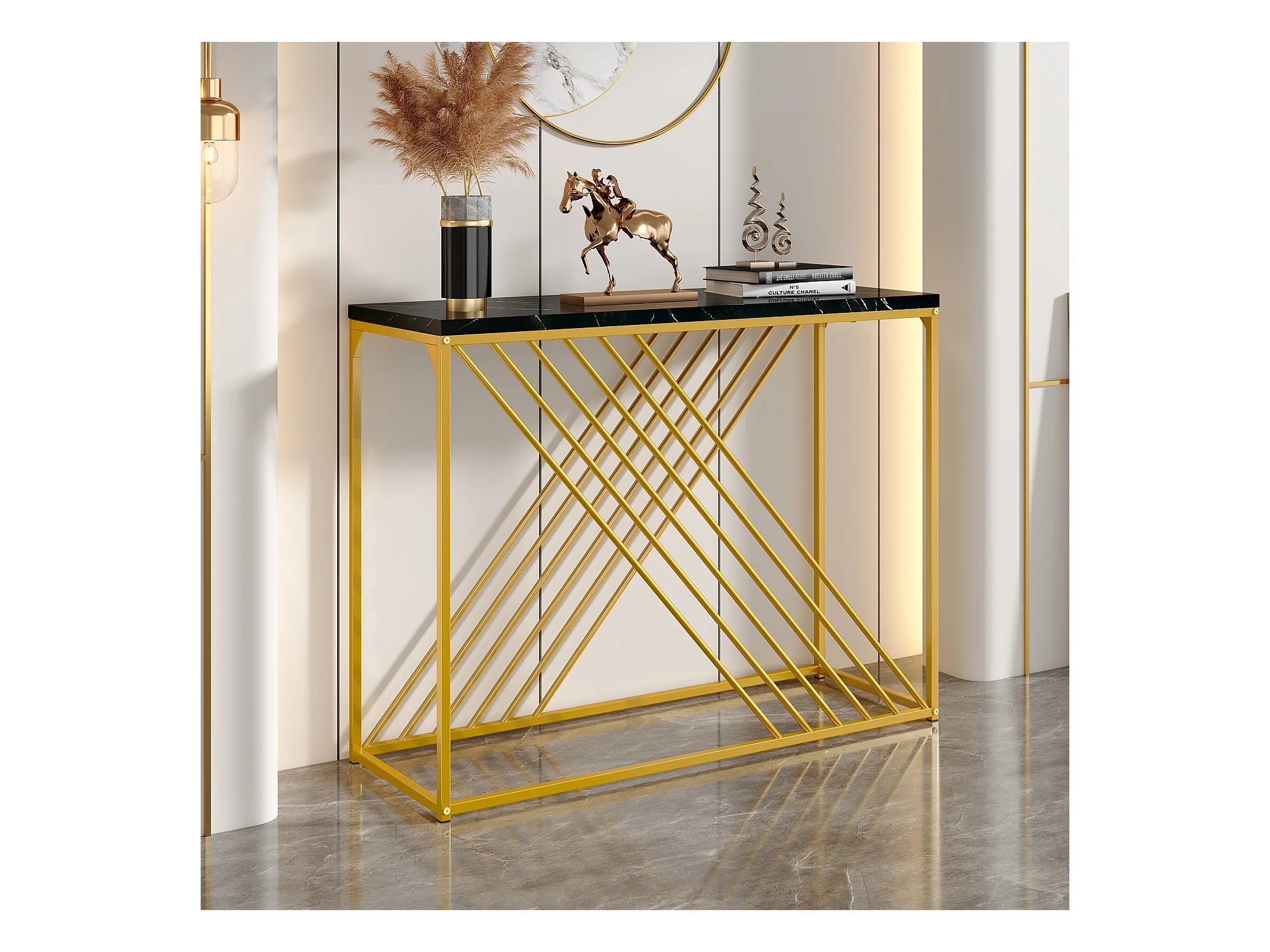 Stół Shiny Hall - 100 x 35 x 77 cm - ze złotą podstawą + Stolik pomocniczy - MDF + Metal - Biały + Złoty