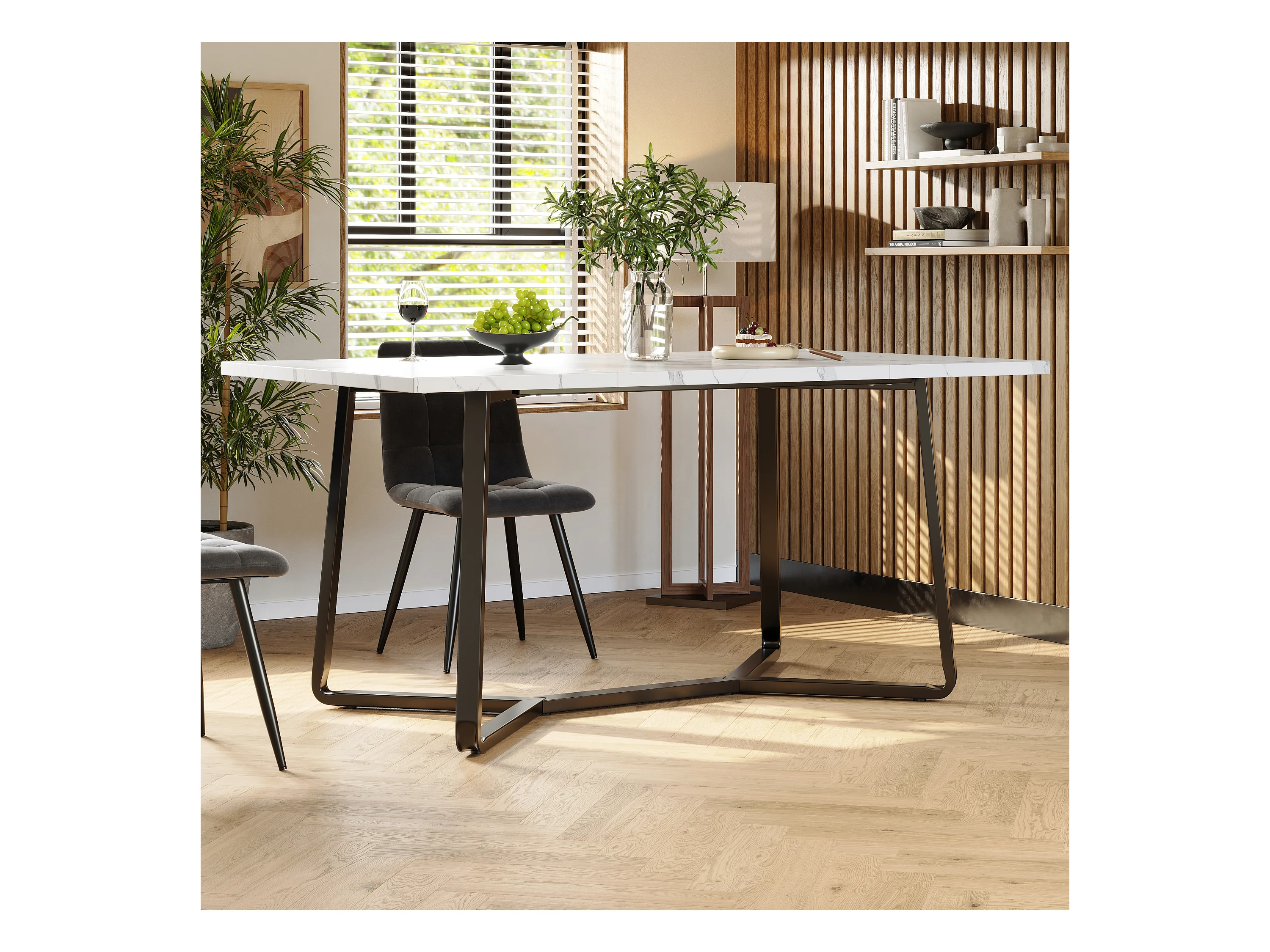 Stół z 4 krzesłami - Blat MDF, metalowa konstrukcja i aksamitne poduszki - Biały i Czarny