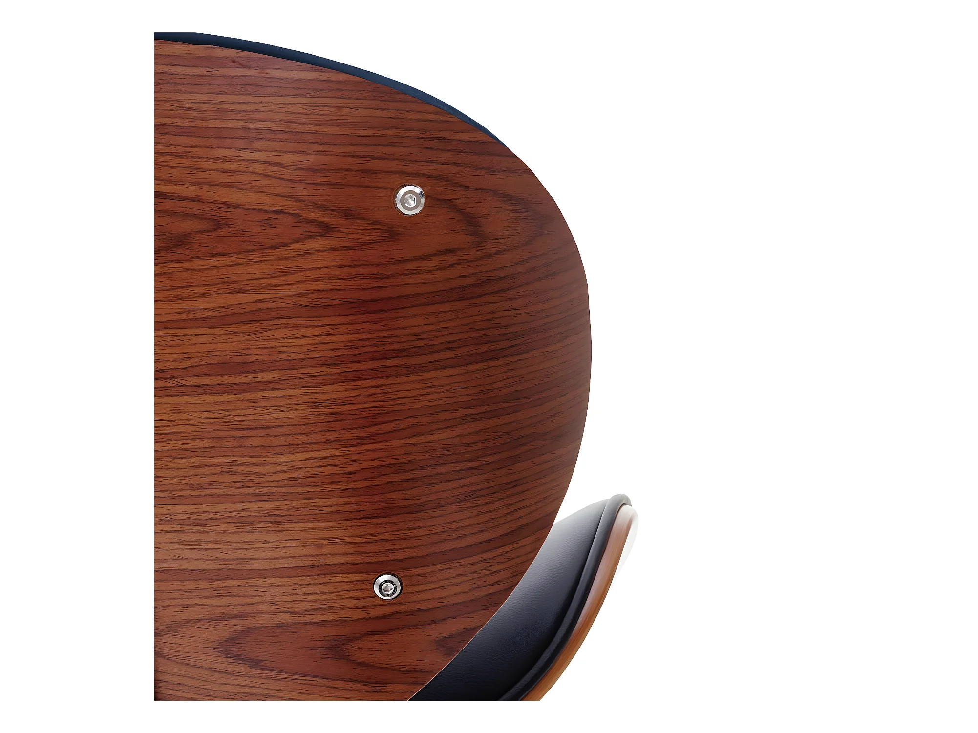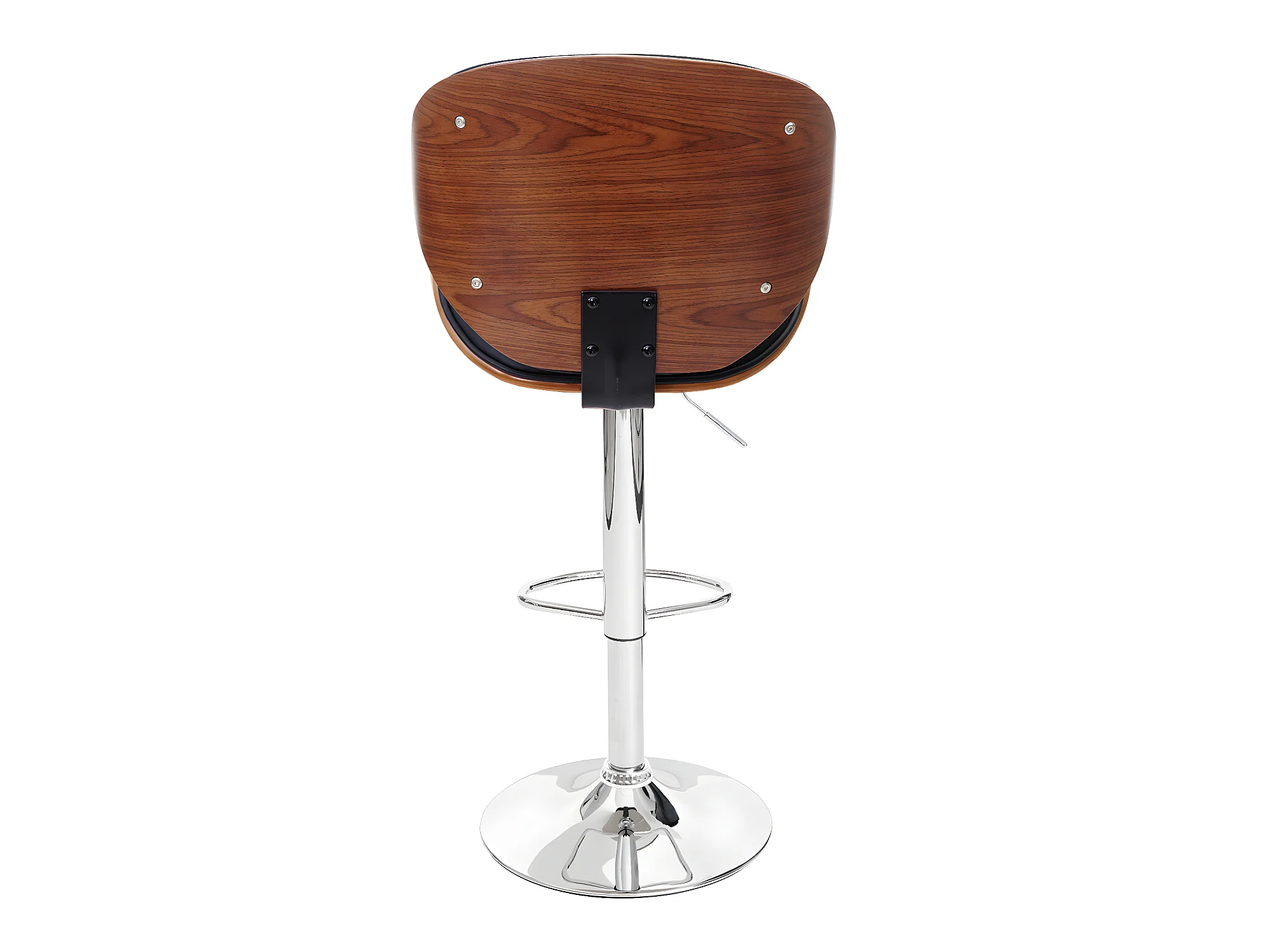 Stołek barowy Arklow, orzechowy wygląd, czarna sztuczna skóra