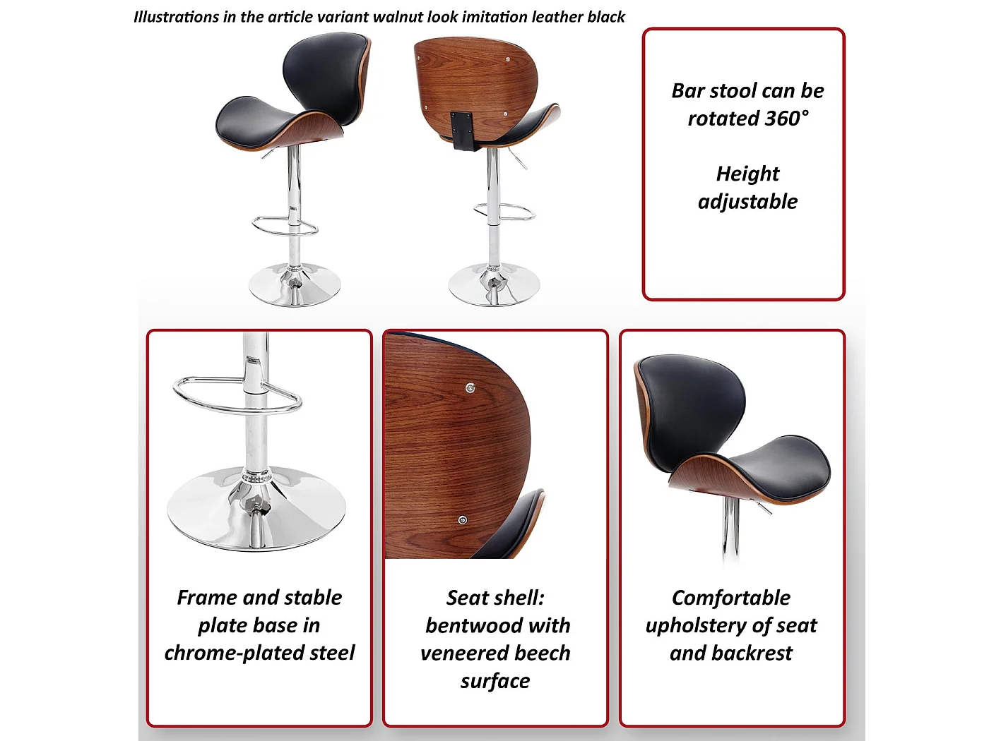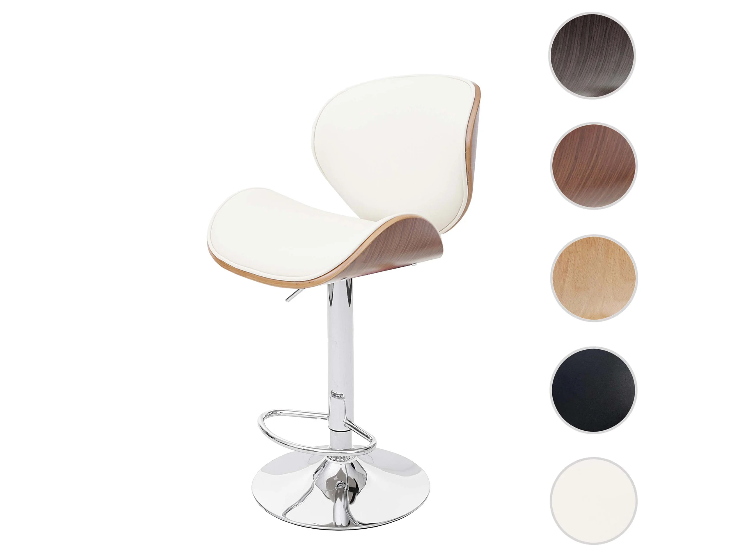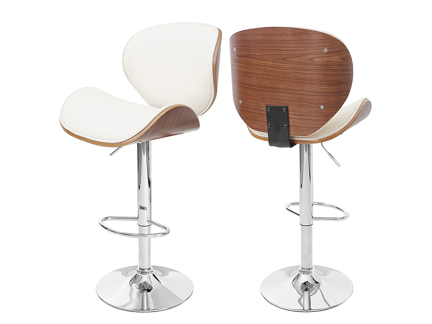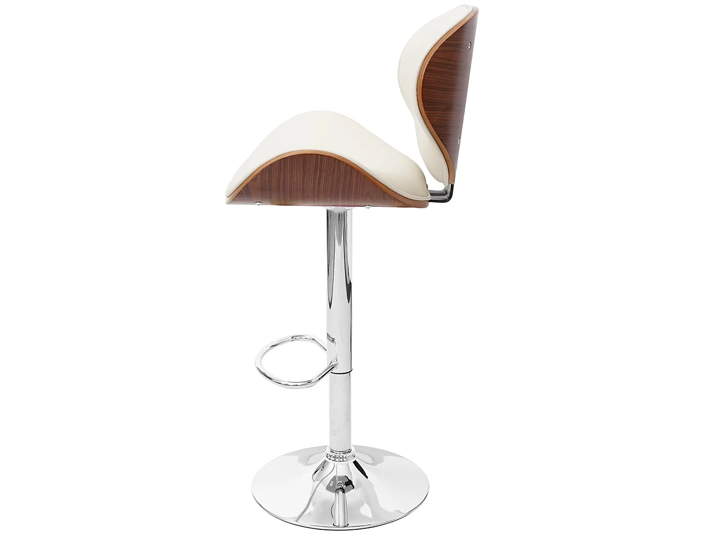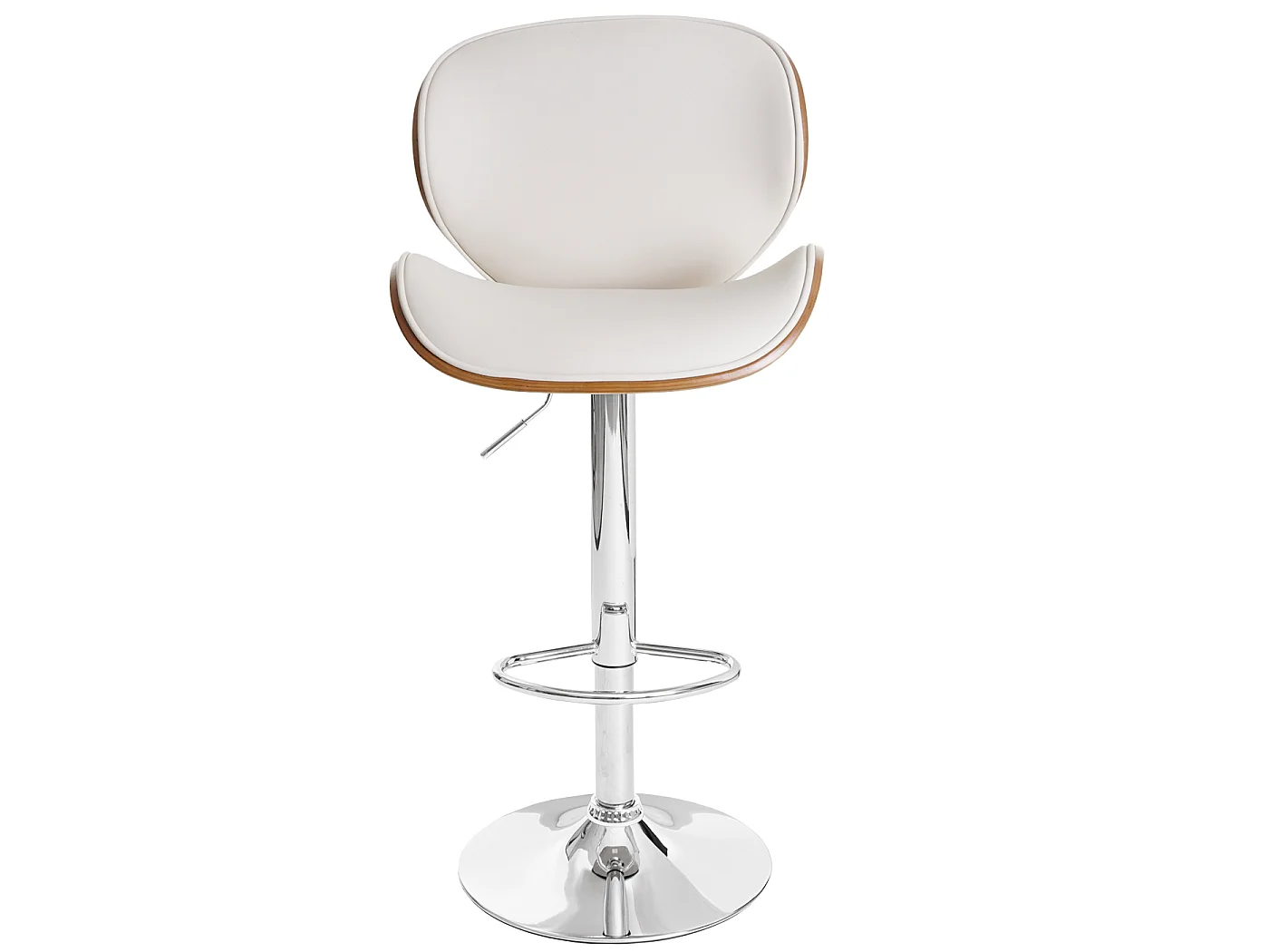 Stołek barowy Arklow, orzechowy wygląd, kremowa imitacja skóry