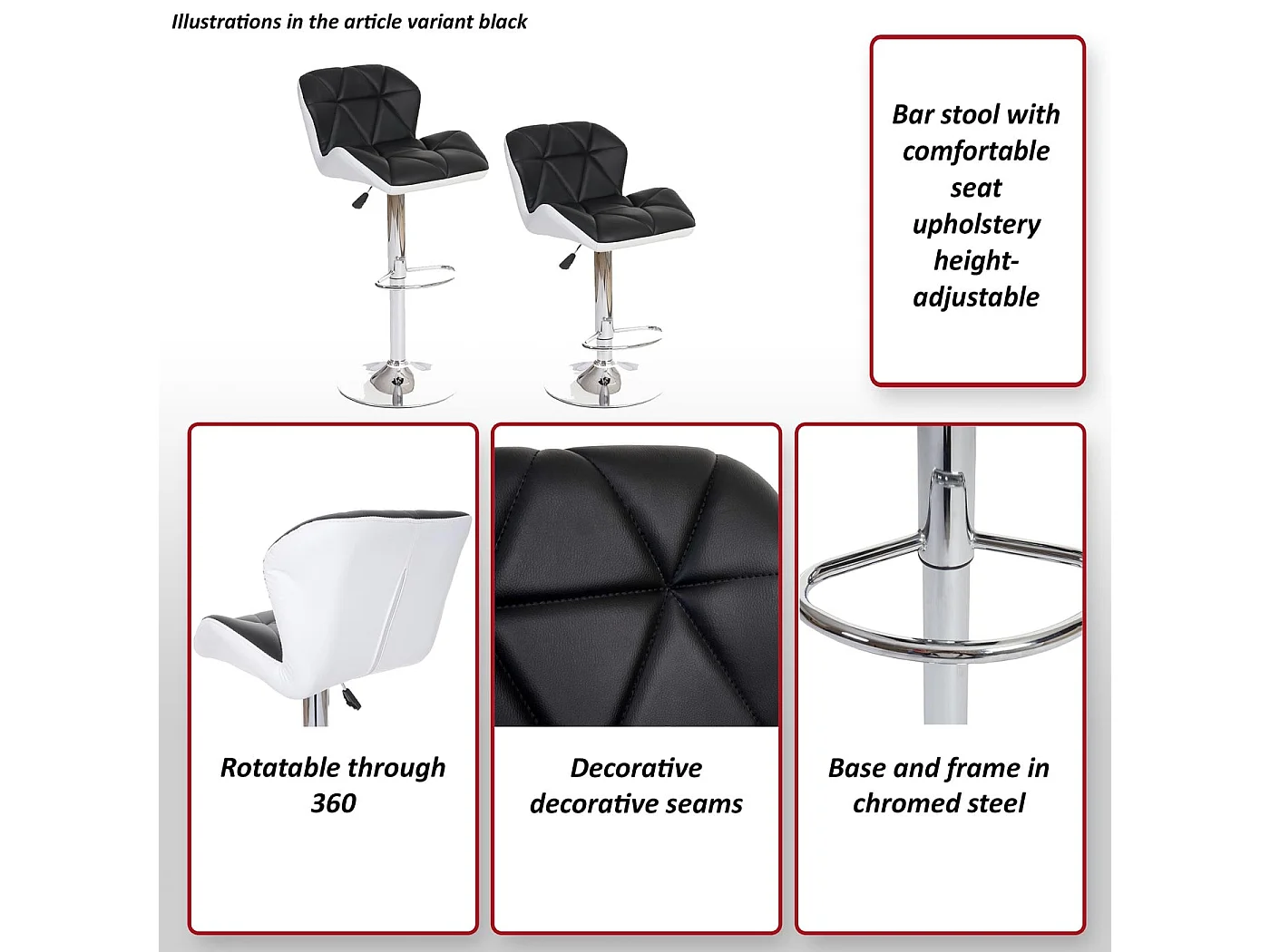 Stołek barowy MCW-A92 (zestaw 2 szt.), szary