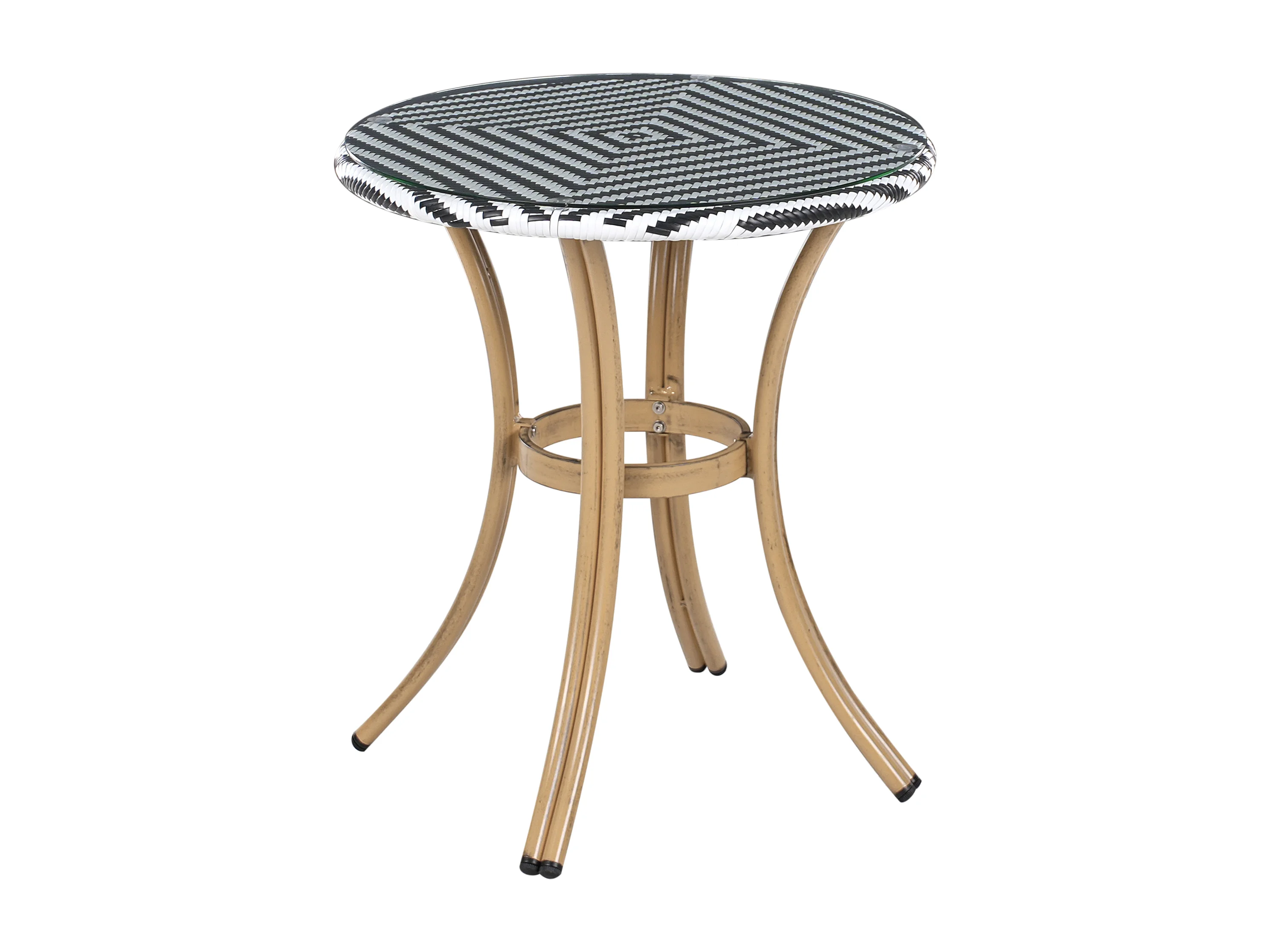 Stół ogrodowy z plecionej żywicy beżowej z blatem ze szkła 80x80x75cm