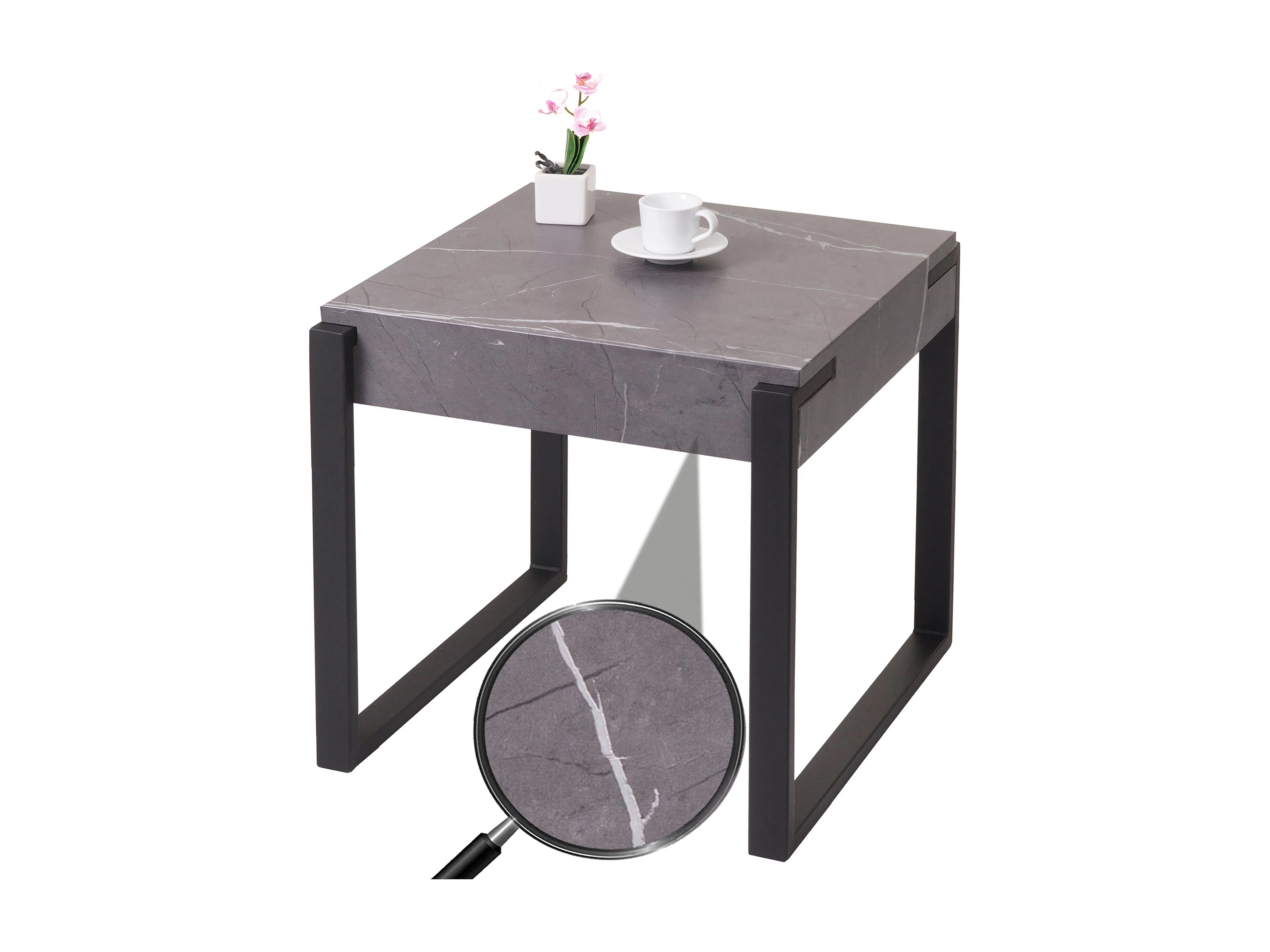 Stolik boczny MCW-L53, marmurowy wygląd szary