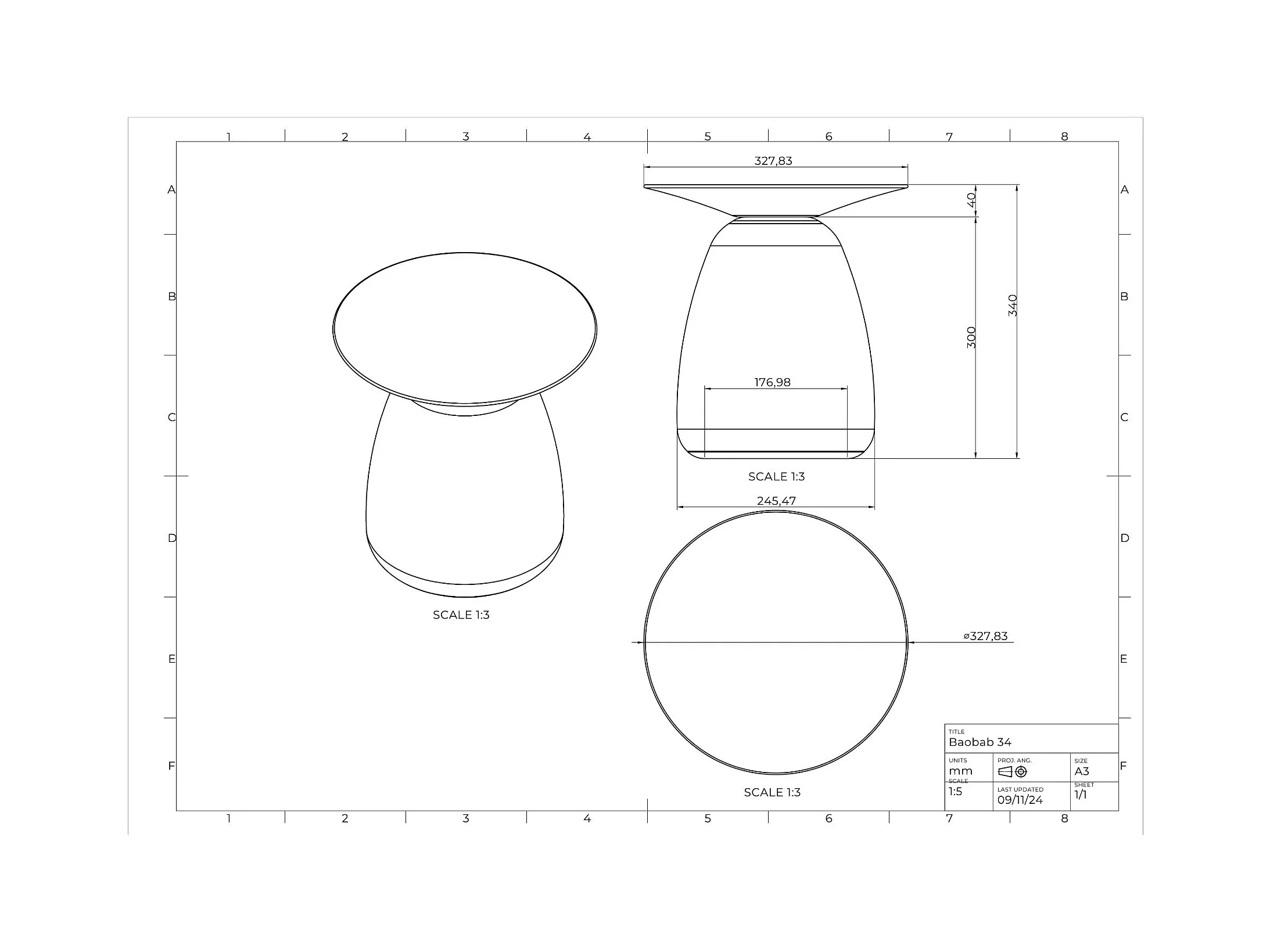 Stolik drewniany różne kolory Kayani Baobab 34, śr. 32,5 cm, czarny