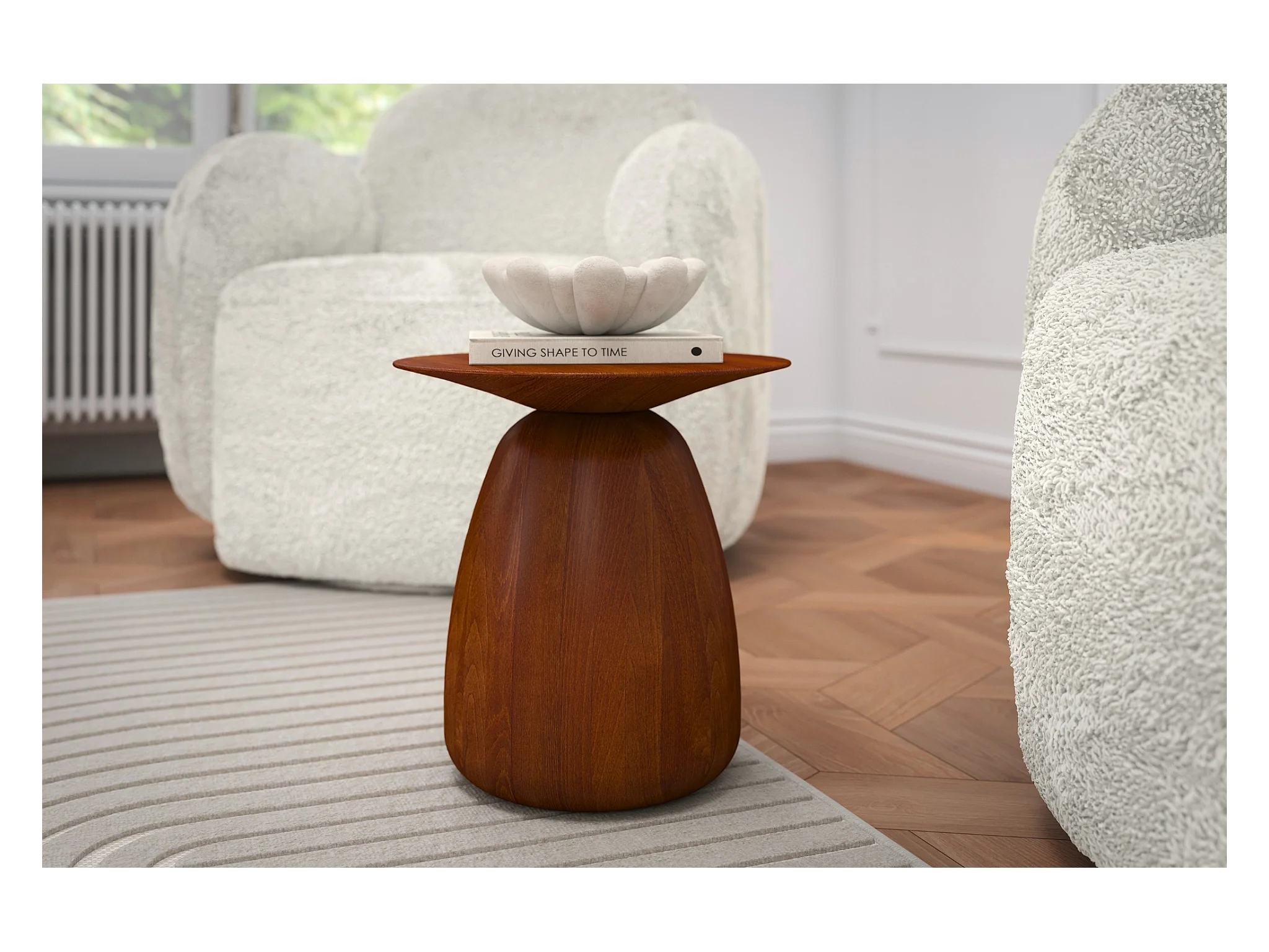 Stolik drewniany różne kolory Kayani Baobab 34, śr. 32,5 cm, orzech