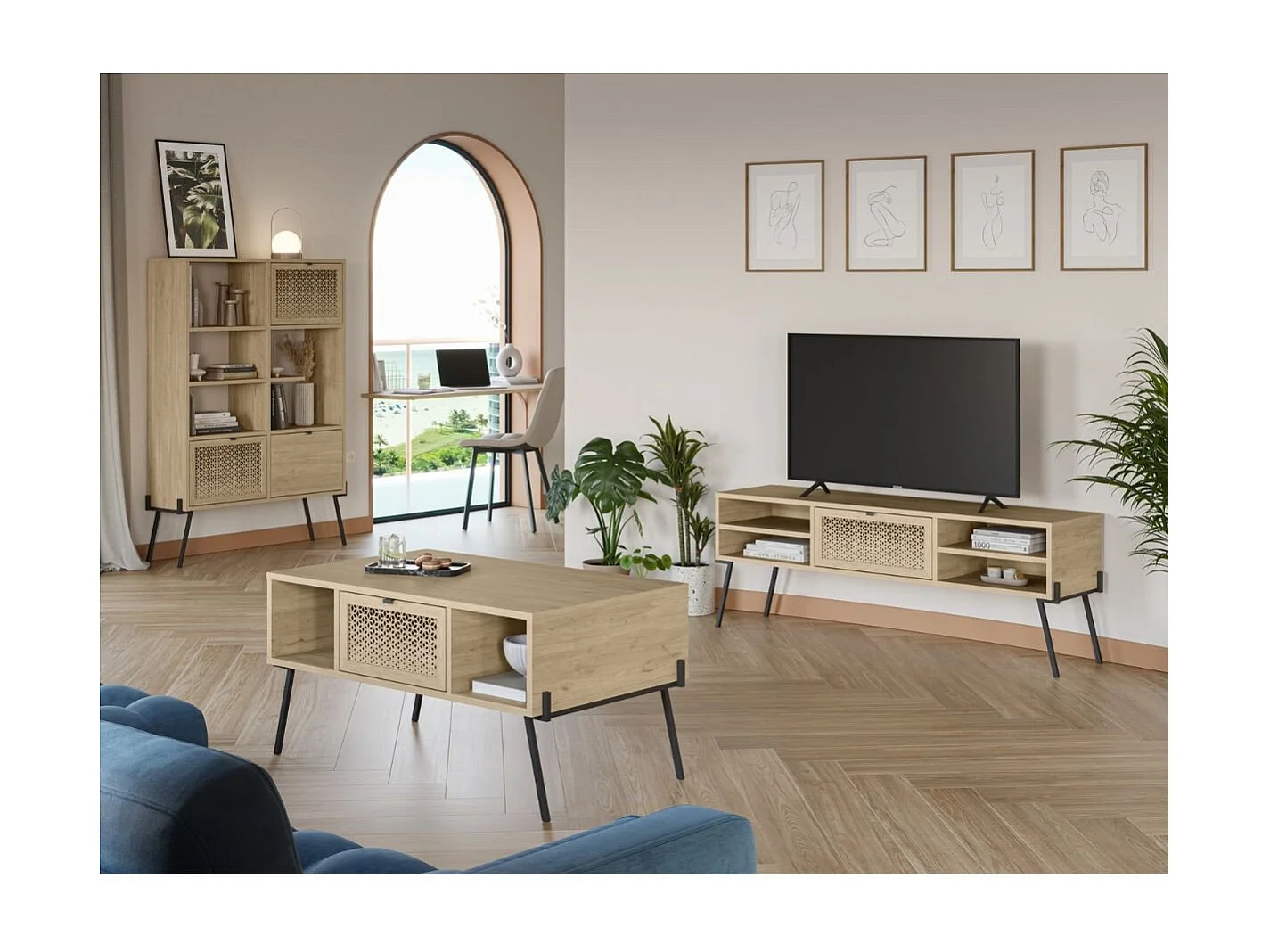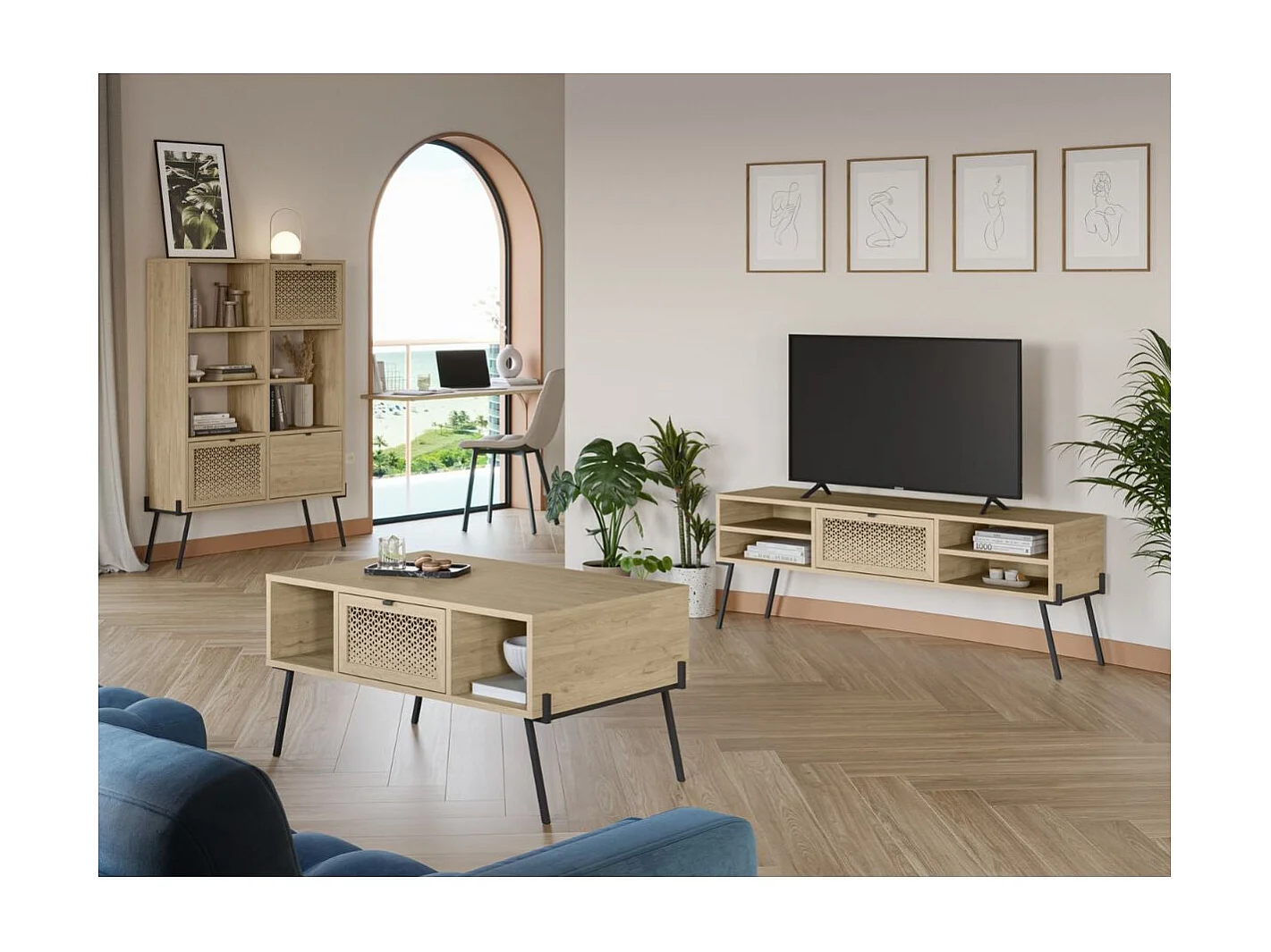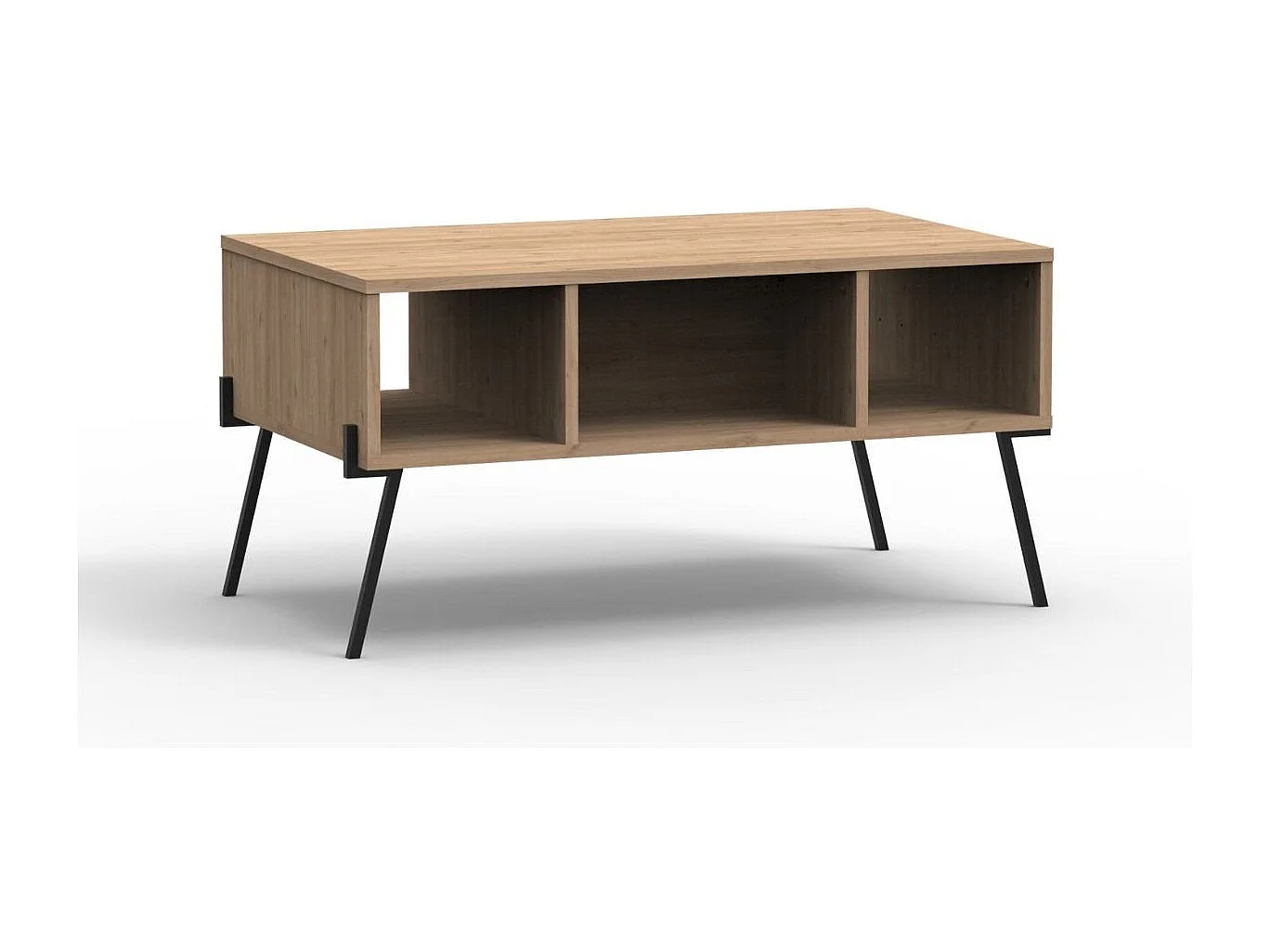 Stolik kawowy 1 drzwi 3 wnęki i metalowe nogi L100 cm - Evan