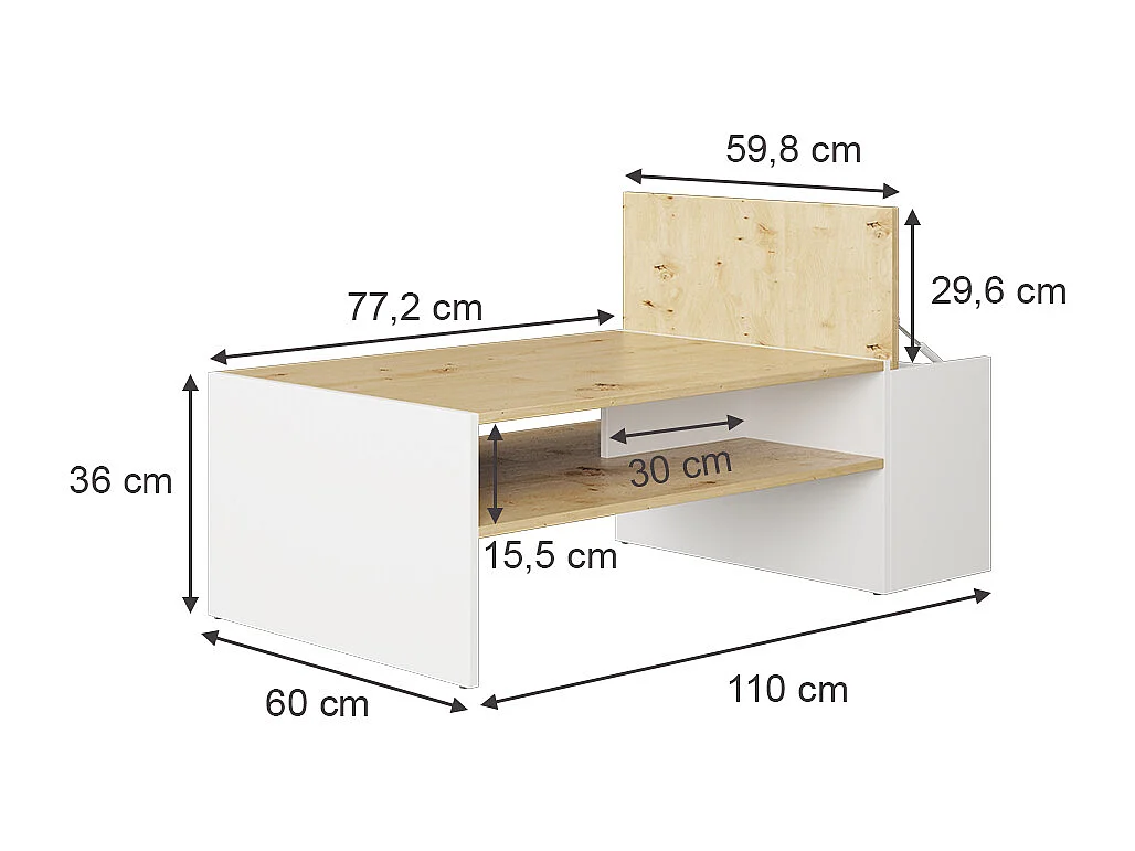 Stolik kawowy dąb rzemieślniczy/biały 110x60x36 rubby