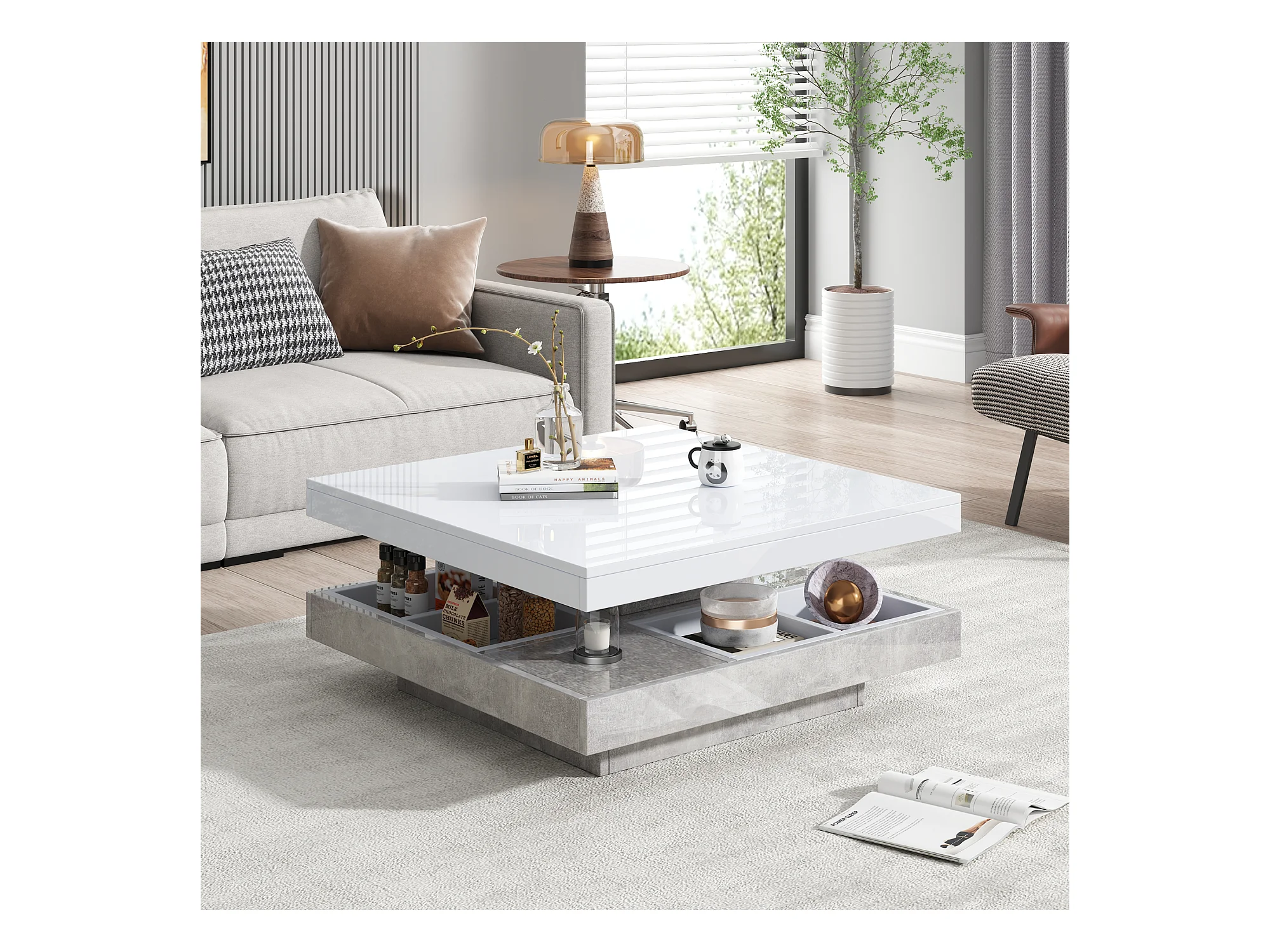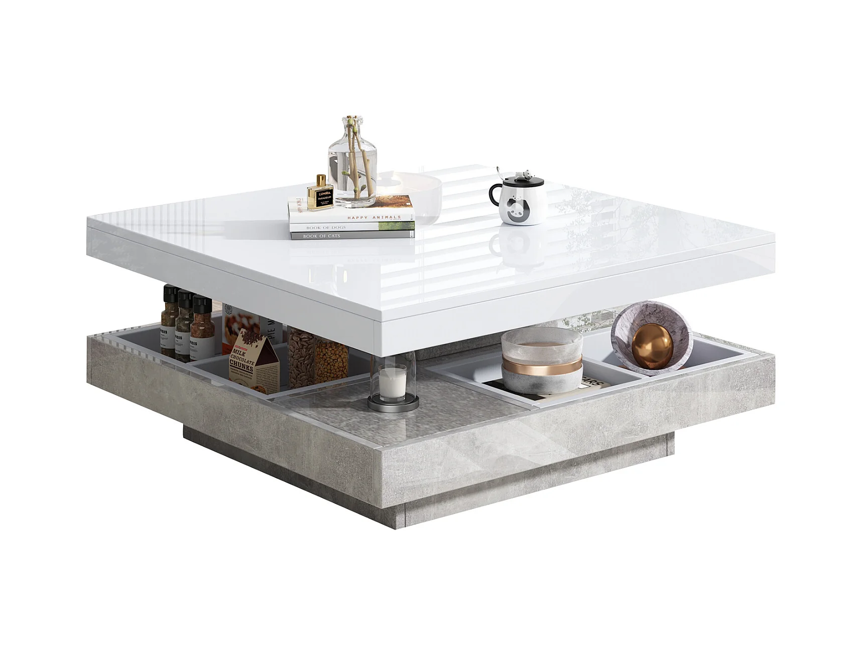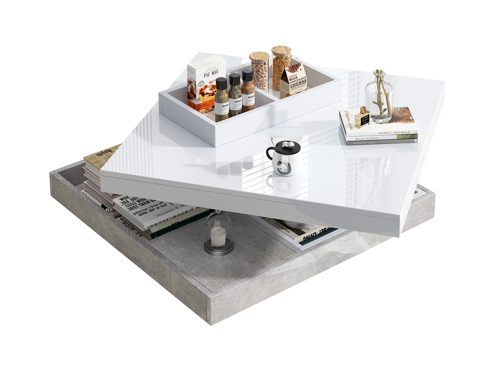 Stolik kawowy kwadratowy z 4 przegrodami i obrotowym blatem - 70 x 70 x 36 cm - Płyta wiórowa - Biały