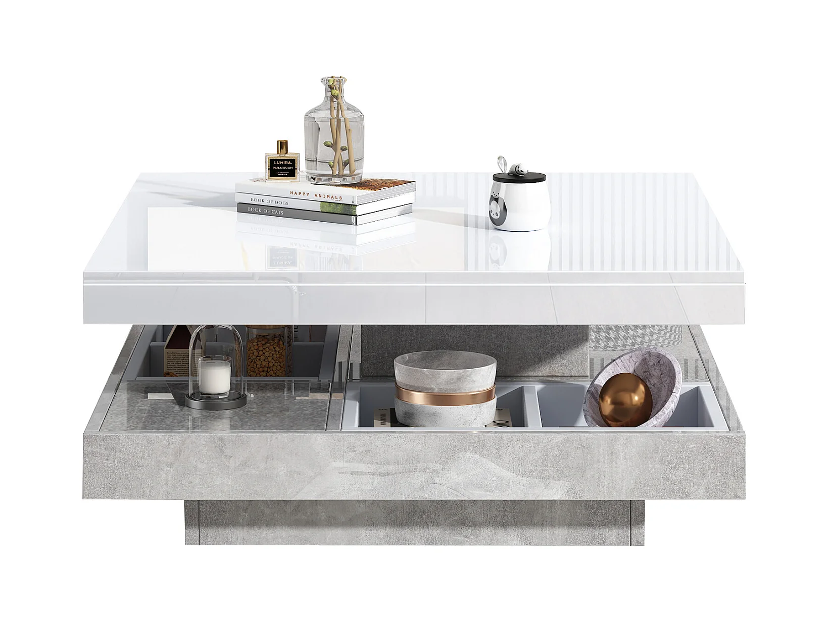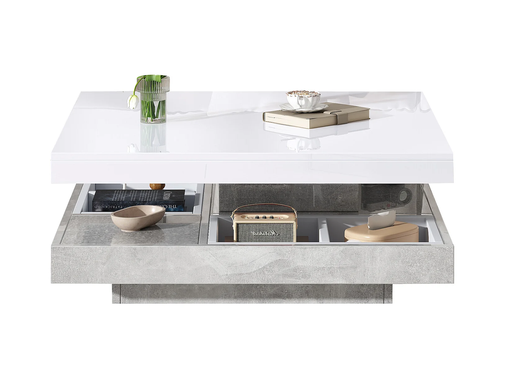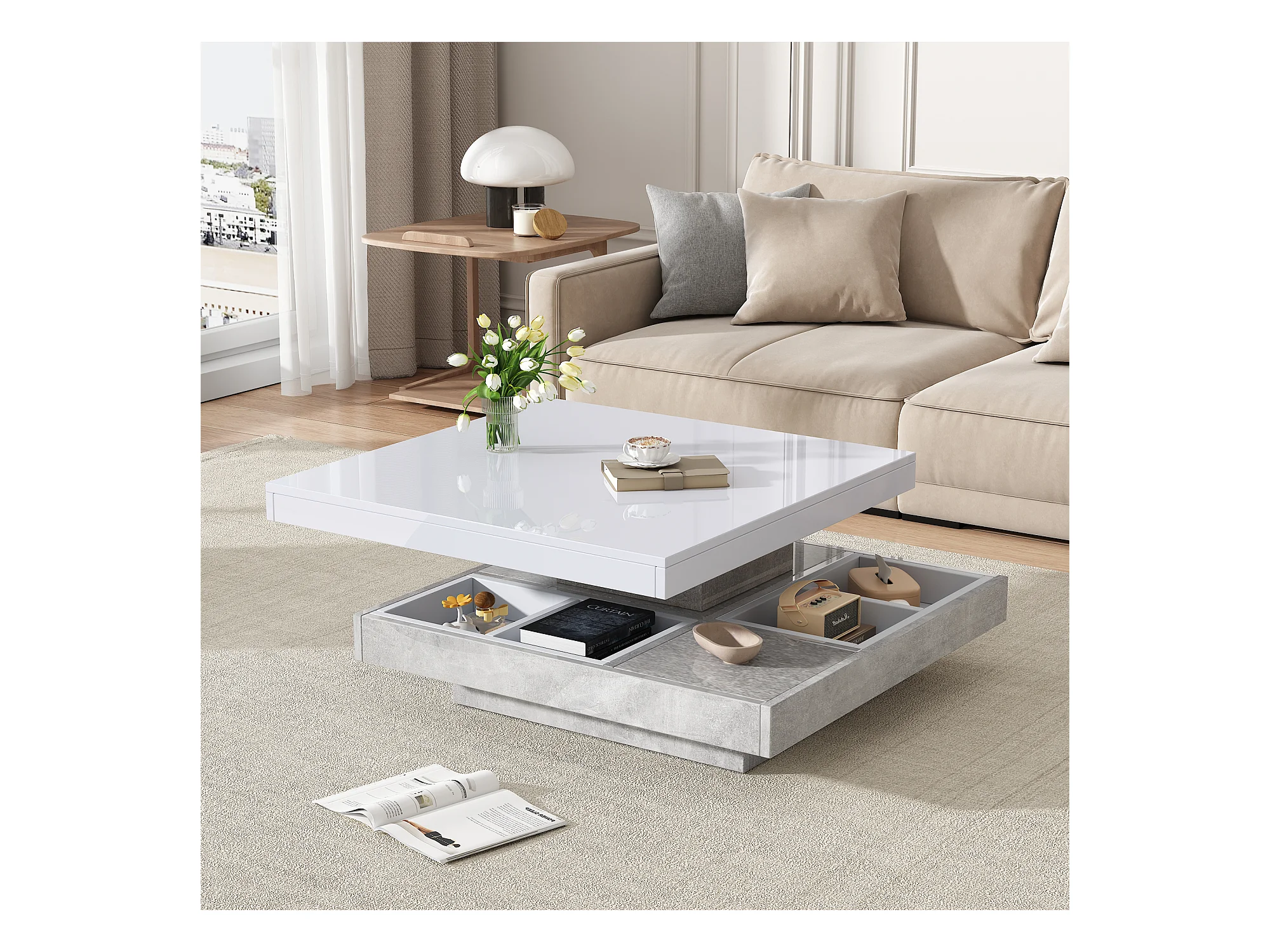 Stolik kawowy kwadratowy z 4 przegrodami i obrotowym blatem - 70 x 70 x 36 cm - Płyta wiórowa - Biały