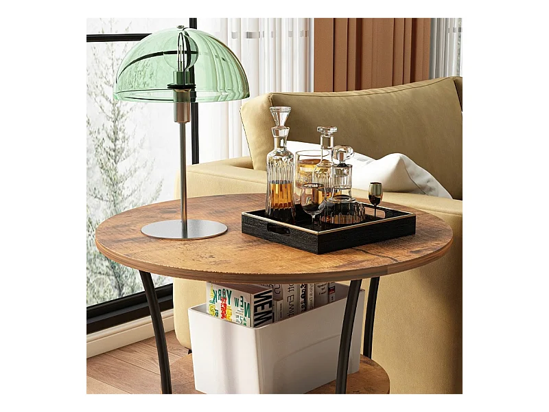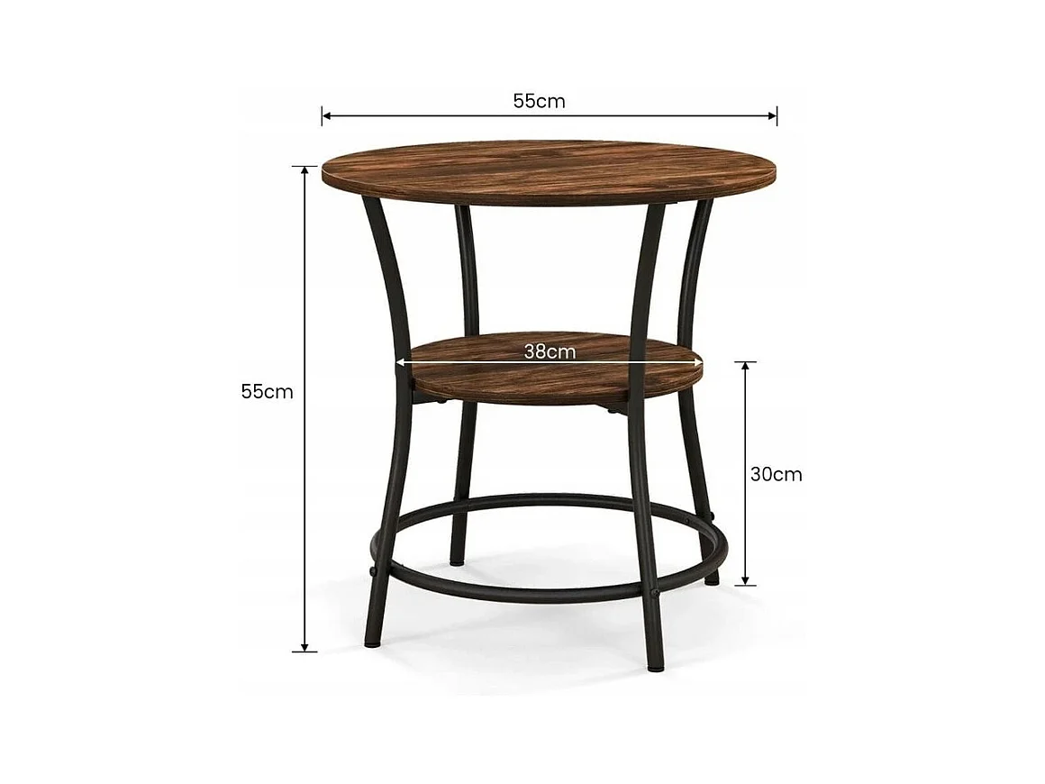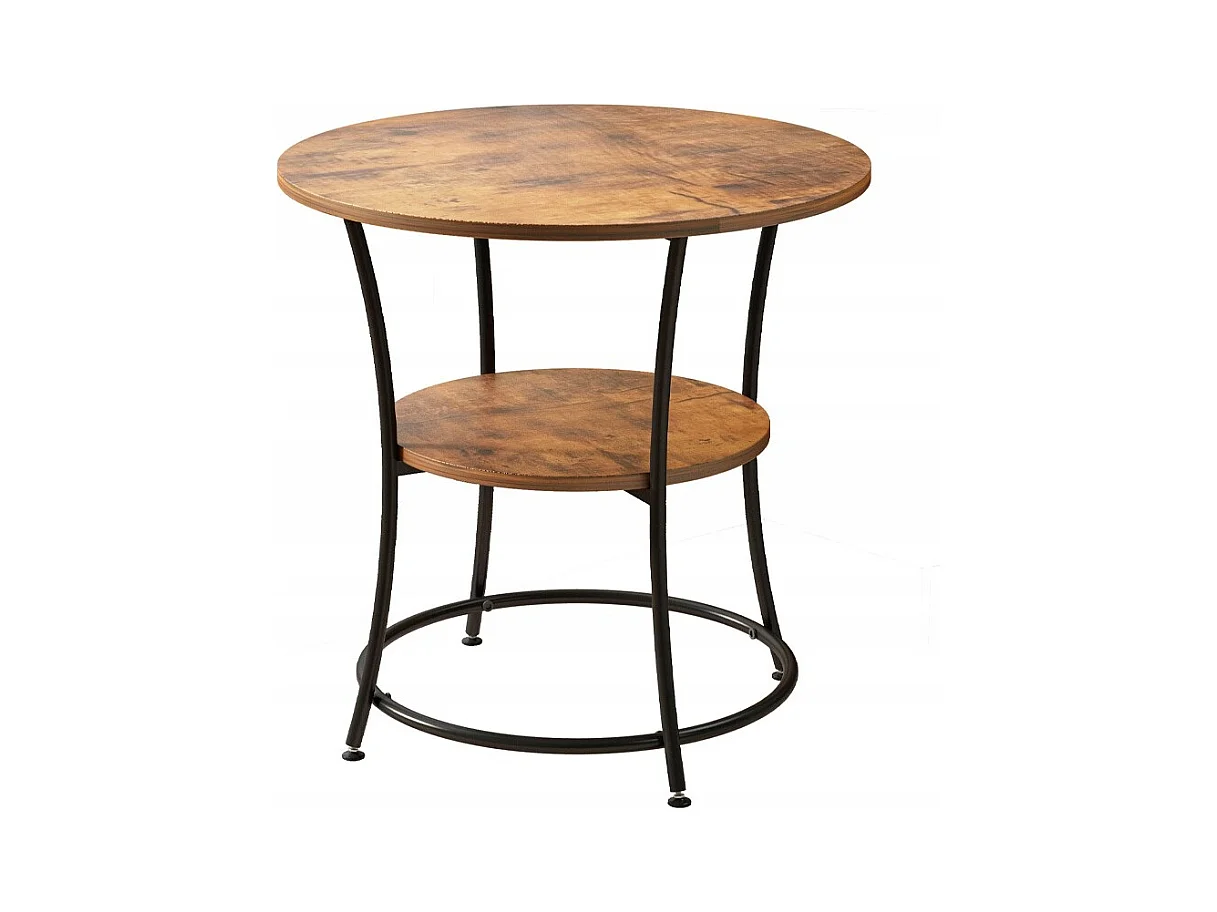 Stolik kawowy ława industrialny okrągły do salonu z półką brąz loft 55 cm