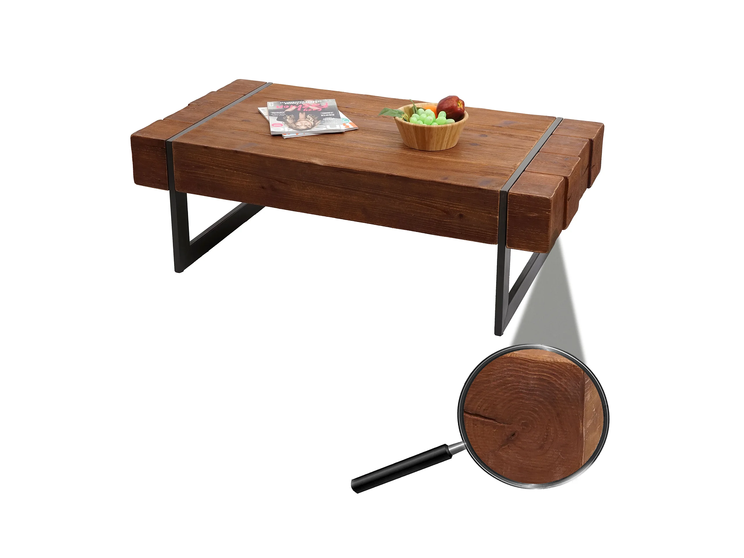 Stolik kawowy Genk T576, dziki dąb, ciemne metalowe nogi