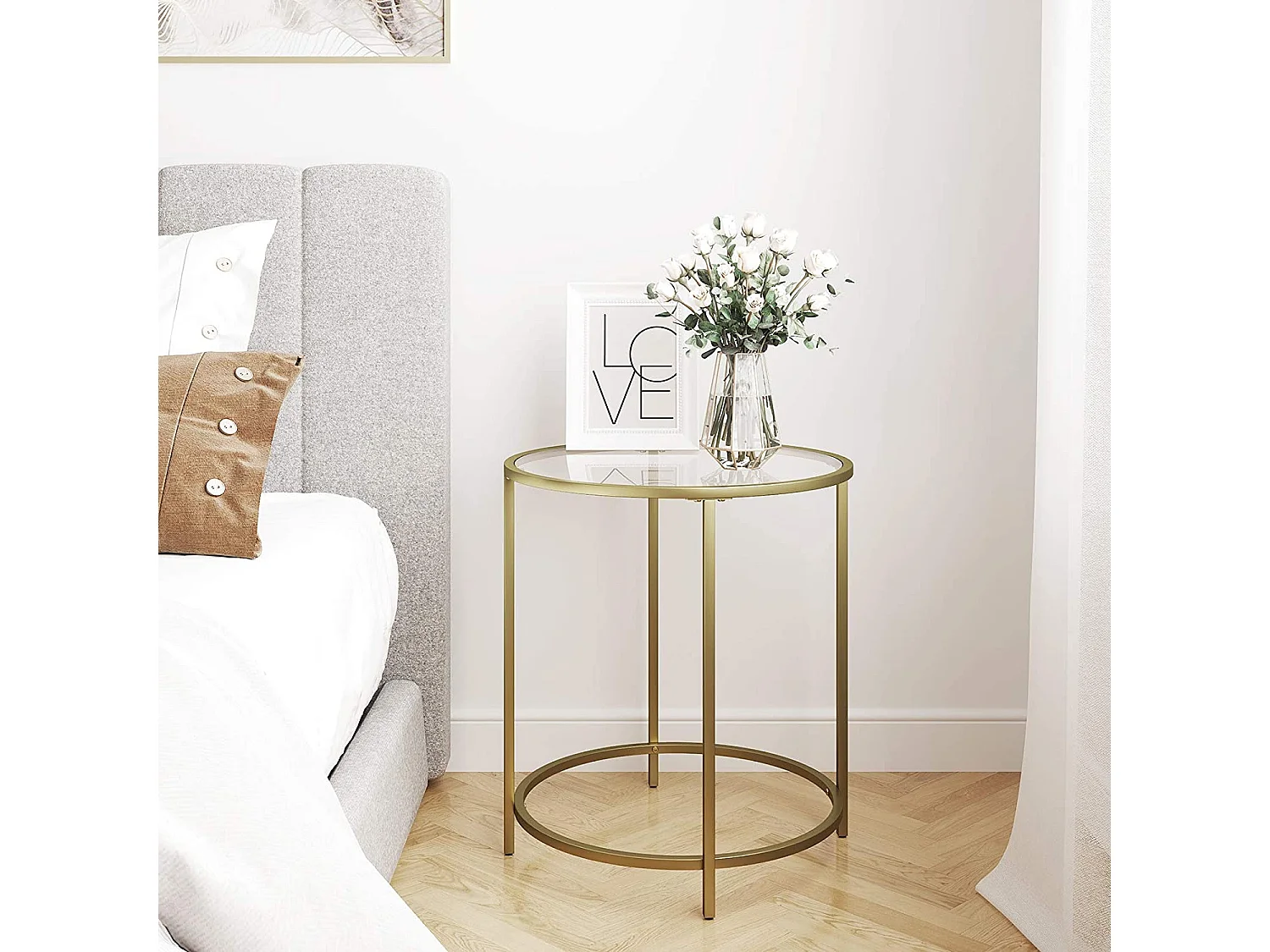 Stolik kawowy Valora GLASS TABLE ze złotym, żelaznym, szklanym blatem do salonu
