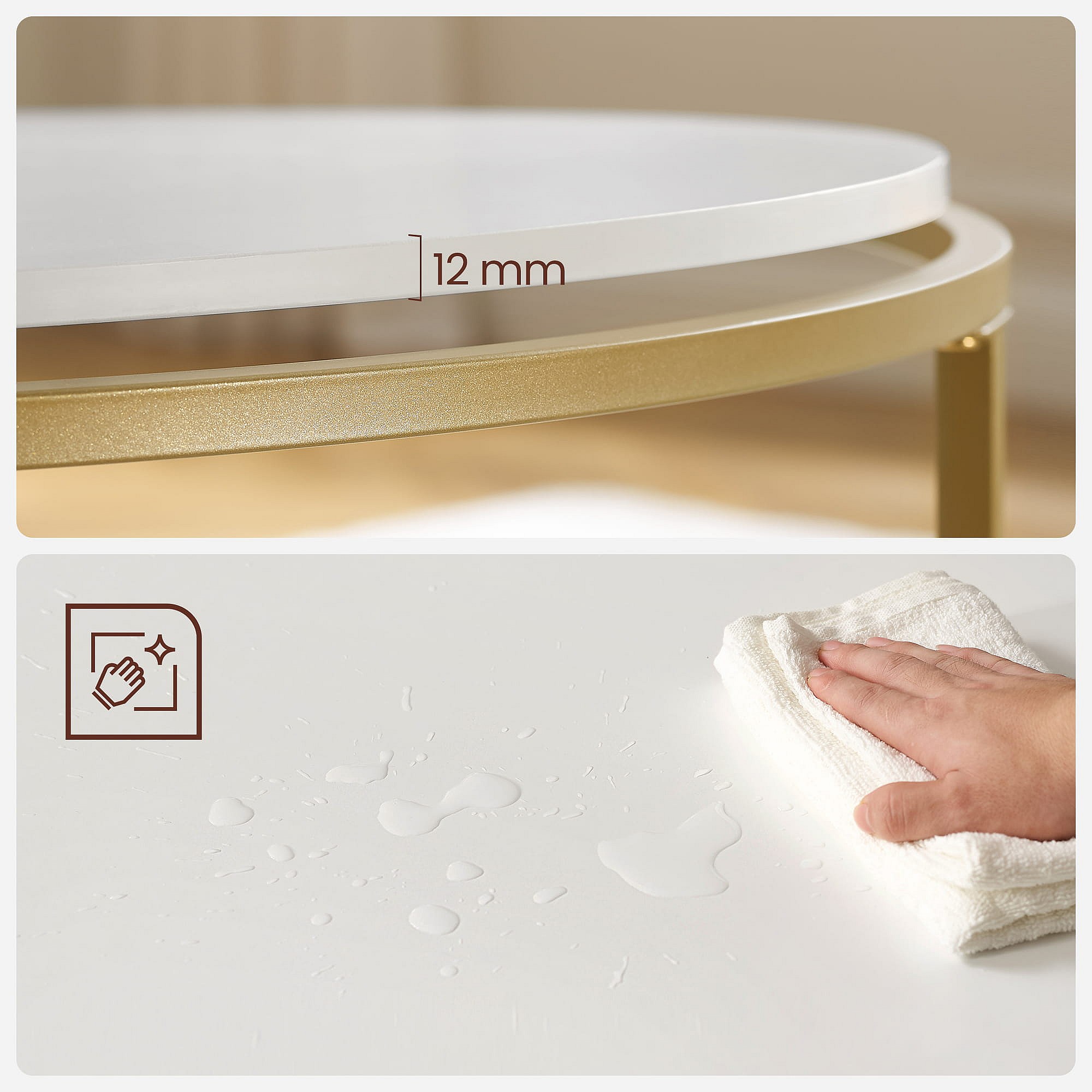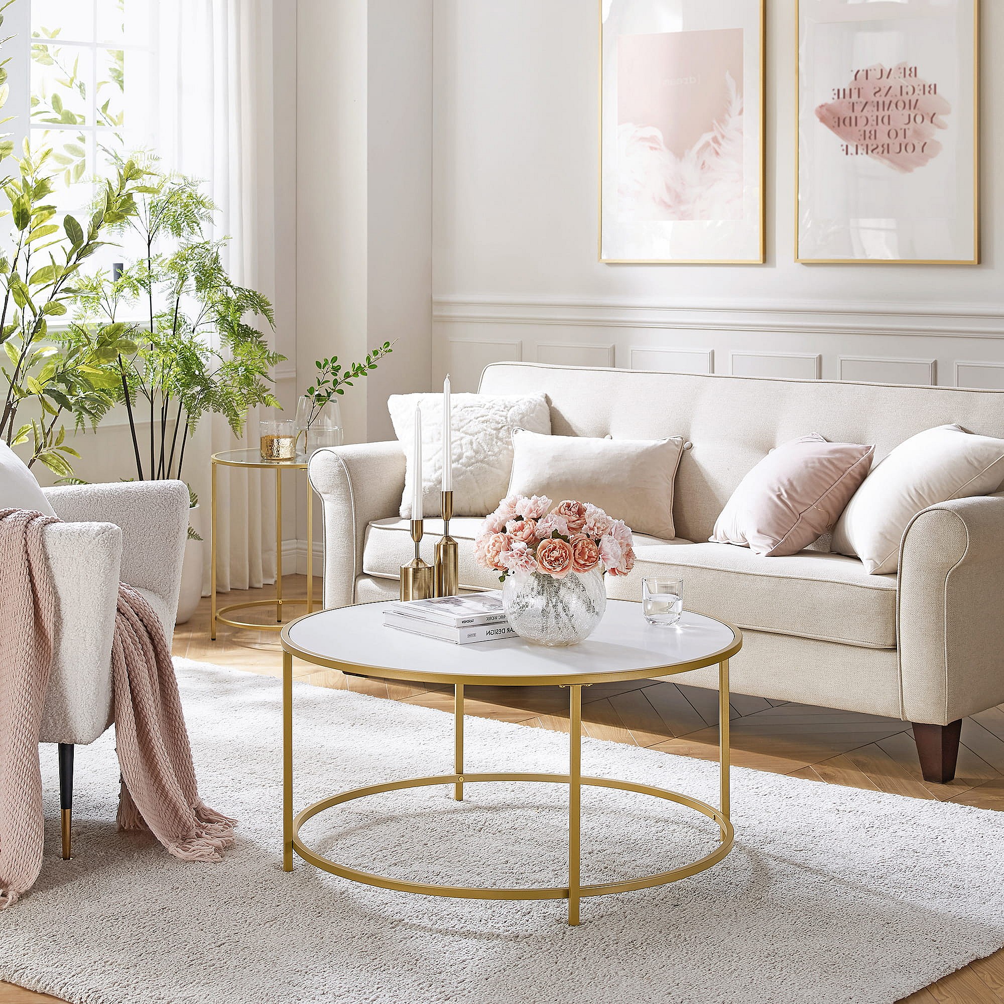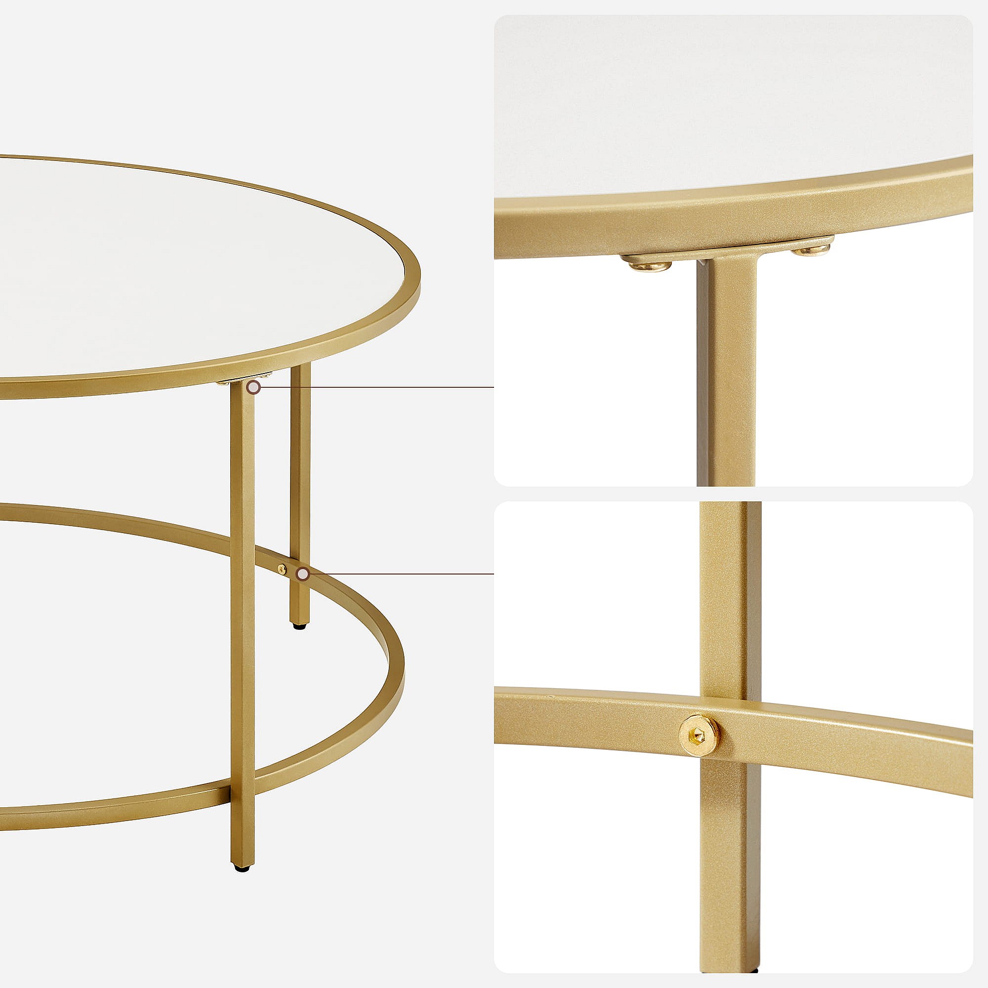 Stolik kawowy Valora okrągły, złoto-biały, Ø84 cm, styl loftowy
