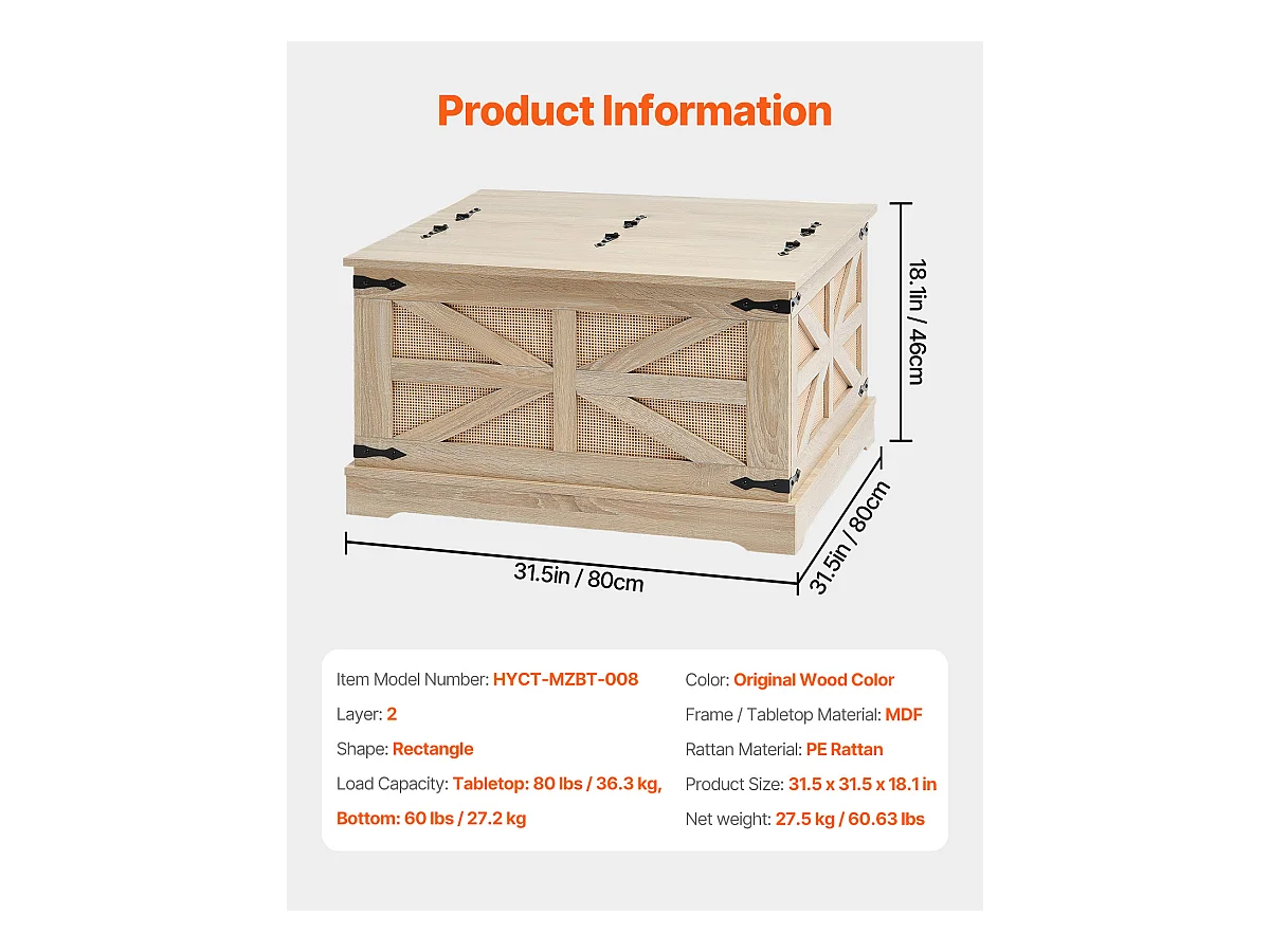 Stół kufer wykonany z litego drewna mango z naturalnym wykończeniem
