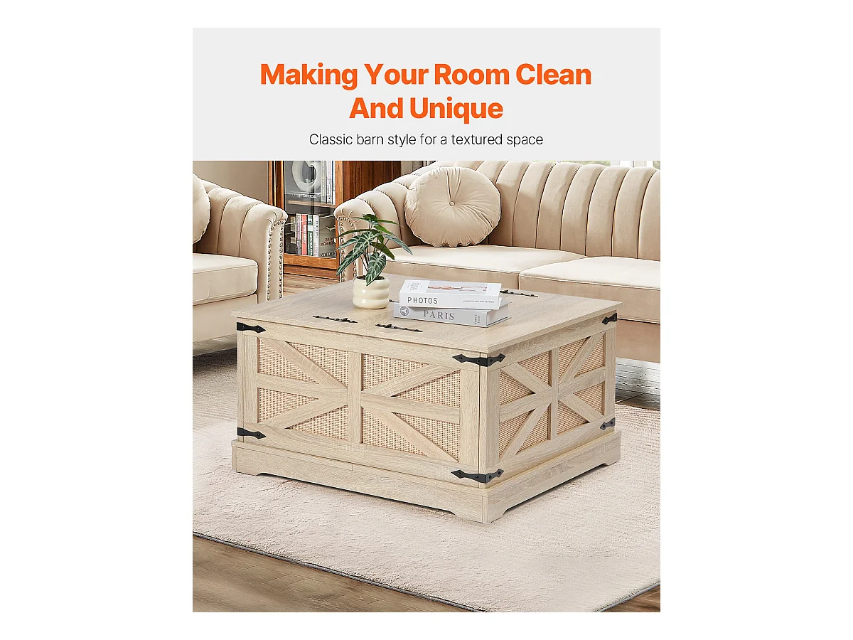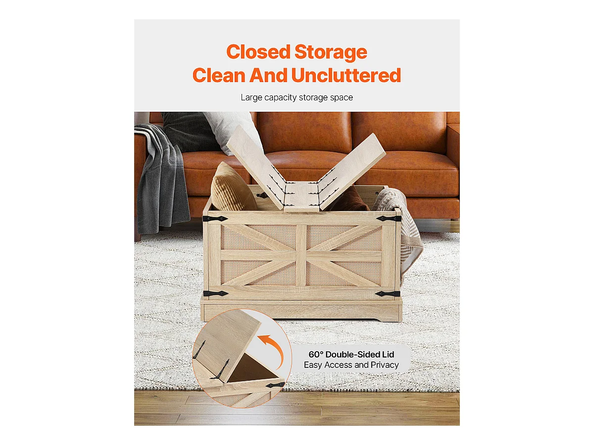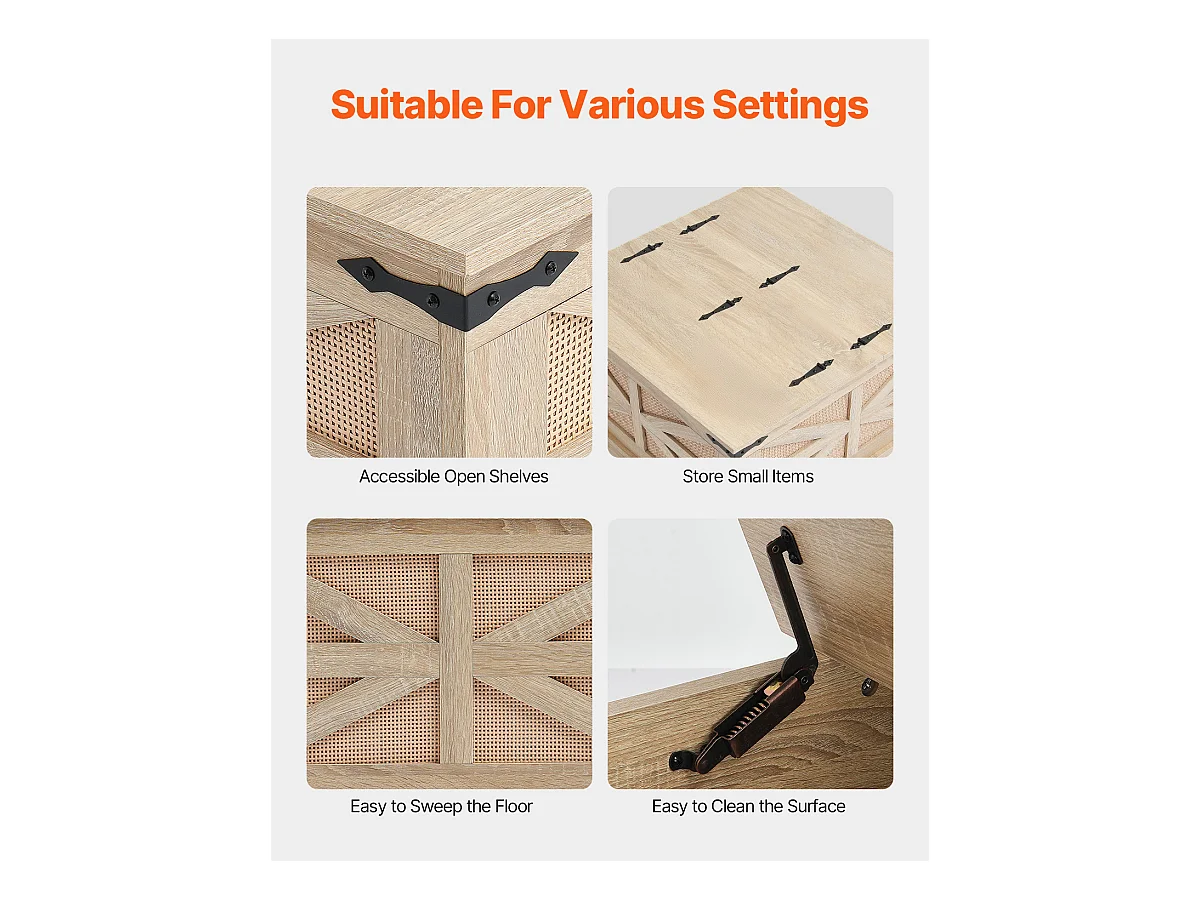 Stolik Kawowy z Rattanu SucceBuy 81.28 CM 2-poziomowy, Nowoczesny Bohemiczny Styl z Retro Metalowymi Zawiasami, do Salonu, Sypialni i Małych Przestrzeni