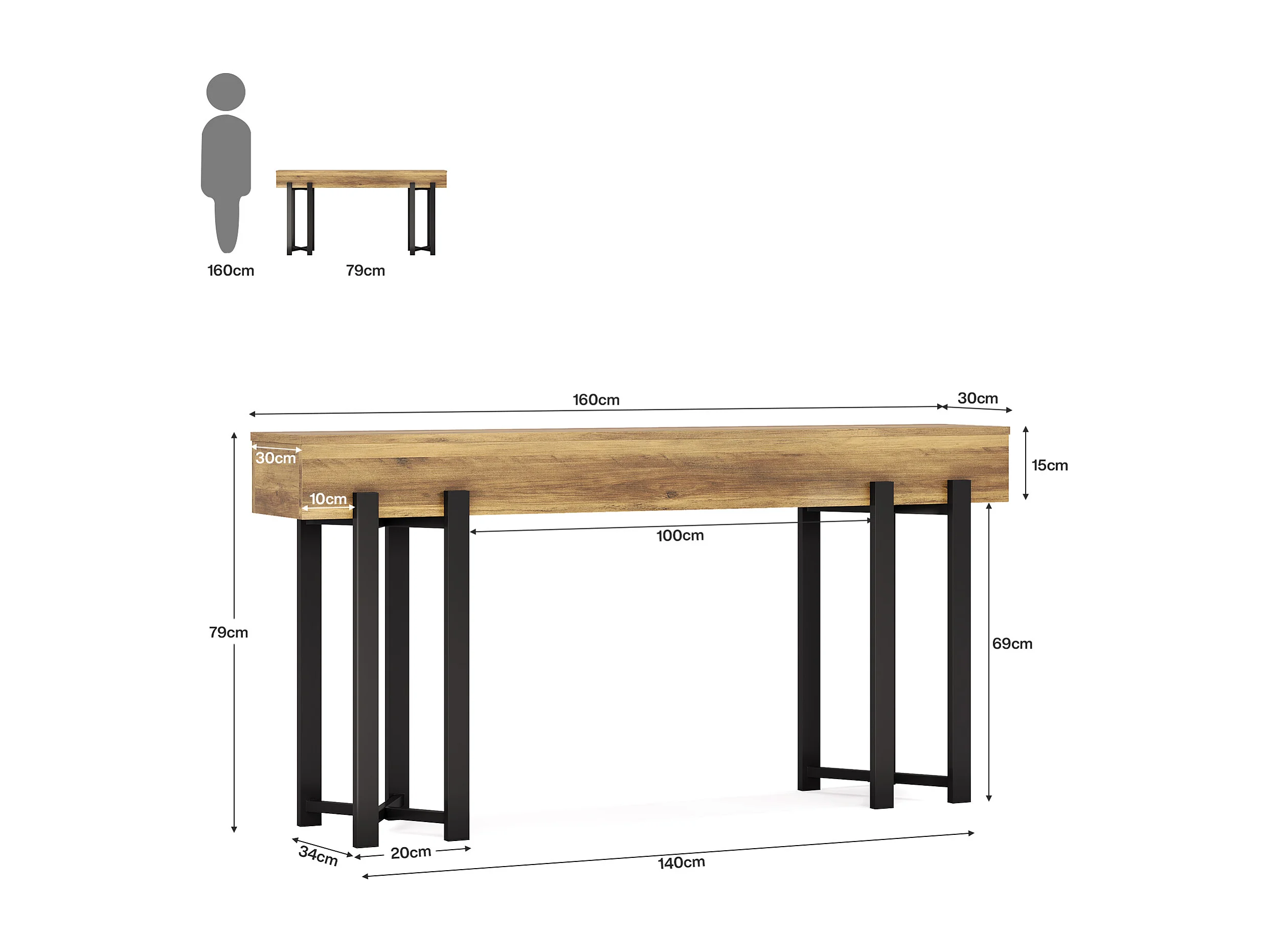 Wąski stolik konsolowy o długości 160 cm – idealny jako stolik pod sofę za kanapą, nowoczesny design do stref wejściowych