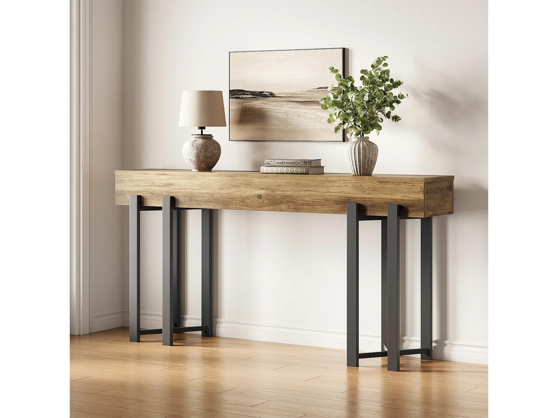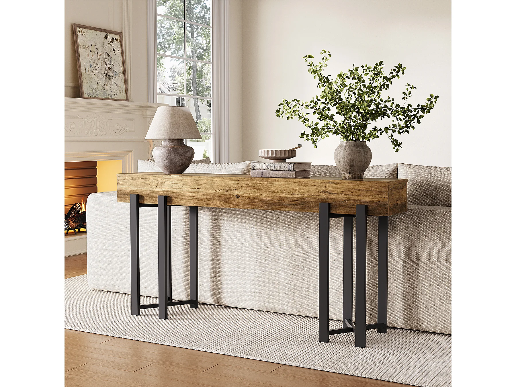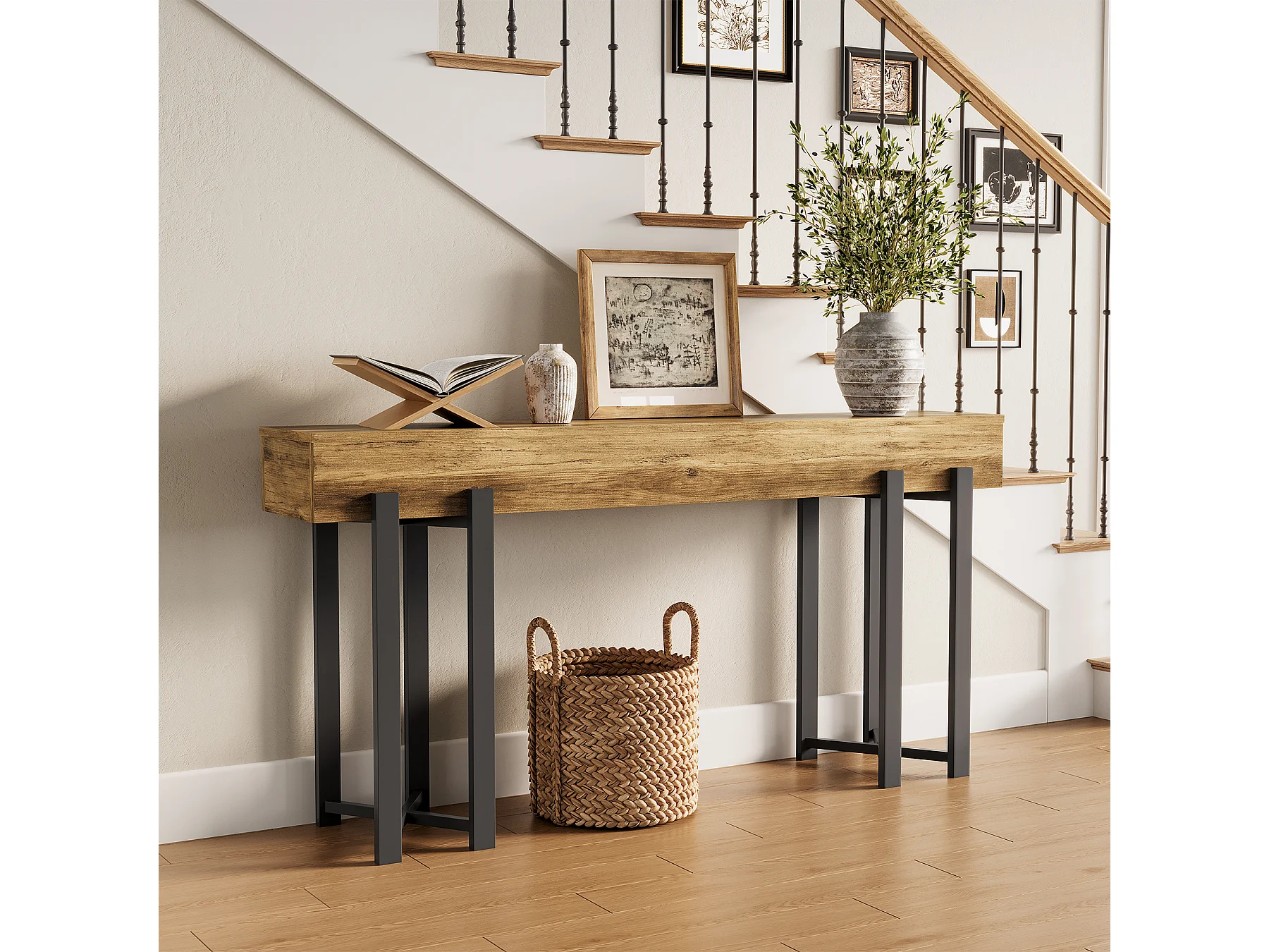 4-poziomowy stolik wejściowy za sofą, 105-centymetrowy stolik w stylu rustykalnym do salonu, stolik wejściowy do przedpokoju