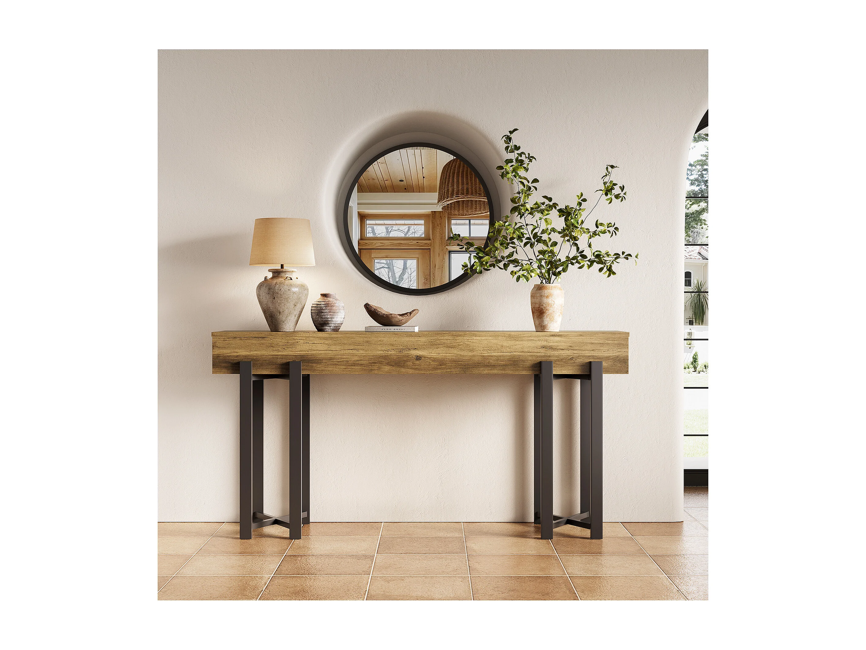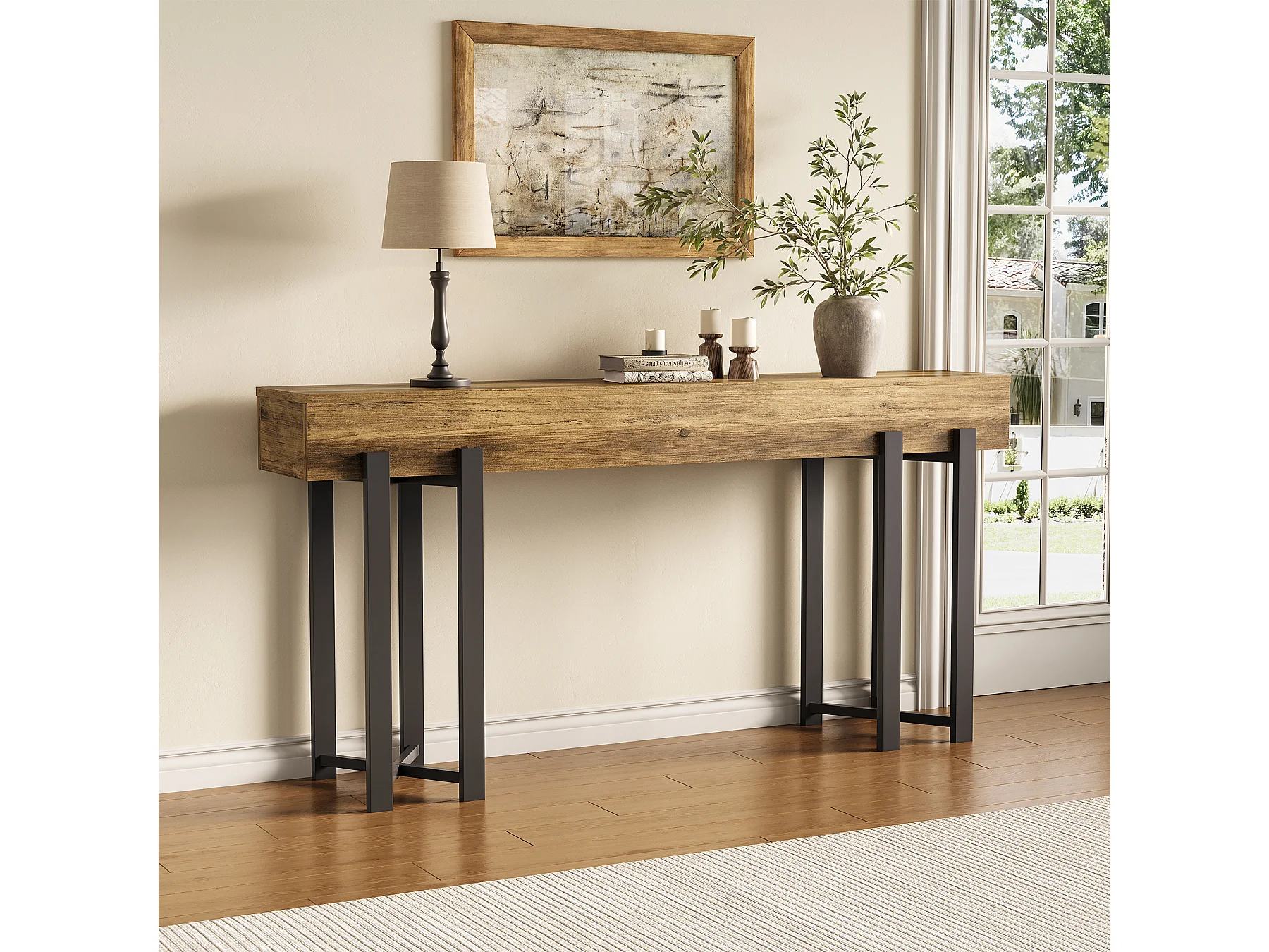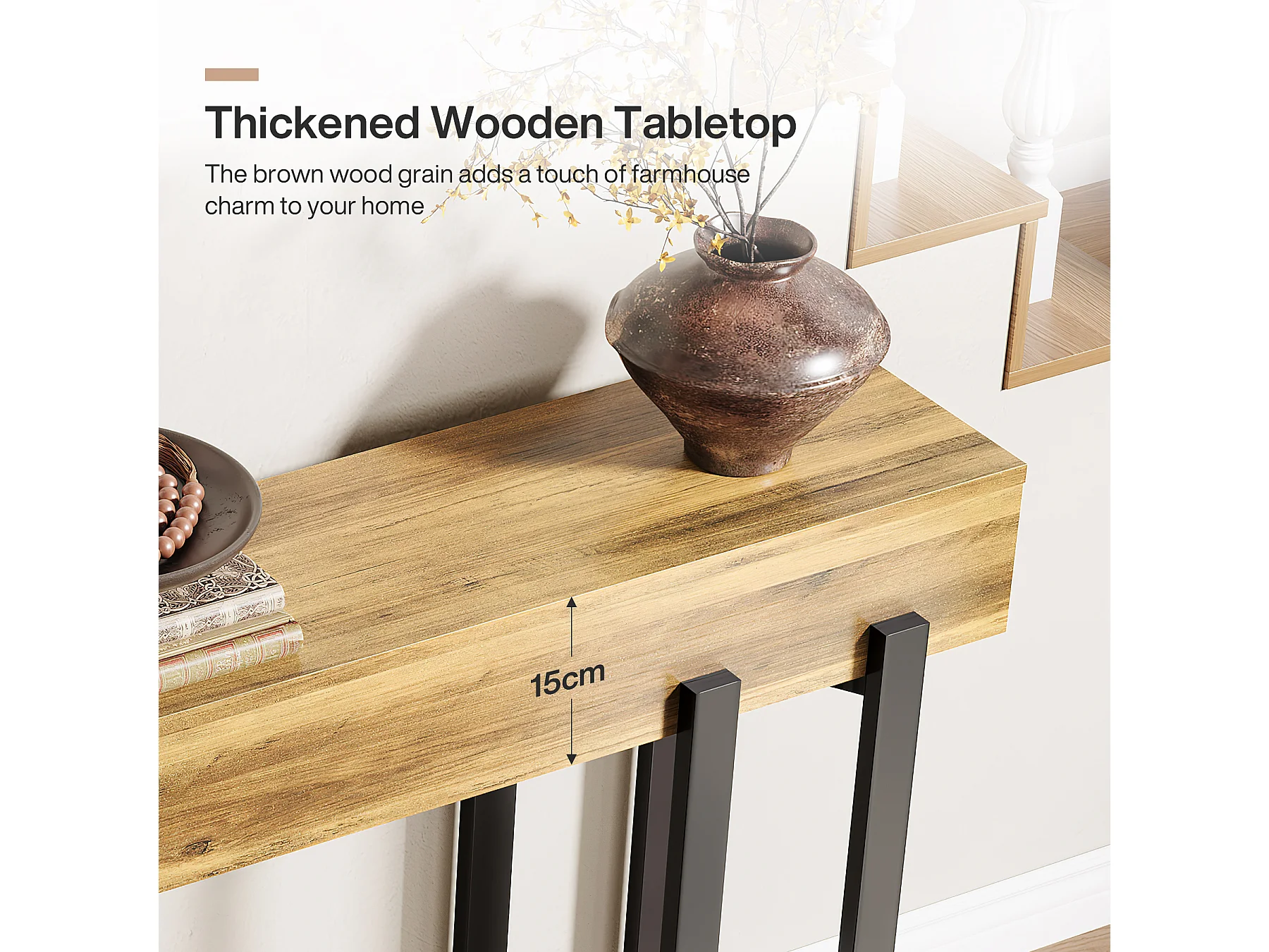 4-poziomowy stolik wejściowy za sofą, 105-centymetrowy stolik w stylu rustykalnym do salonu, stolik wejściowy do przedpokoju