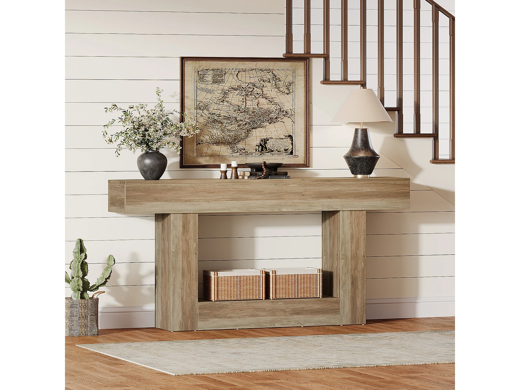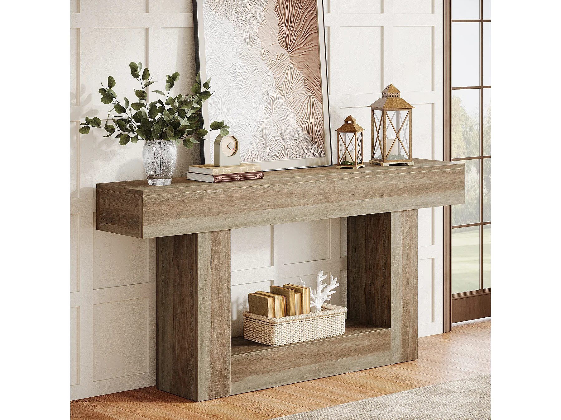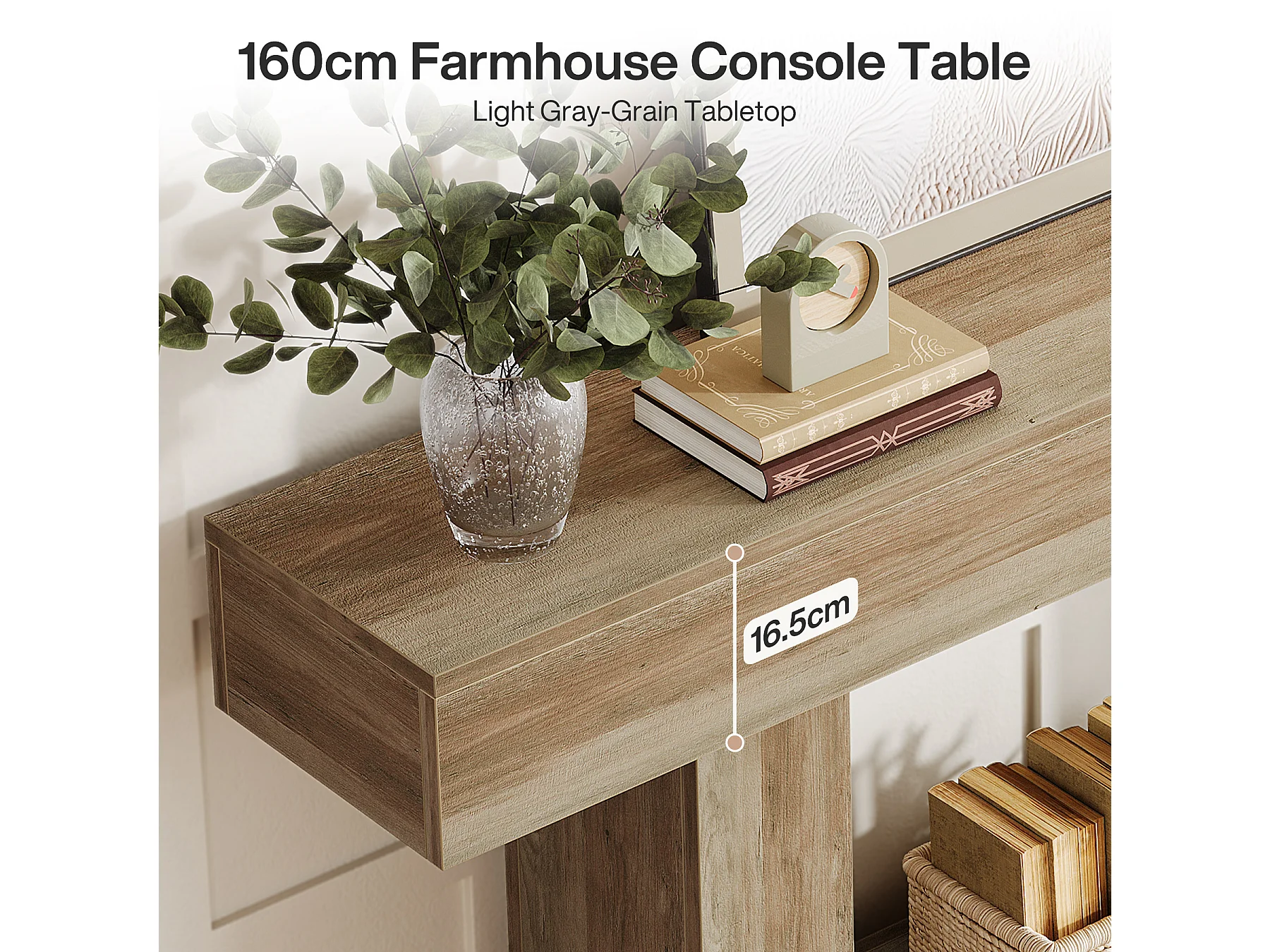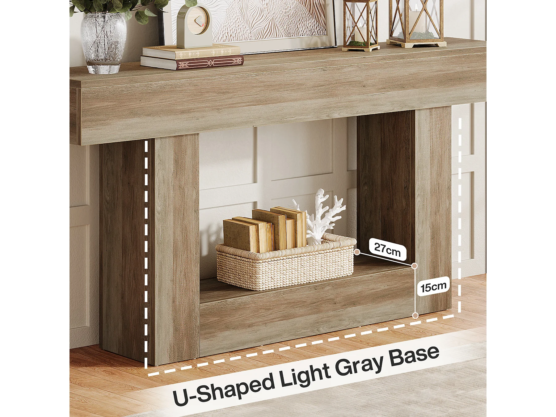 Stolik konsolowy 160 cm, dwupoziomowy stolik do przedpokoju w stylu rustykalnym, stolik za kanapą, szary