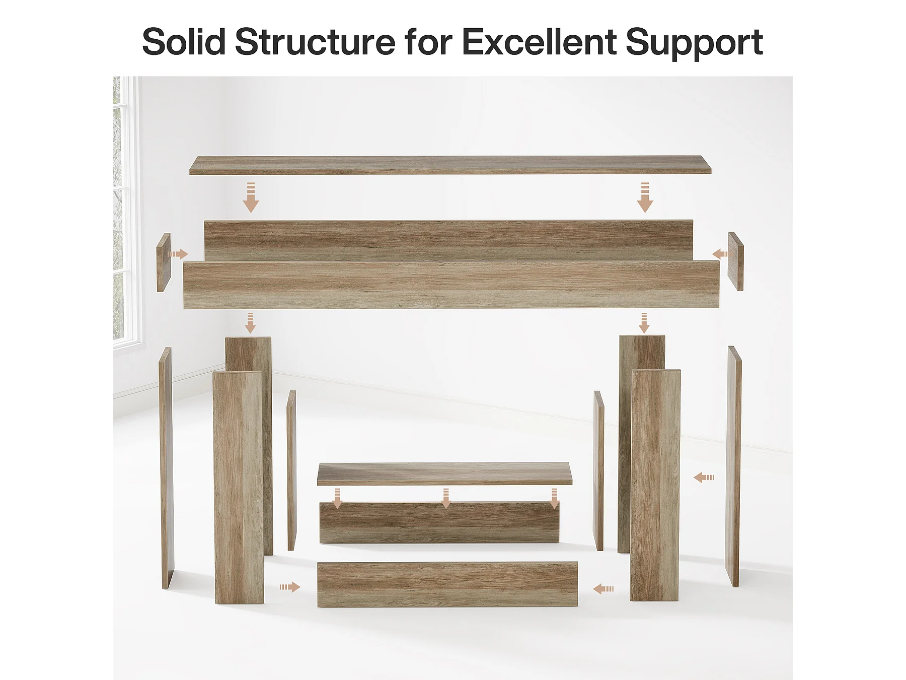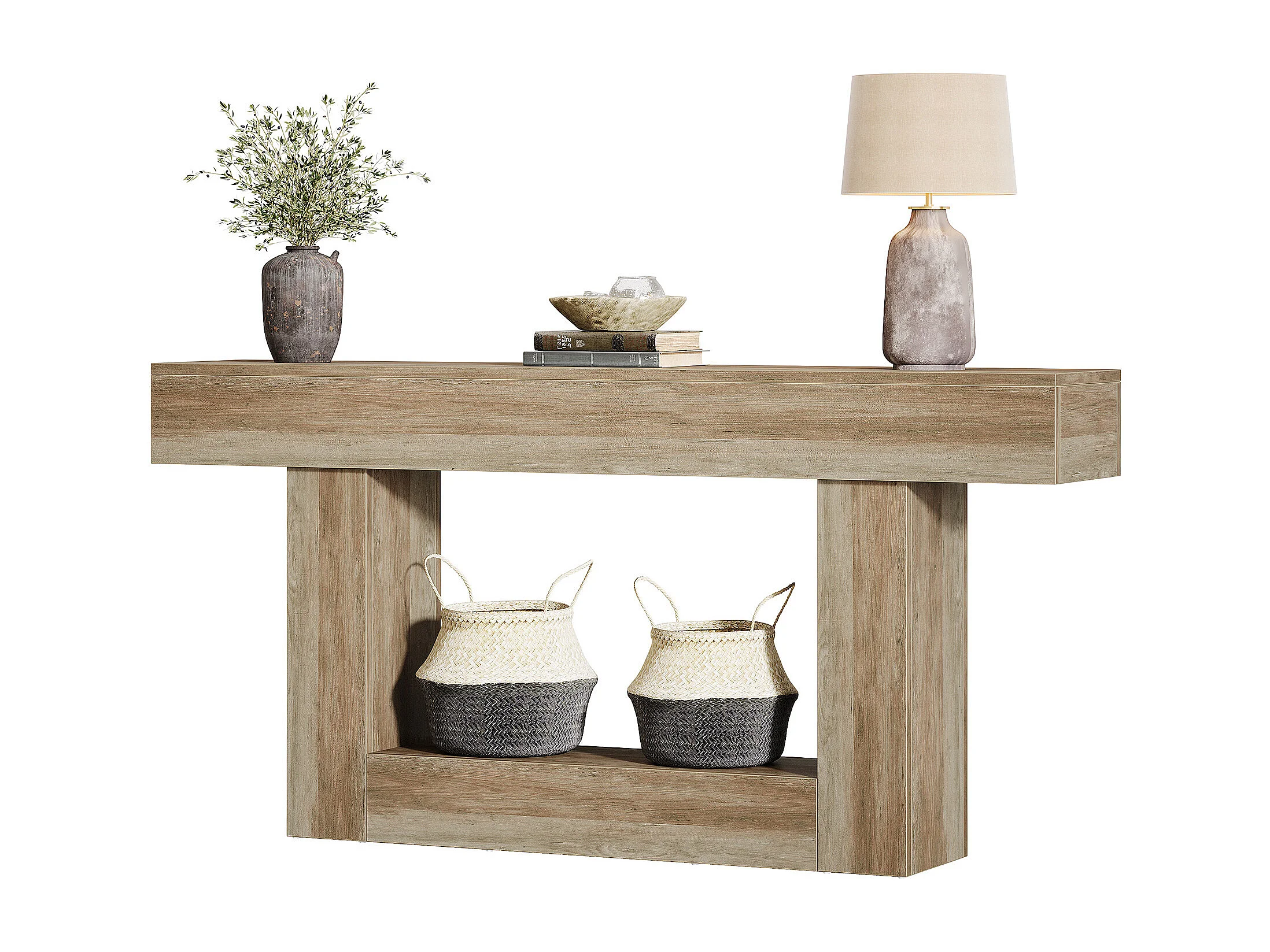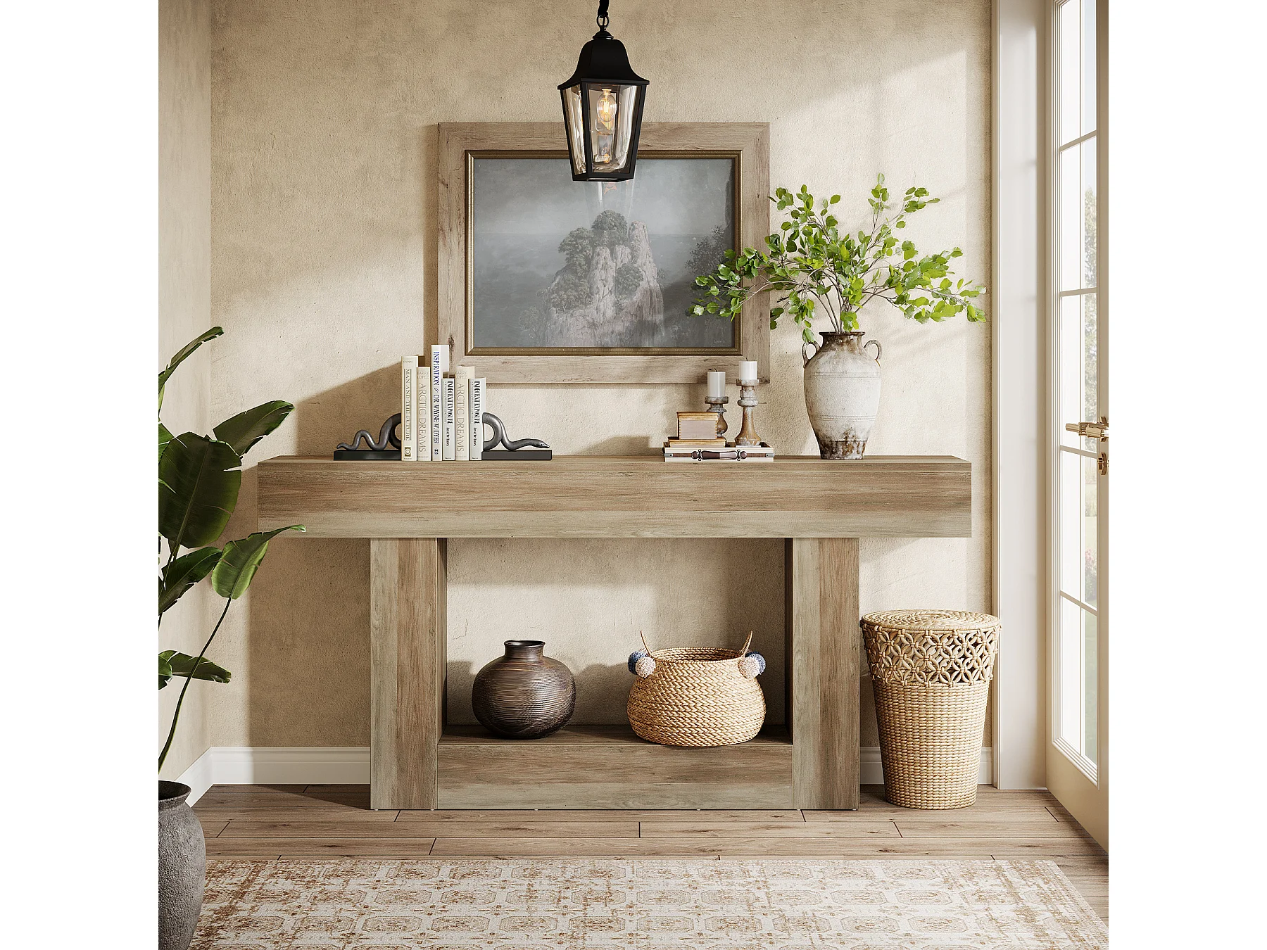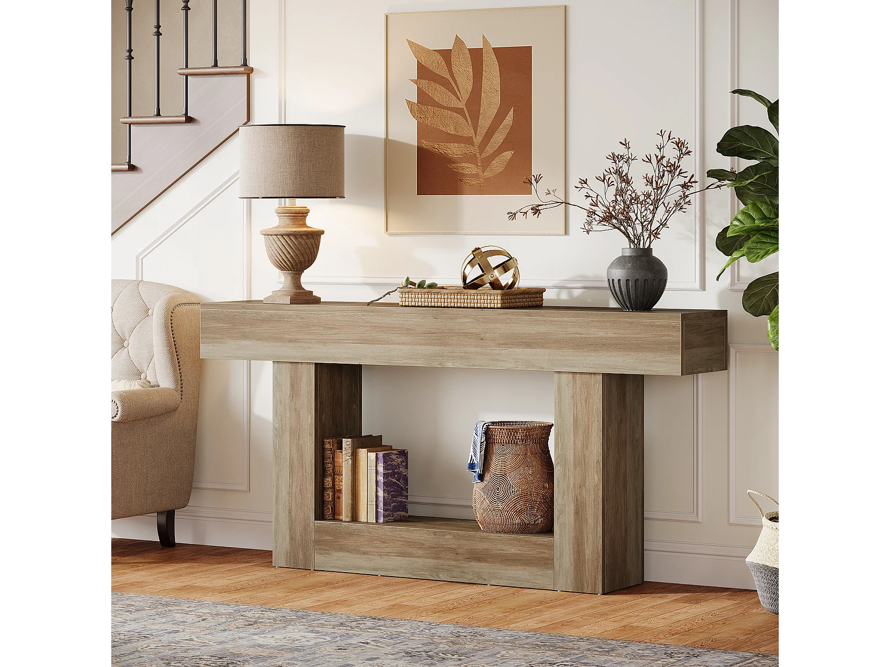 Stolik konsolowy 160 cm, dwupoziomowy stolik do przedpokoju w stylu rustykalnym, stolik za kanapą, szary