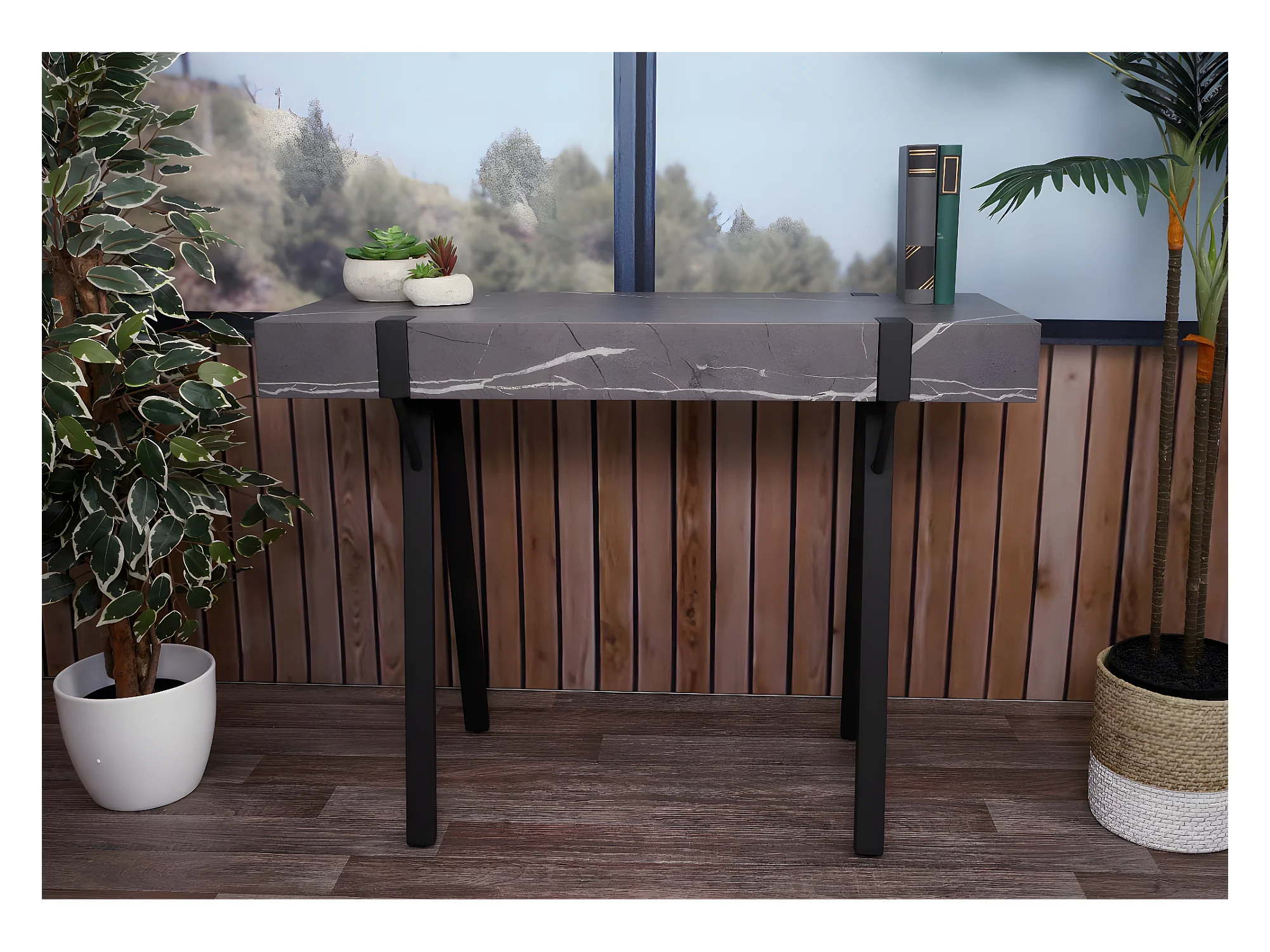 Stolik konsolowy MCW-L54, marmurowy szary