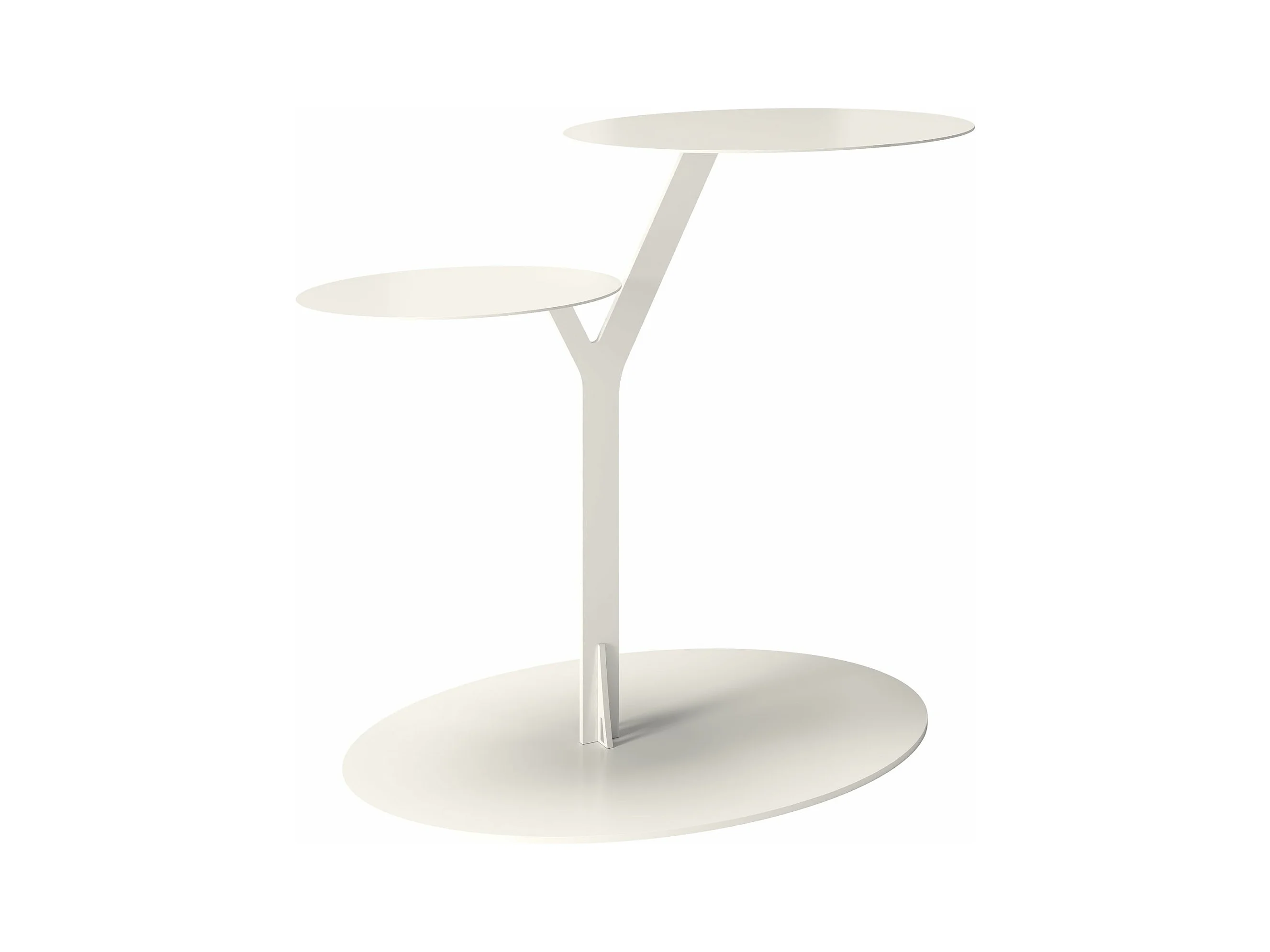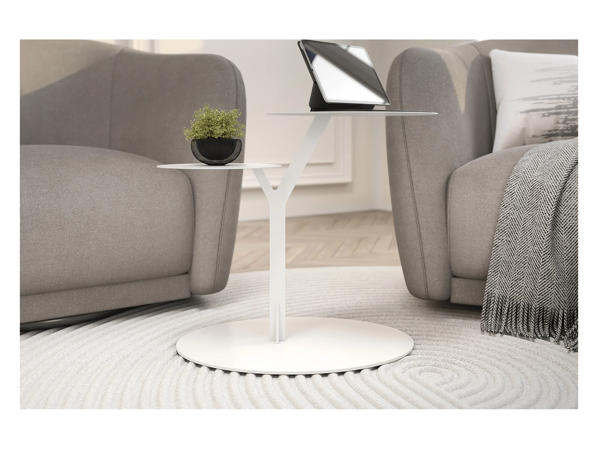Stolik metalowy Kayani Iroko dwa blaty, kolor biały