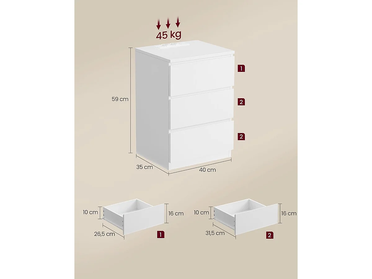 Szafka nocna 40x35x59 cm biała
