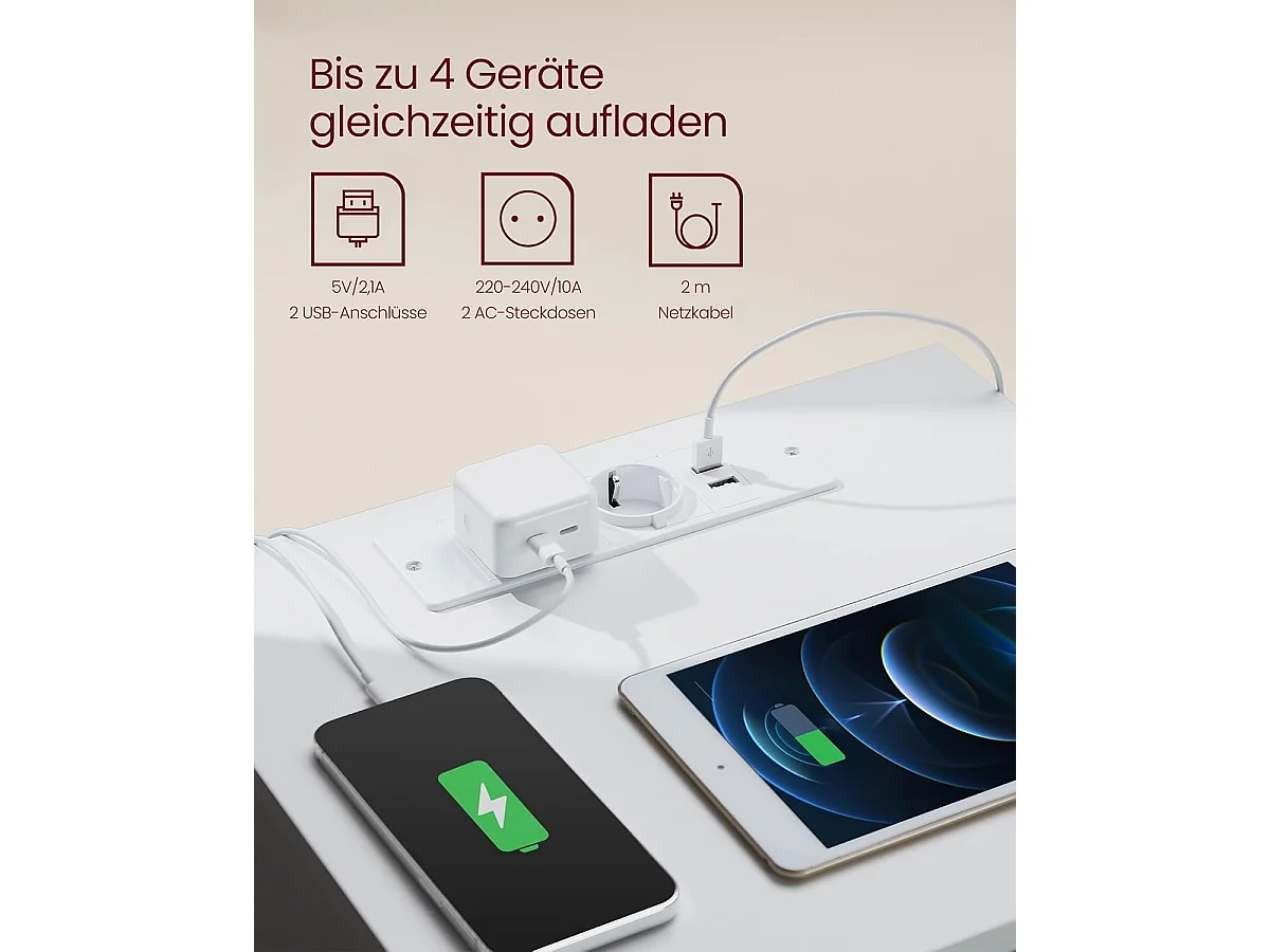 Lampa stołowa LED Poldina Pro Sand, ładowalna i ściemnialna, z czasem pracy na baterii do 12 godzin.