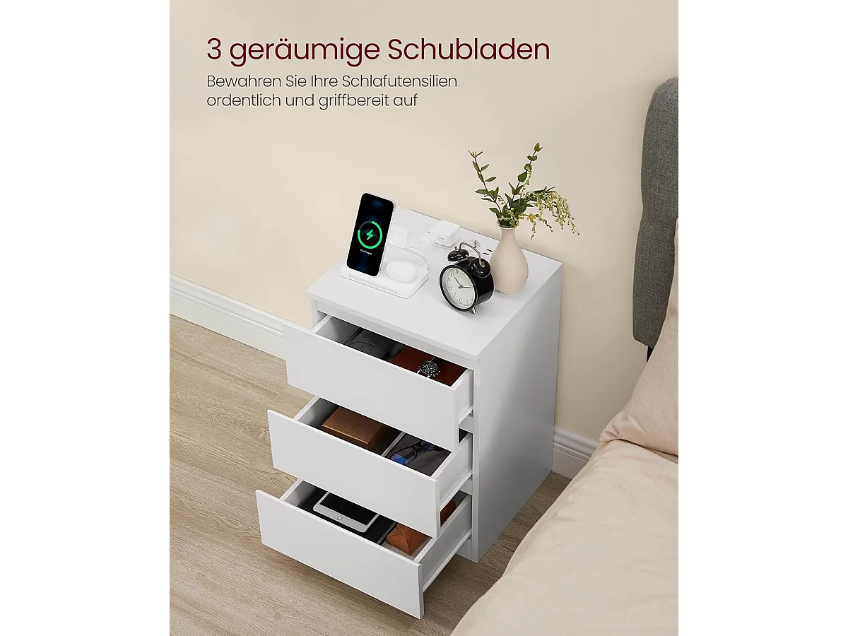 SoBuy Stolik nocny z 3 szufladami i półką, biały, 40x40x63 cm, FBT168-W